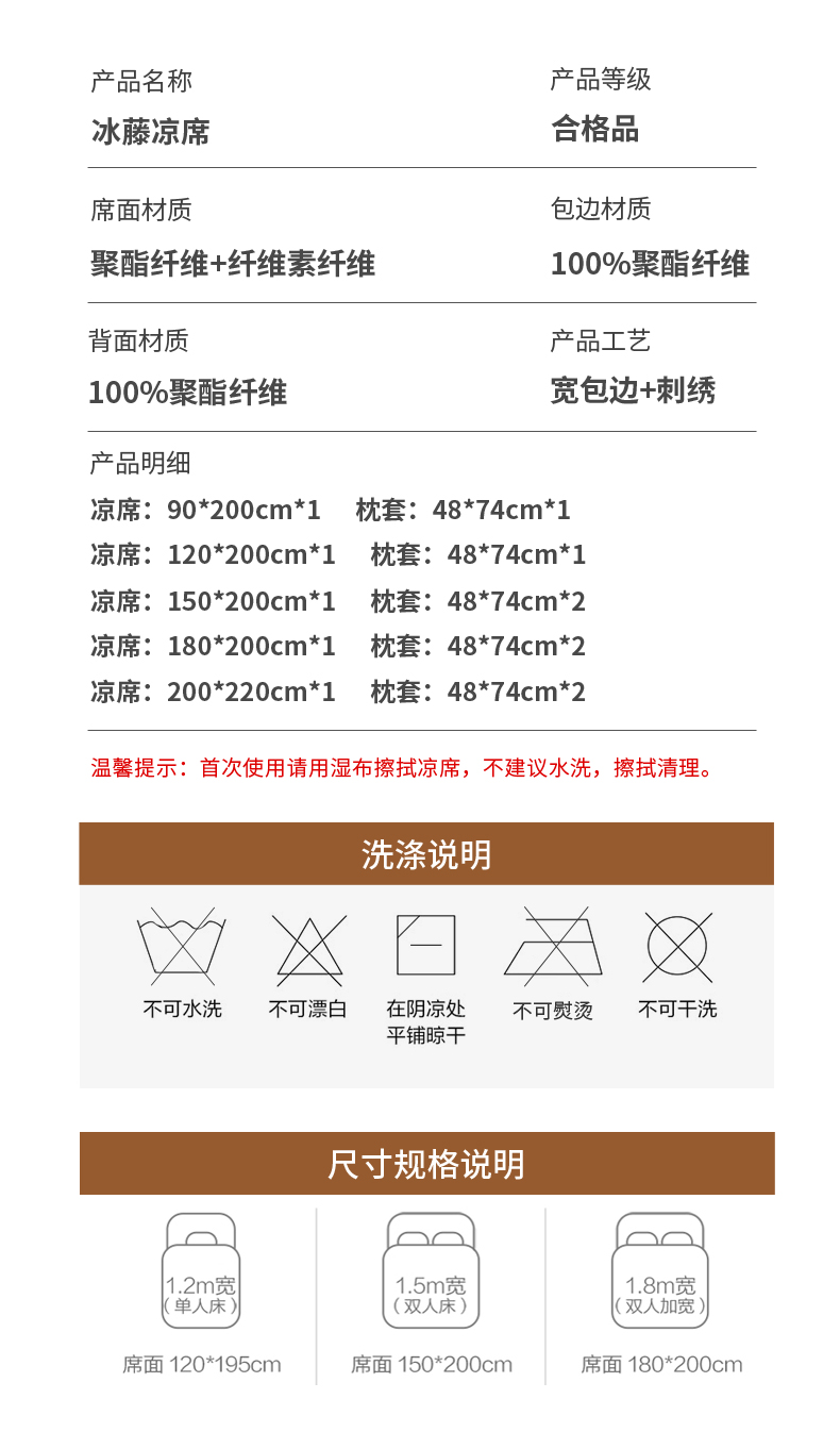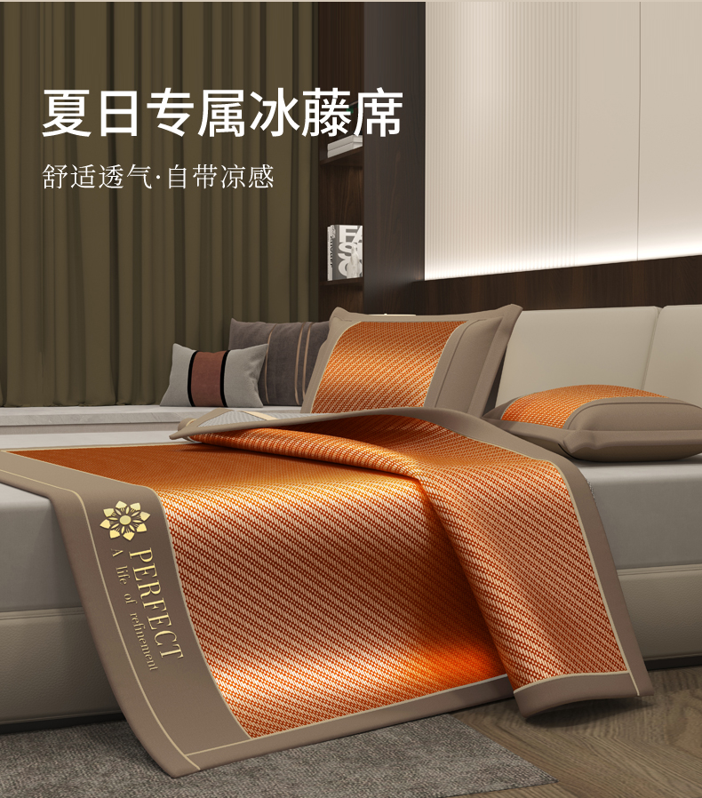 商品名称:阿牛席业 2025新款冰藤凉席系列冰藤完美-小熊席 完美生活-咖色