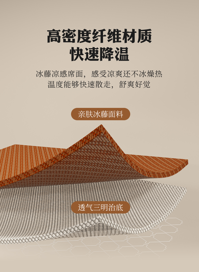 阿牛席业 2025新款冰藤凉席系列冰藤完美-小熊席 完美生活-咖色