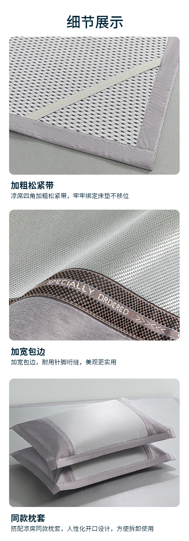 商品名称:阿牛席业 2025新款冰藤凉席系列冰藤绣花韵雅席 韵雅-灰