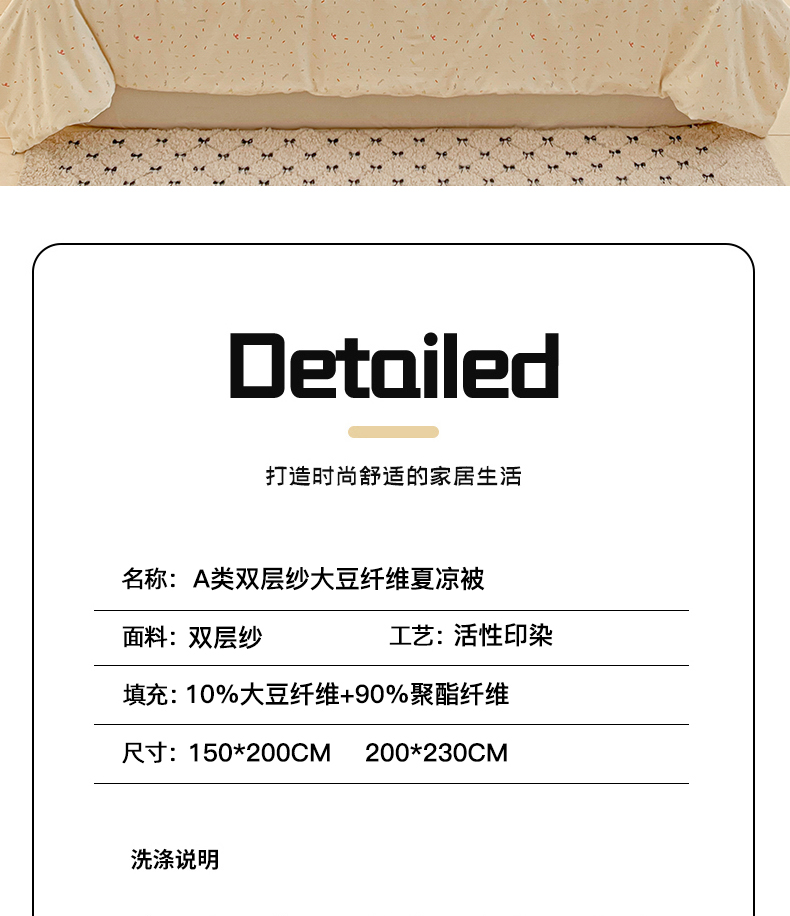 商品名称:星巴k家纺 2025糯糯棉A类大豆蛋白纤维夏凉被双层纱水洗棉夏被大豆被 芝士碎