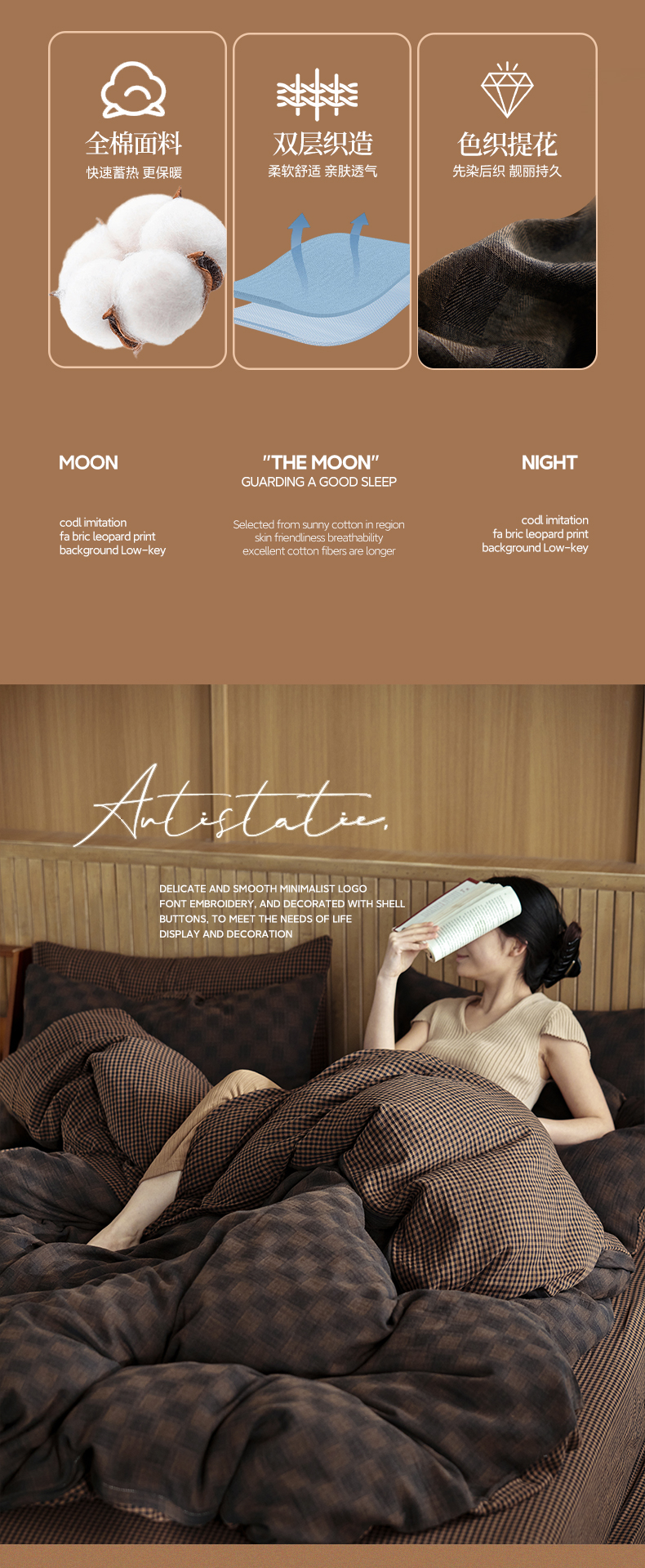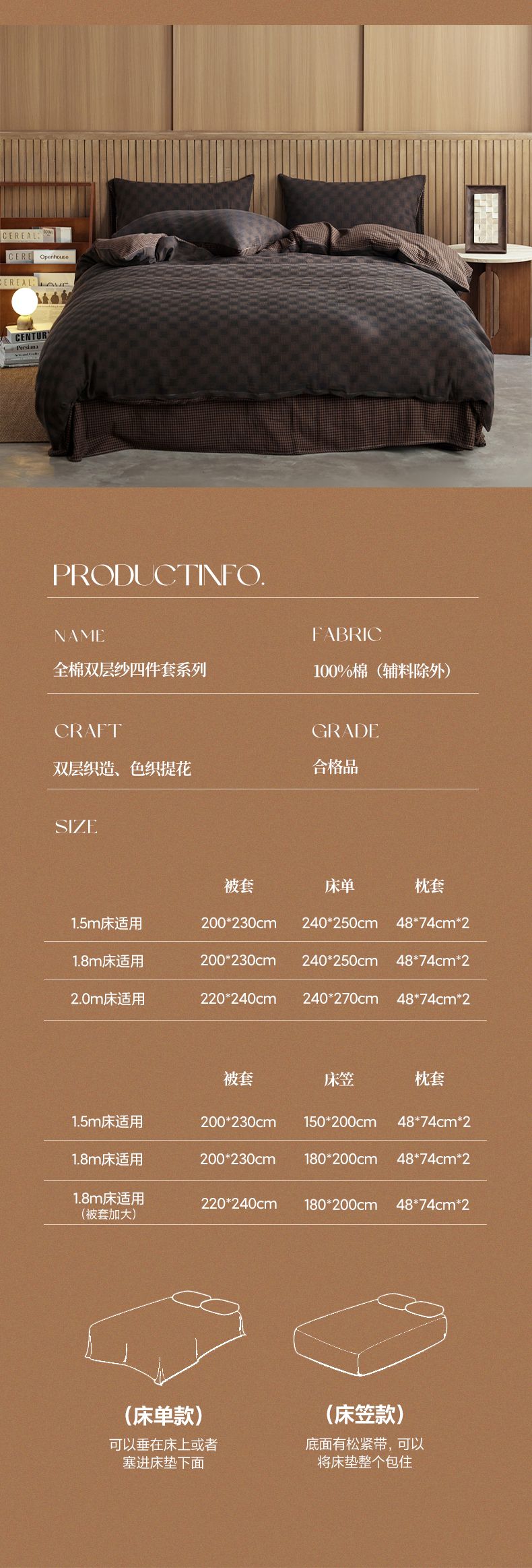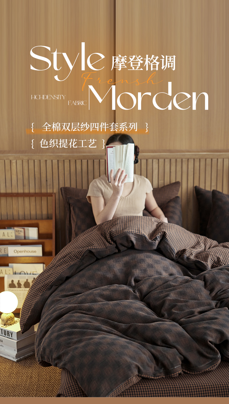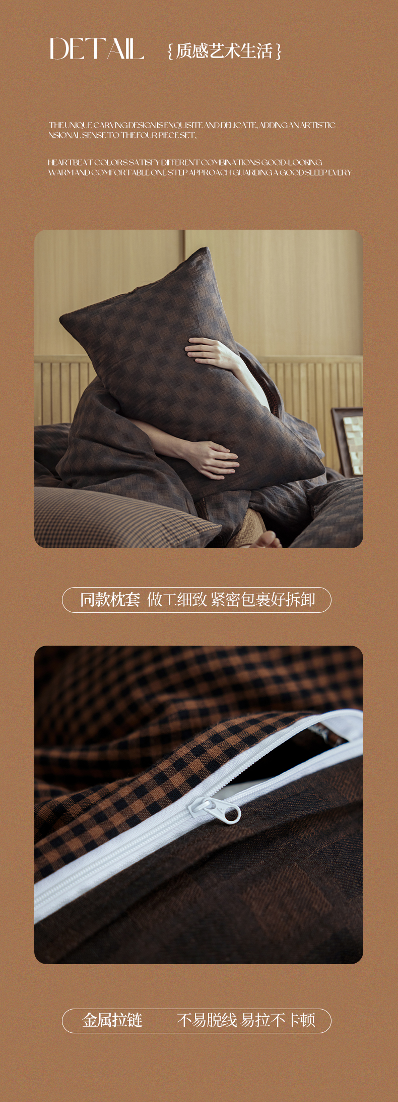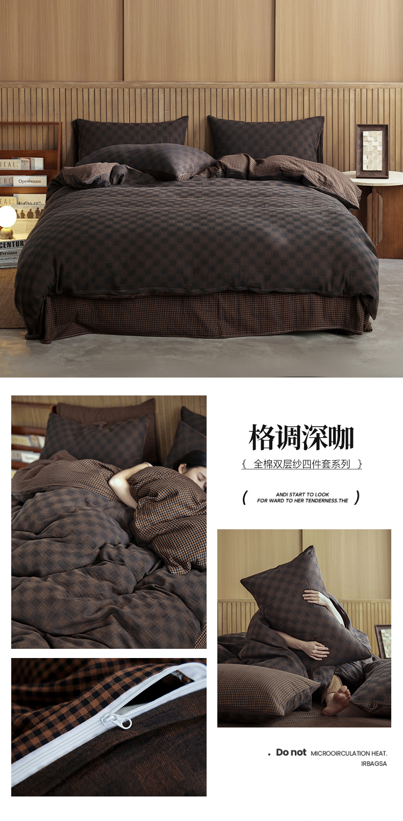 当前位置: 91家纺网 > 商品网购 > 床品套件 > 四件套 > 双层纱四件套 > 艾咪-Amy ntmy 2025新款复古格调全棉双层纱提花四件套 格调深咖