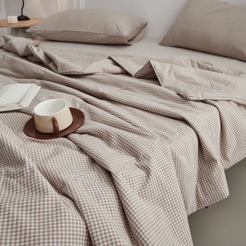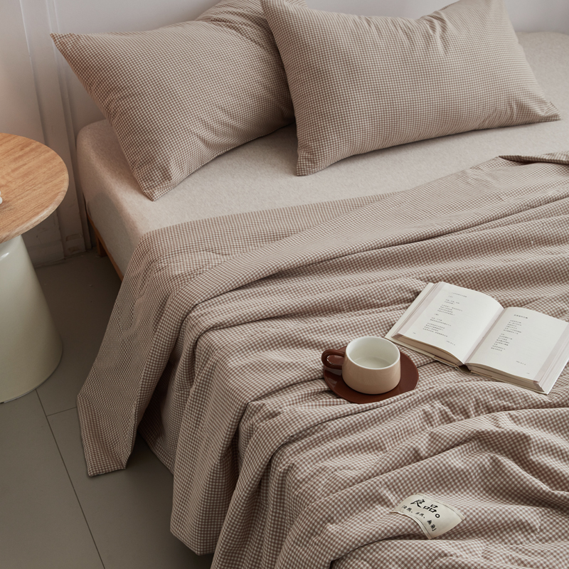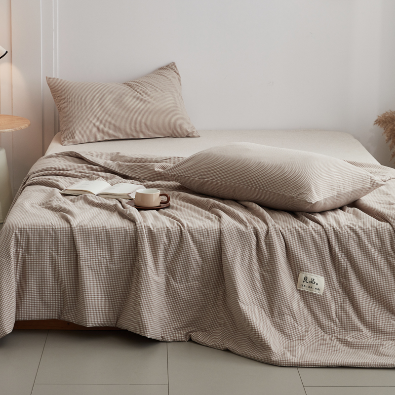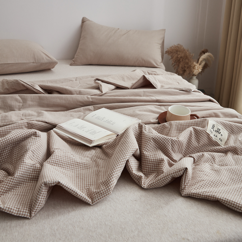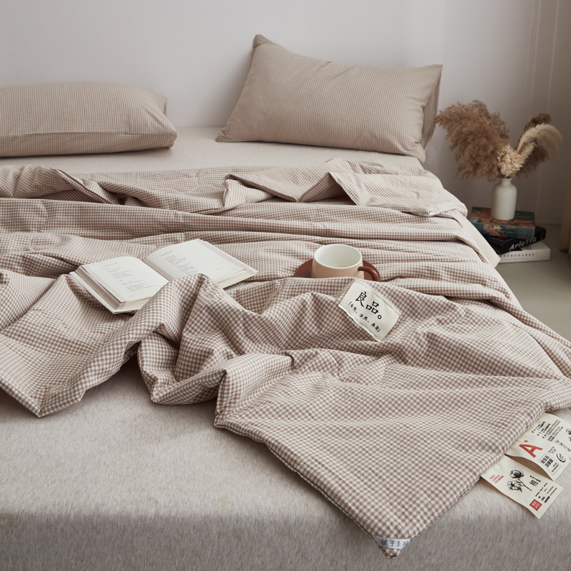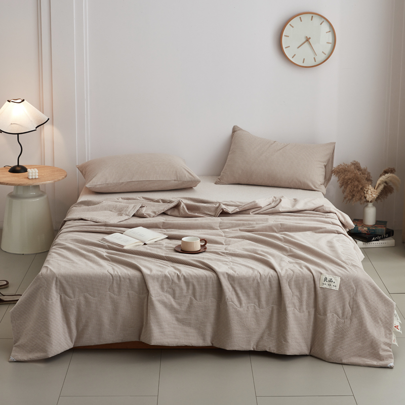 • 91家纺网 家纺一手货源 找家纺 尊妙被业 2025新款全棉色织水洗棉夏被 蜜格-米