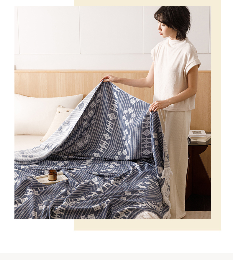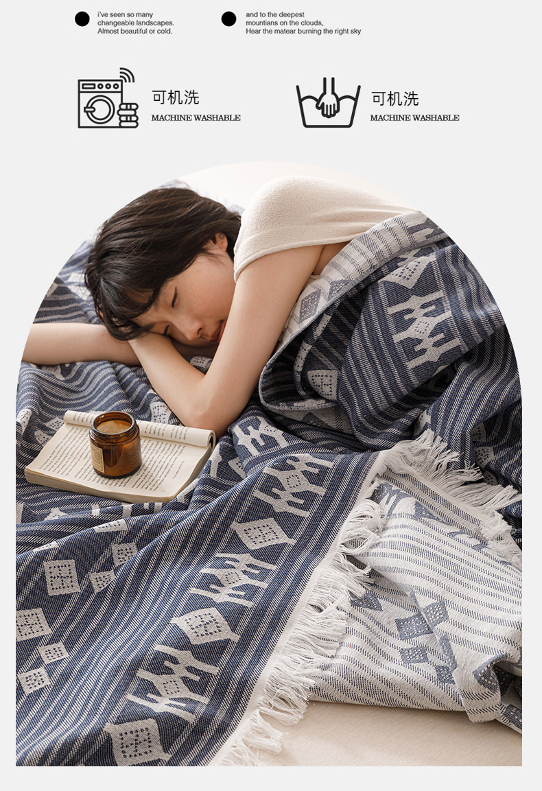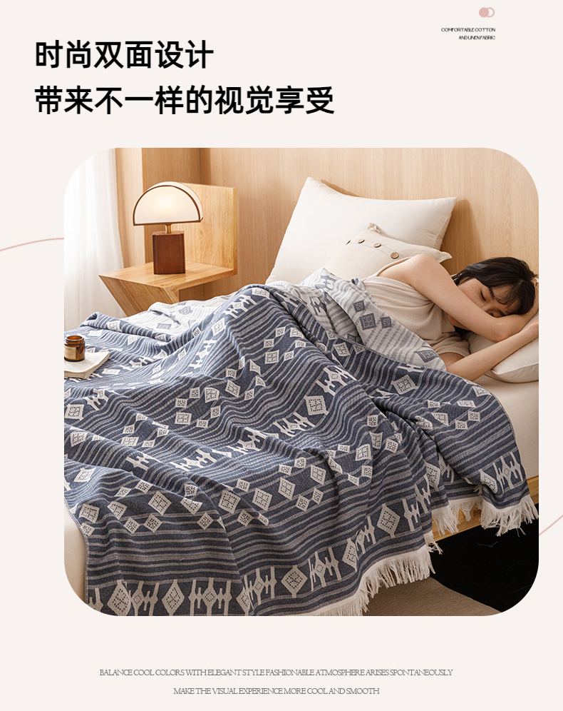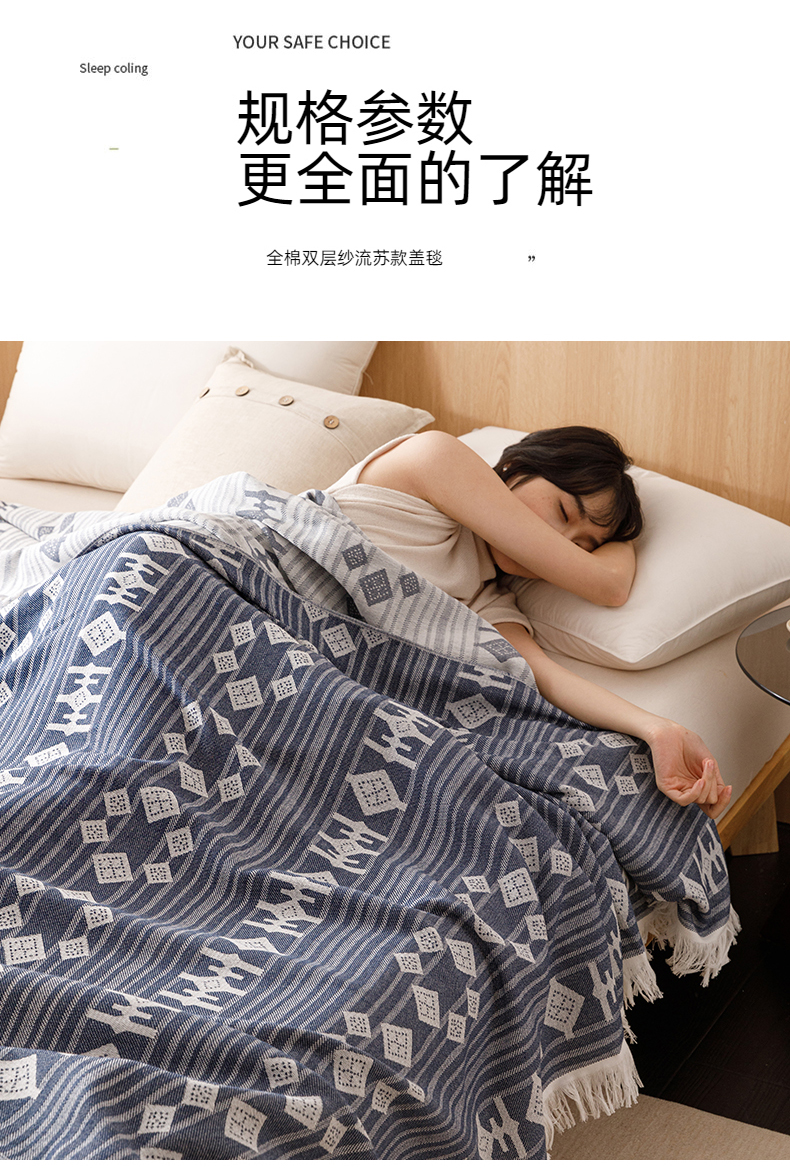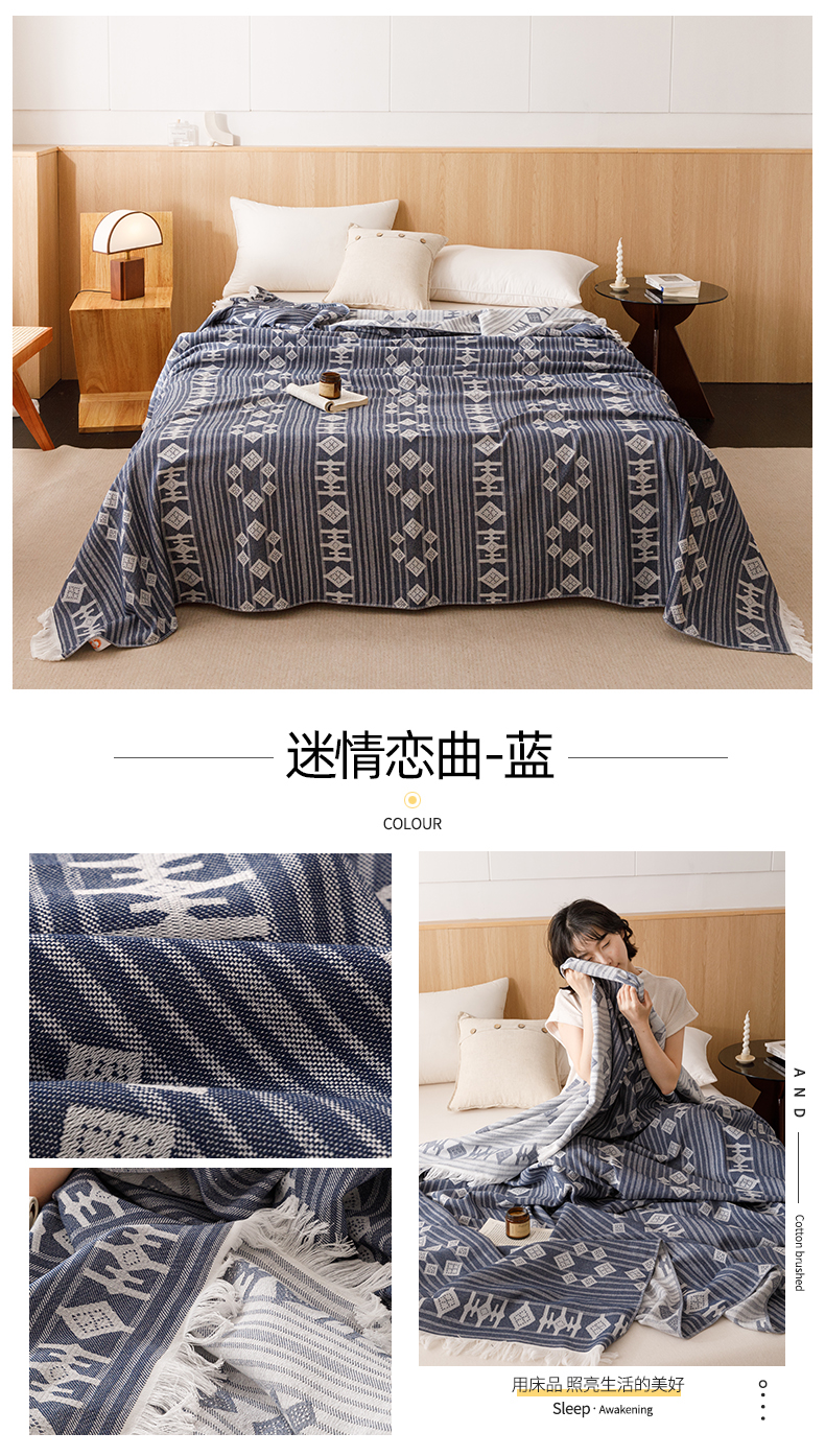 悦然毛巾被 2025新款全棉双层纱流苏款盖毯 迷情恋曲蓝