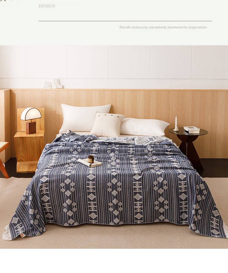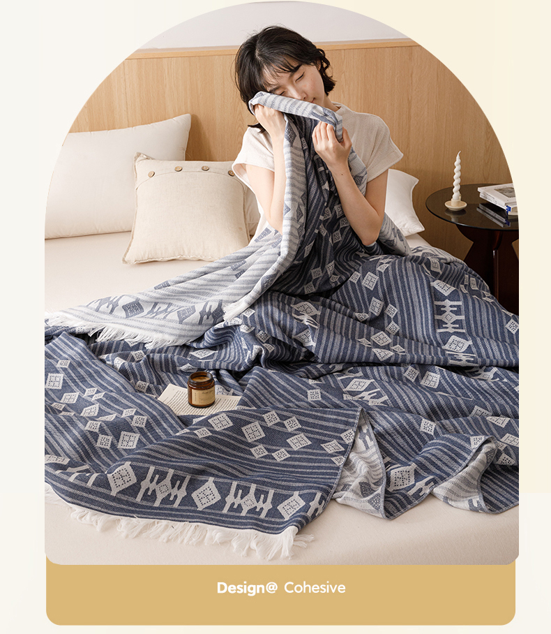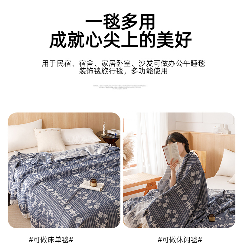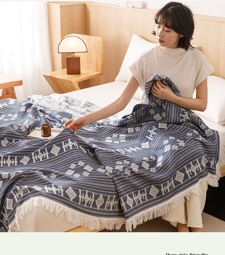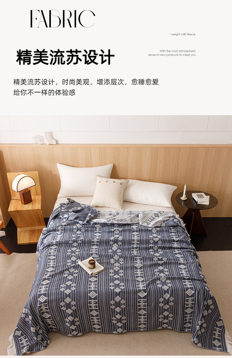 悦然毛巾被 2025新款全棉双层纱流苏款盖毯 迷情恋曲蓝