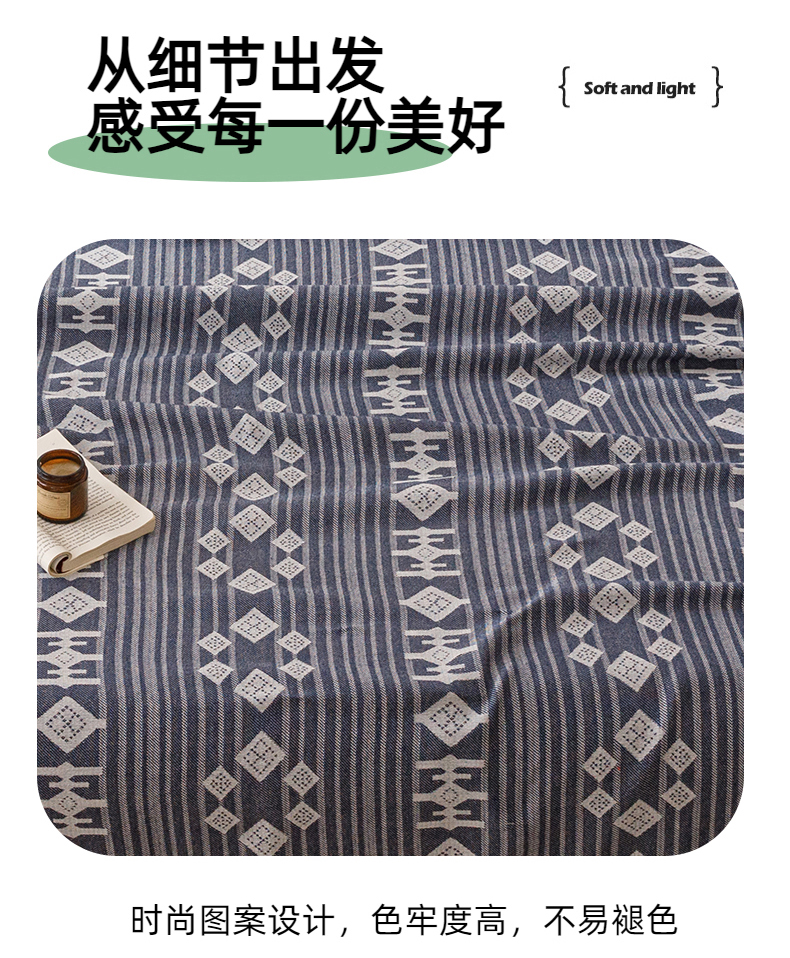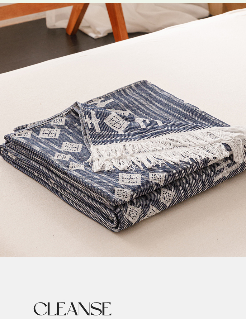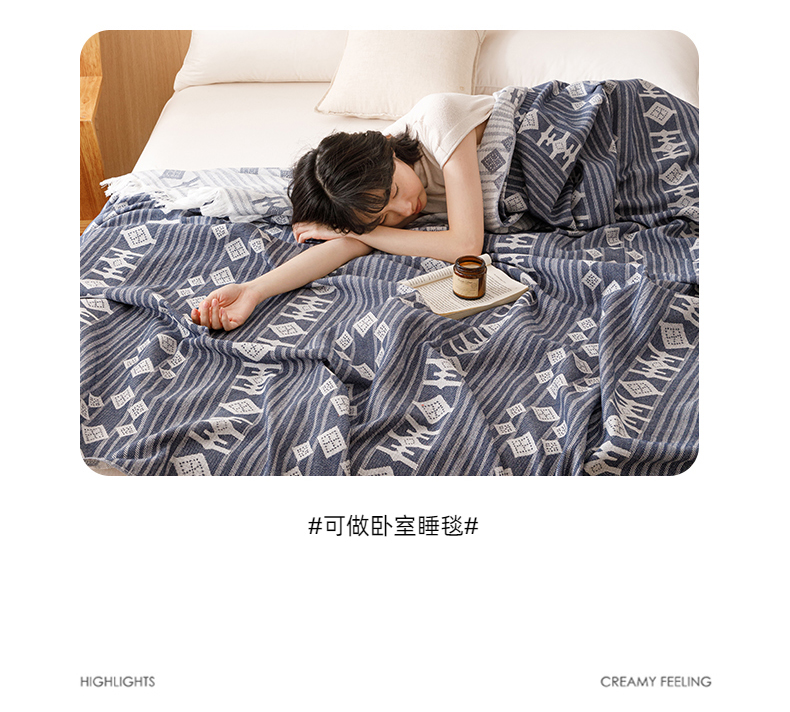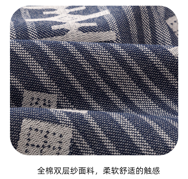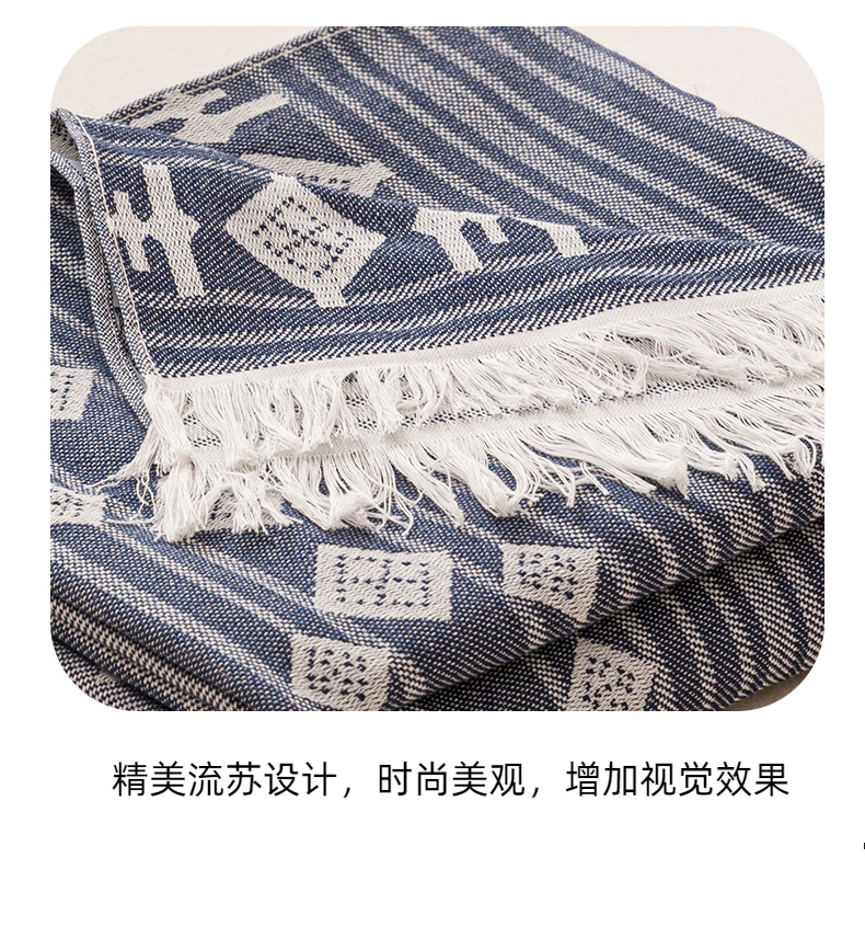 商品名称:悦然毛巾被 2025新款全棉双层纱流苏款盖毯 迷情恋曲蓝