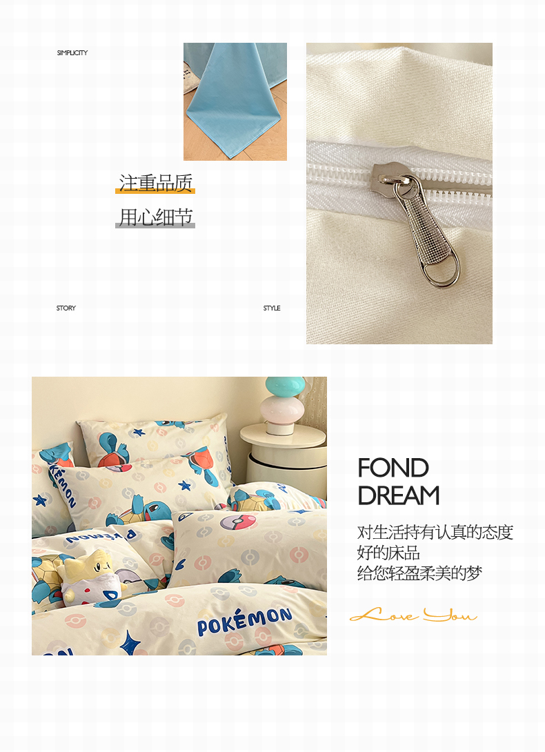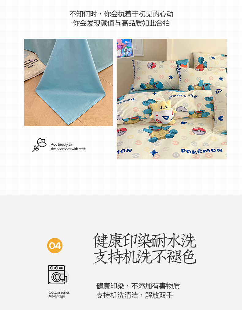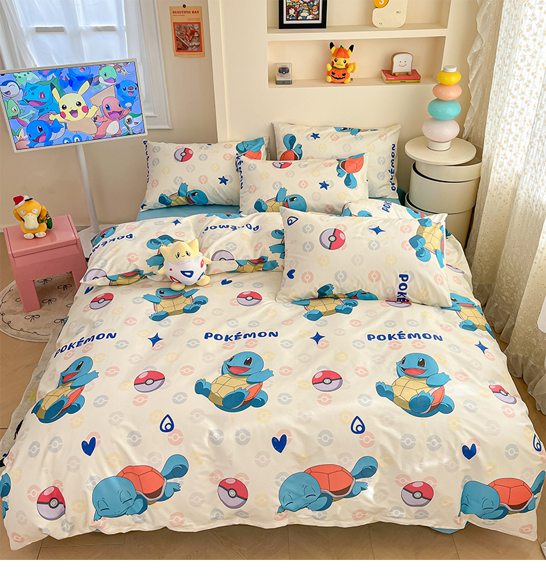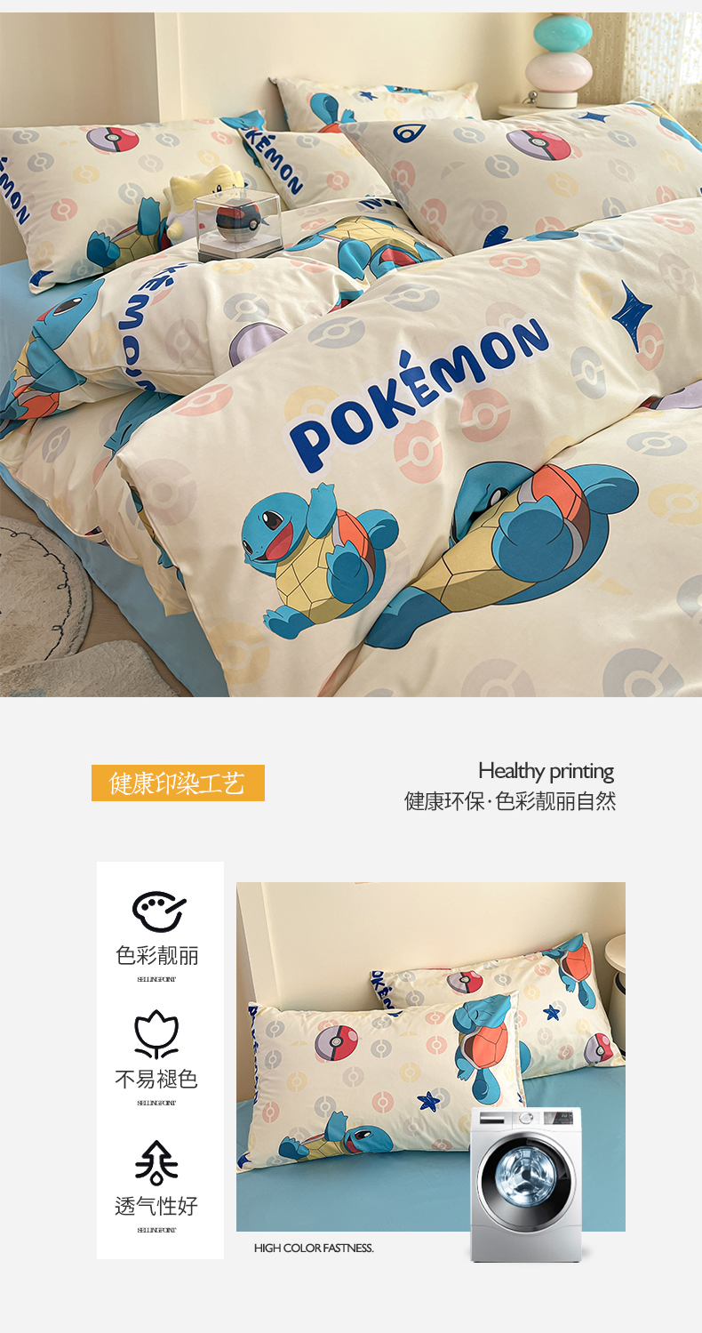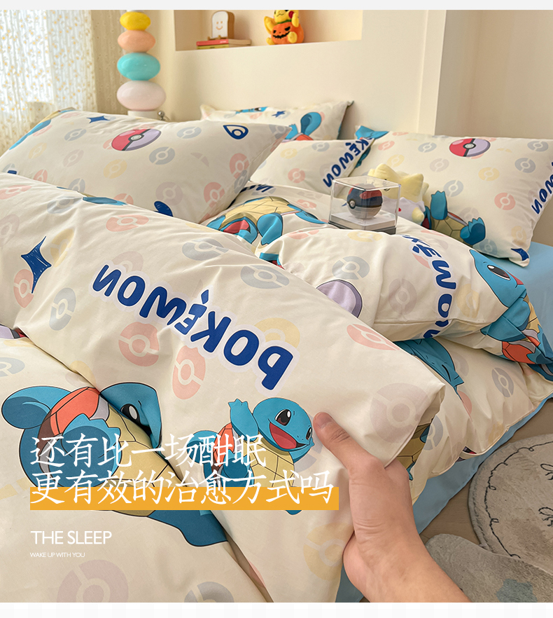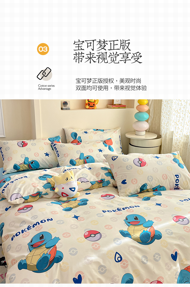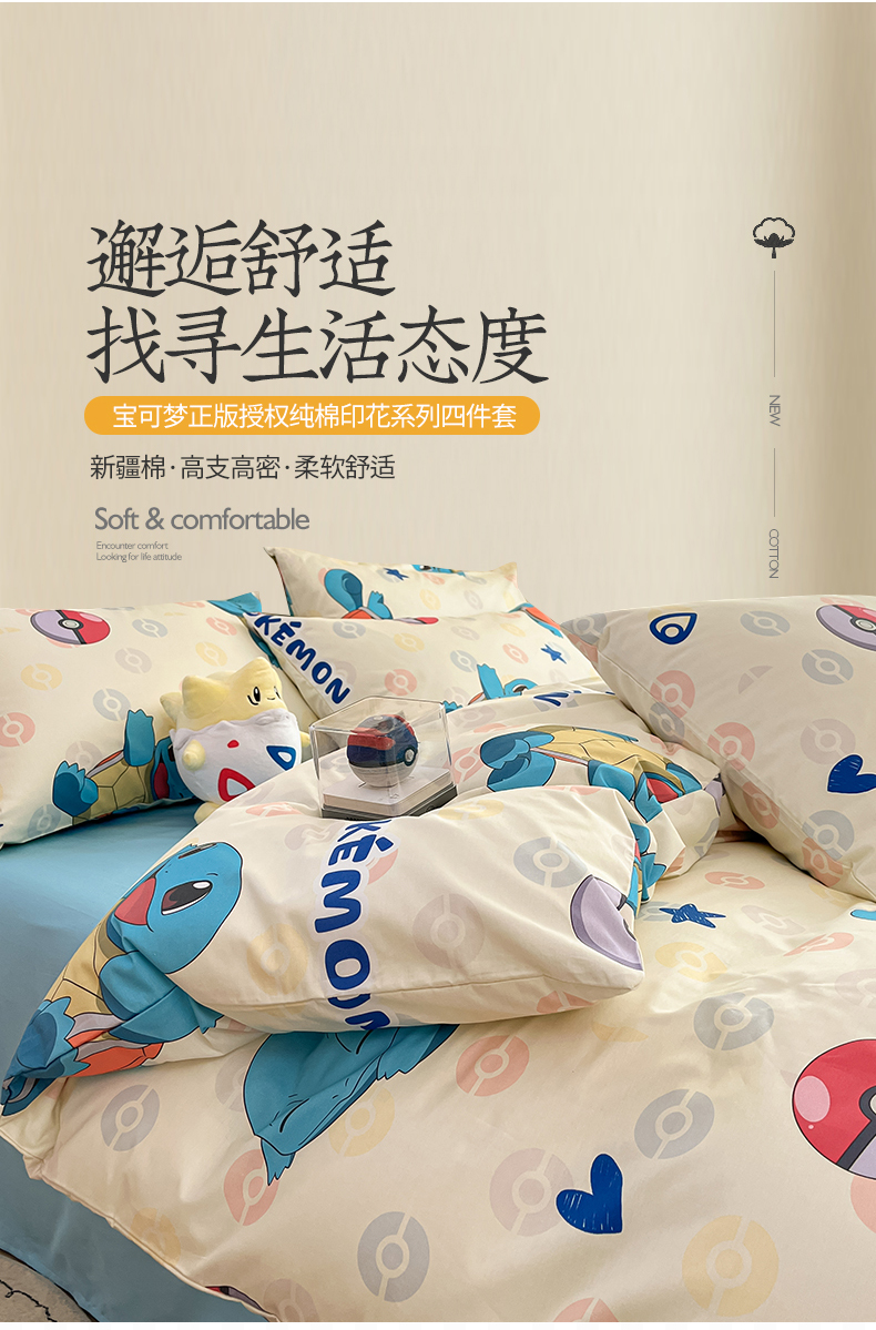 当前位置: 91家纺网 > 商品网购 > 床品套件 > 四件套 > 全棉普通四件套 > 桃子家居 2025新款宝可梦正版授权皮卡丘纯棉印花系列四件套 棉宝可梦-欢快杰尼龟
