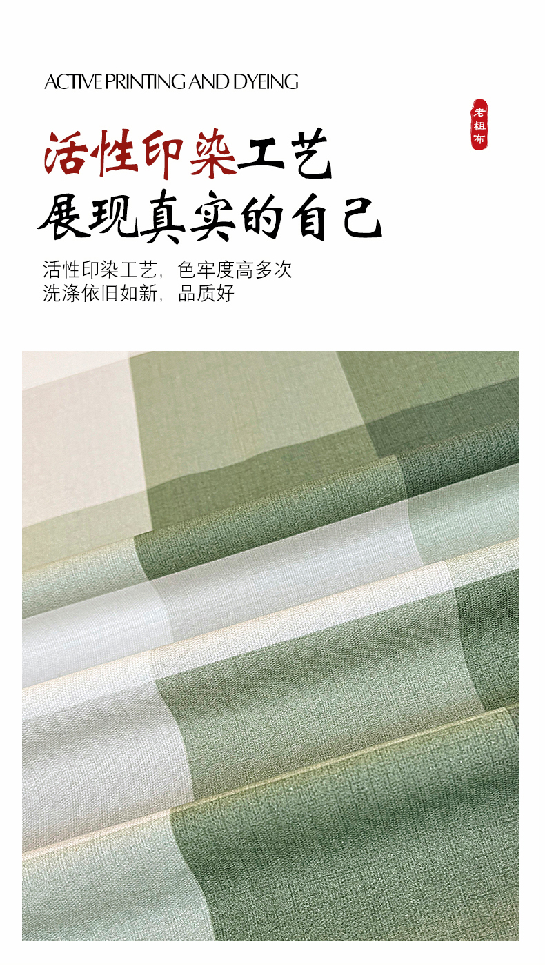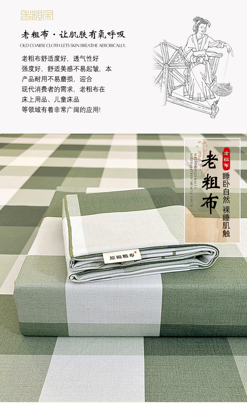• 91家纺网 家纺一手货源 找家纺 伊而梦蚊帐 2025新款A类老粗布抗菌床单 大方格-绿