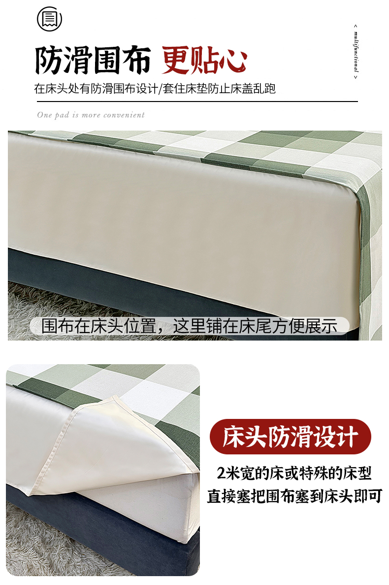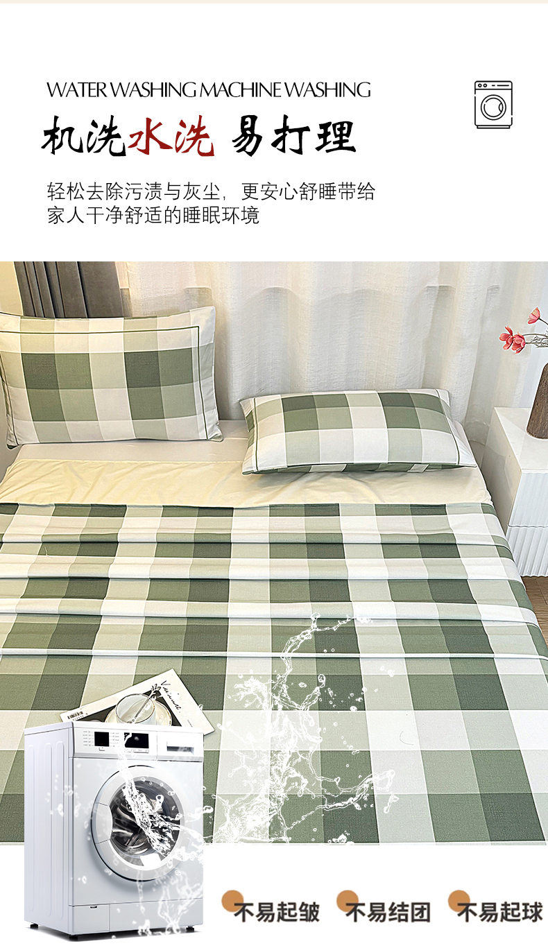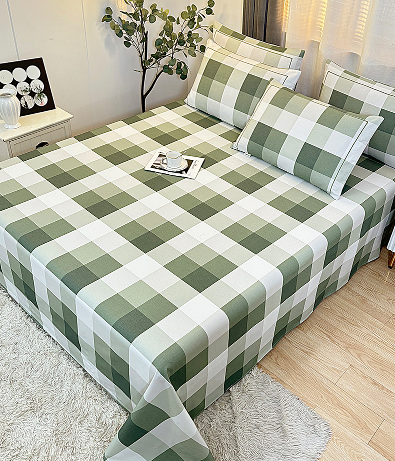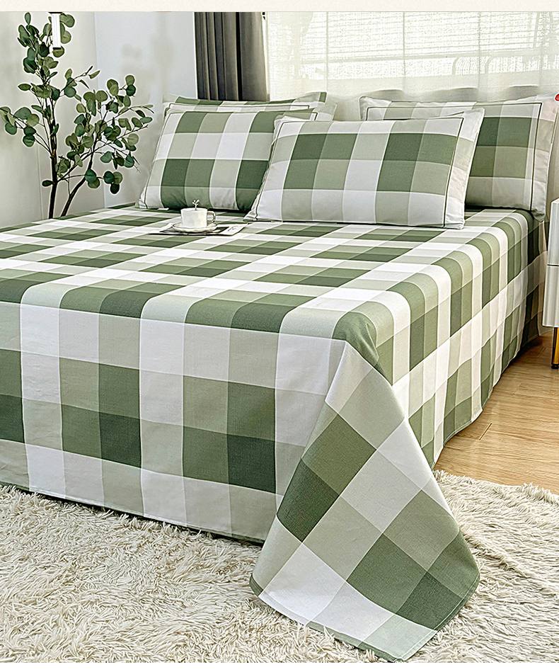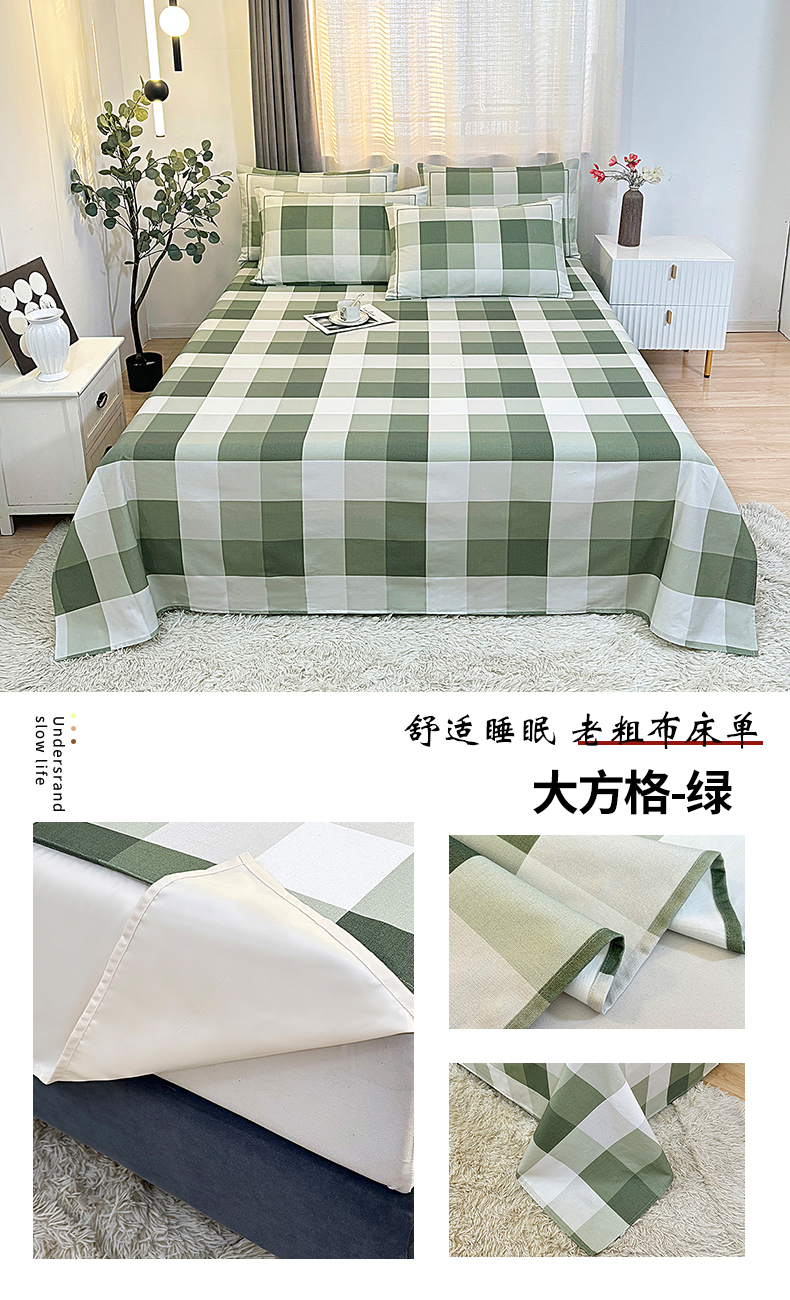 伊而梦蚊帐 2025新款A类老粗布抗菌床单 大方格-绿