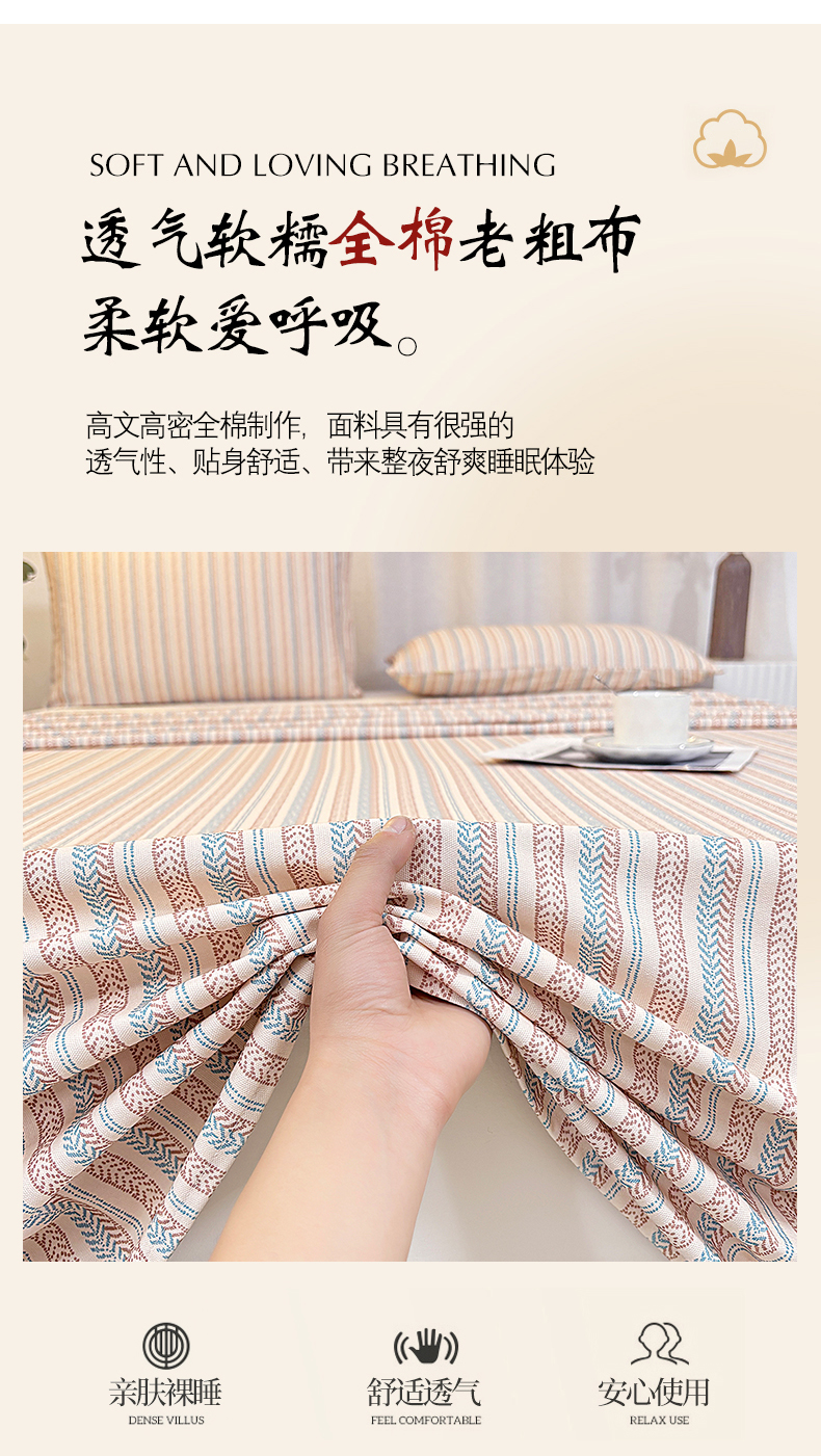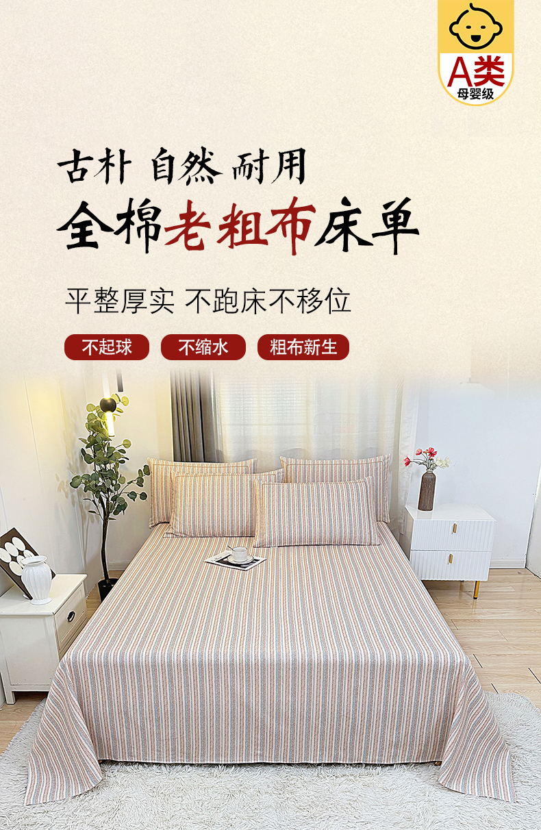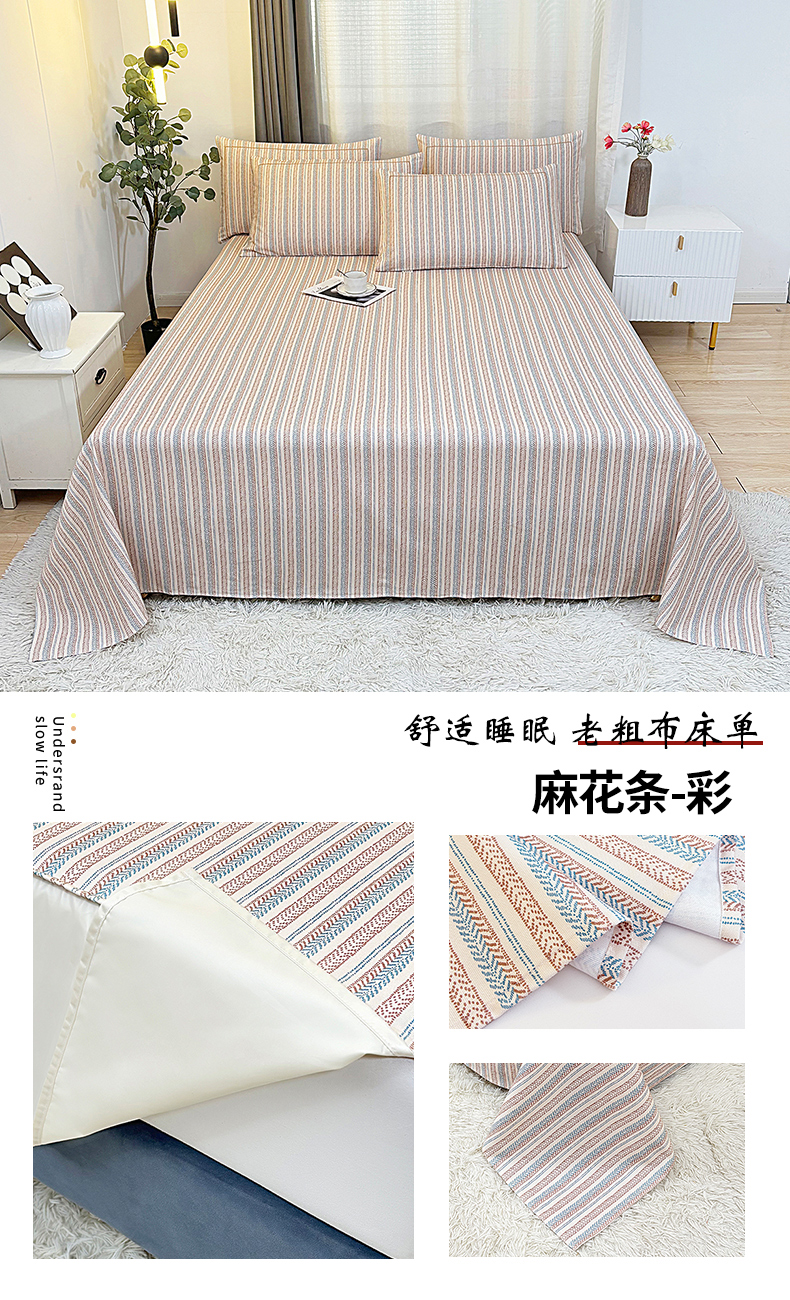 伊而梦蚊帐 2025新款A类老粗布抗菌床单 麻花条-彩