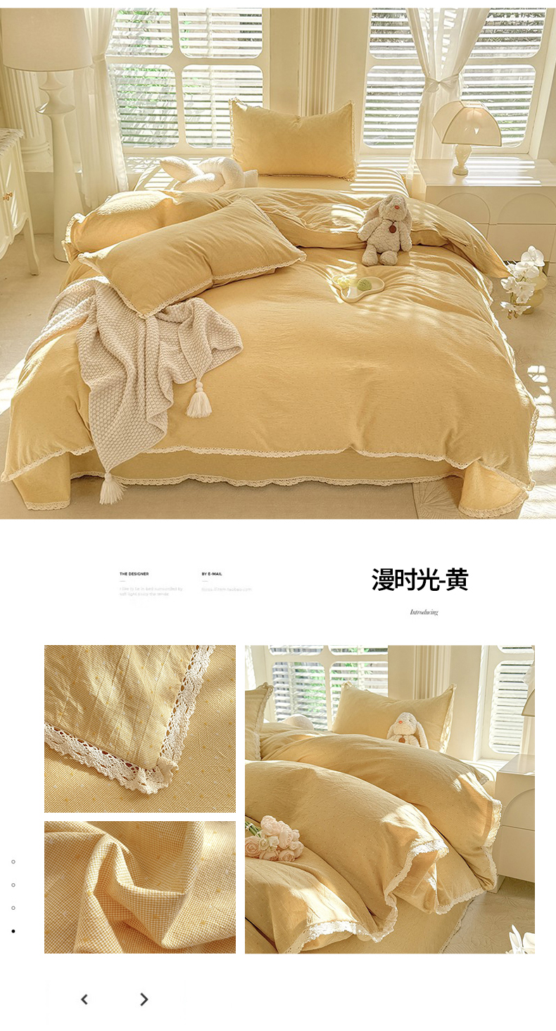 棉小二 2025新款全棉色织提花水洗棉花边四件套-漫时光 漫时光-黄