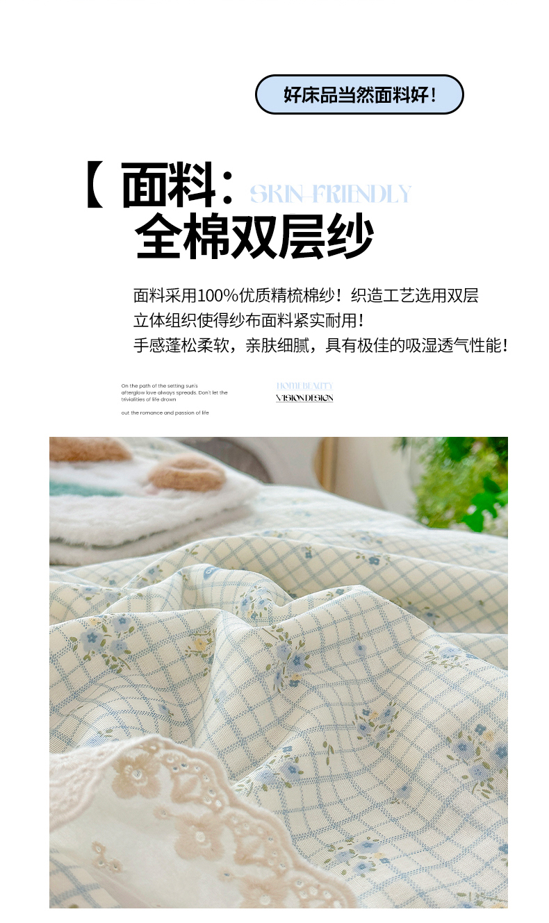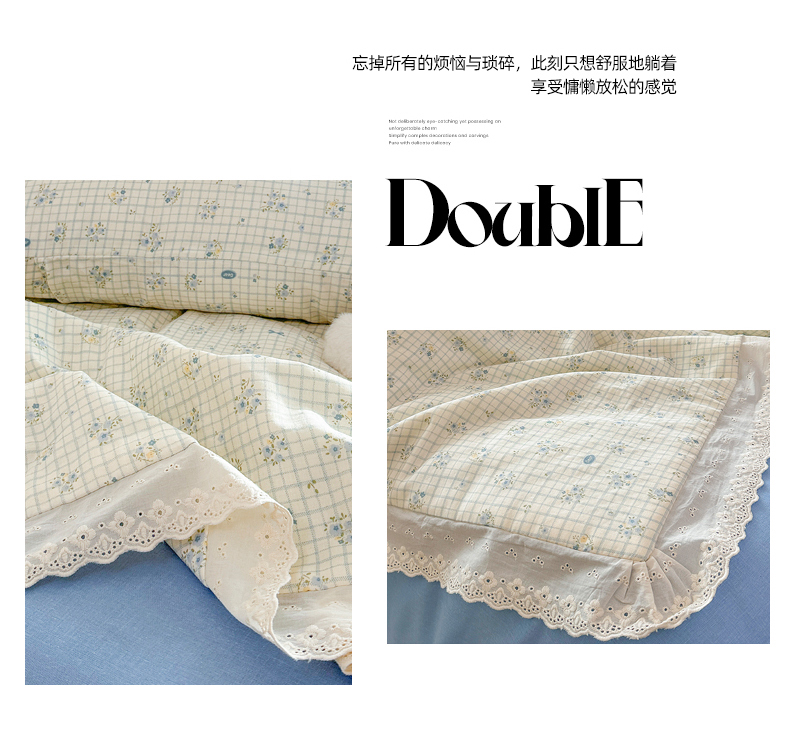 • 91家纺网 家纺一手货源 找家纺 (总)木楌家居 2025新款全棉纯棉彩点皱皱纱法式大花边四件套,月光恋人