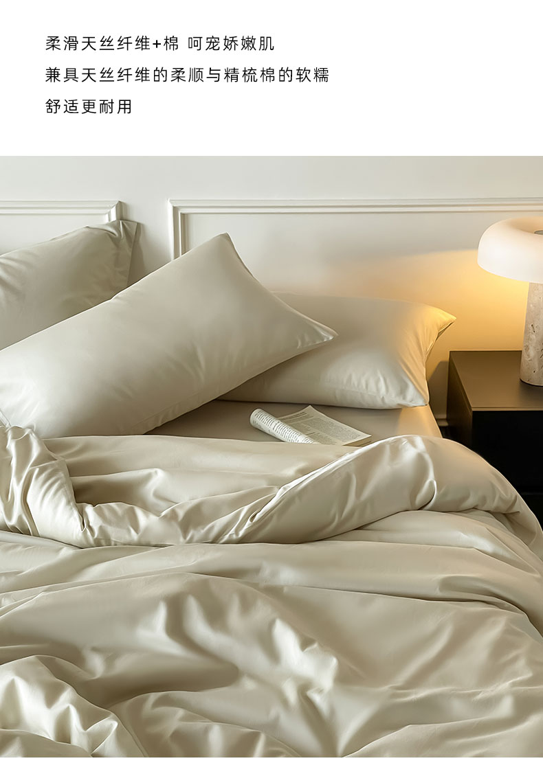 商品名称:Mr.pig猪先生水洗棉 2025新款A类柔软纯色天丝棉单被套 燕麦奶