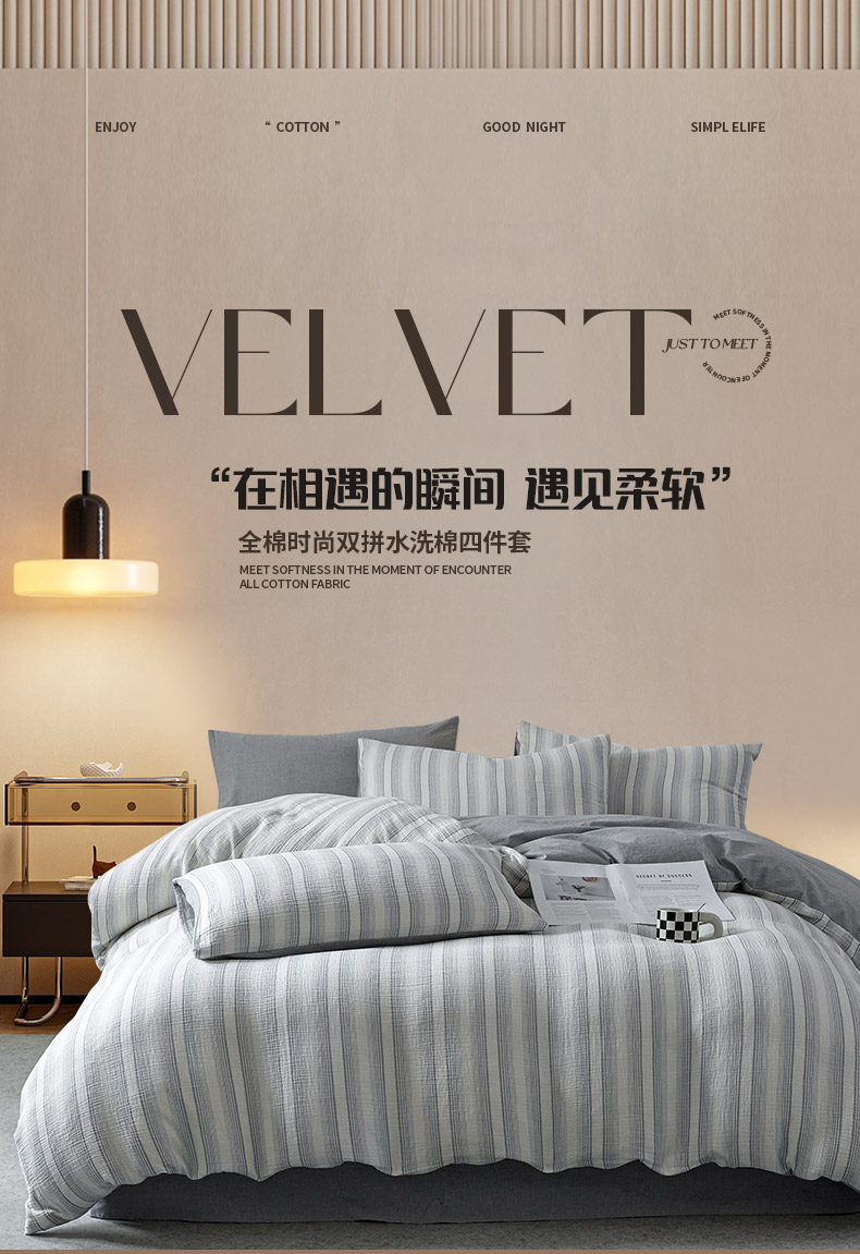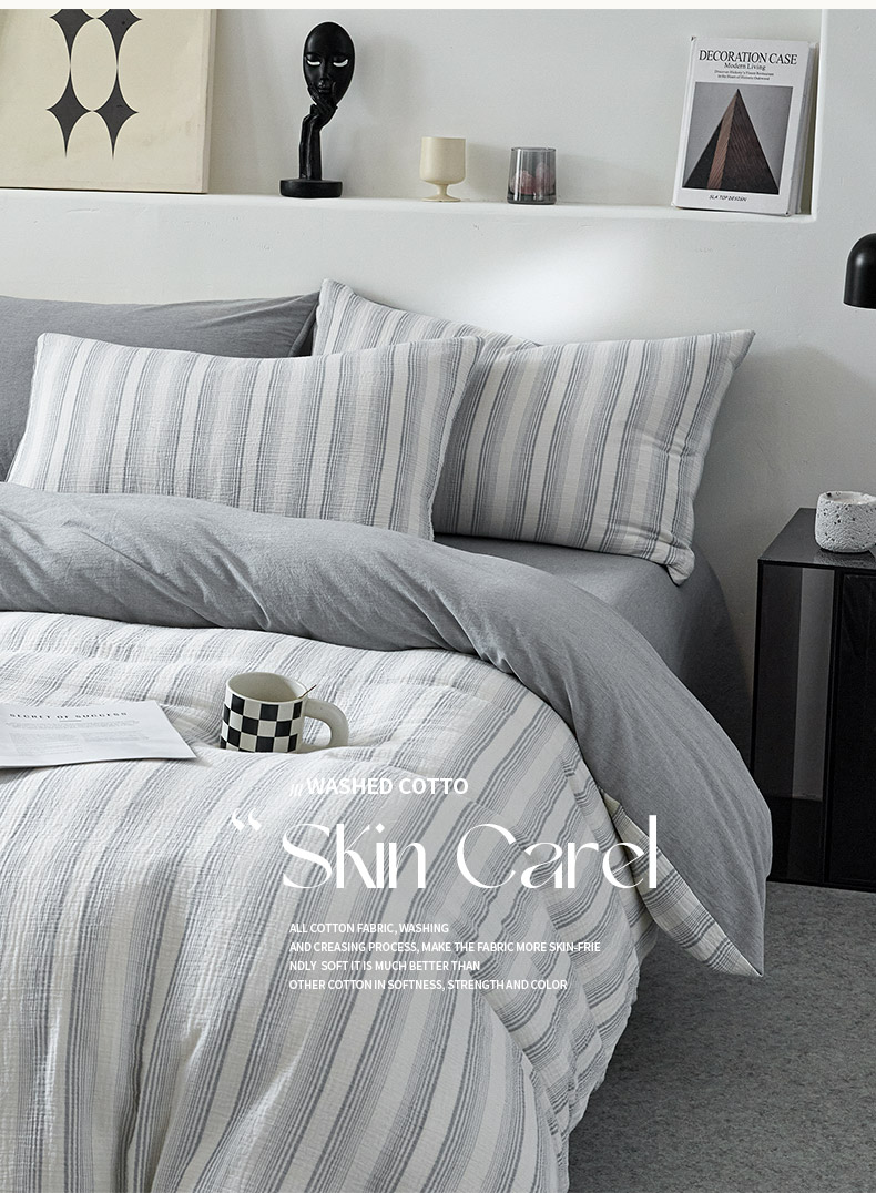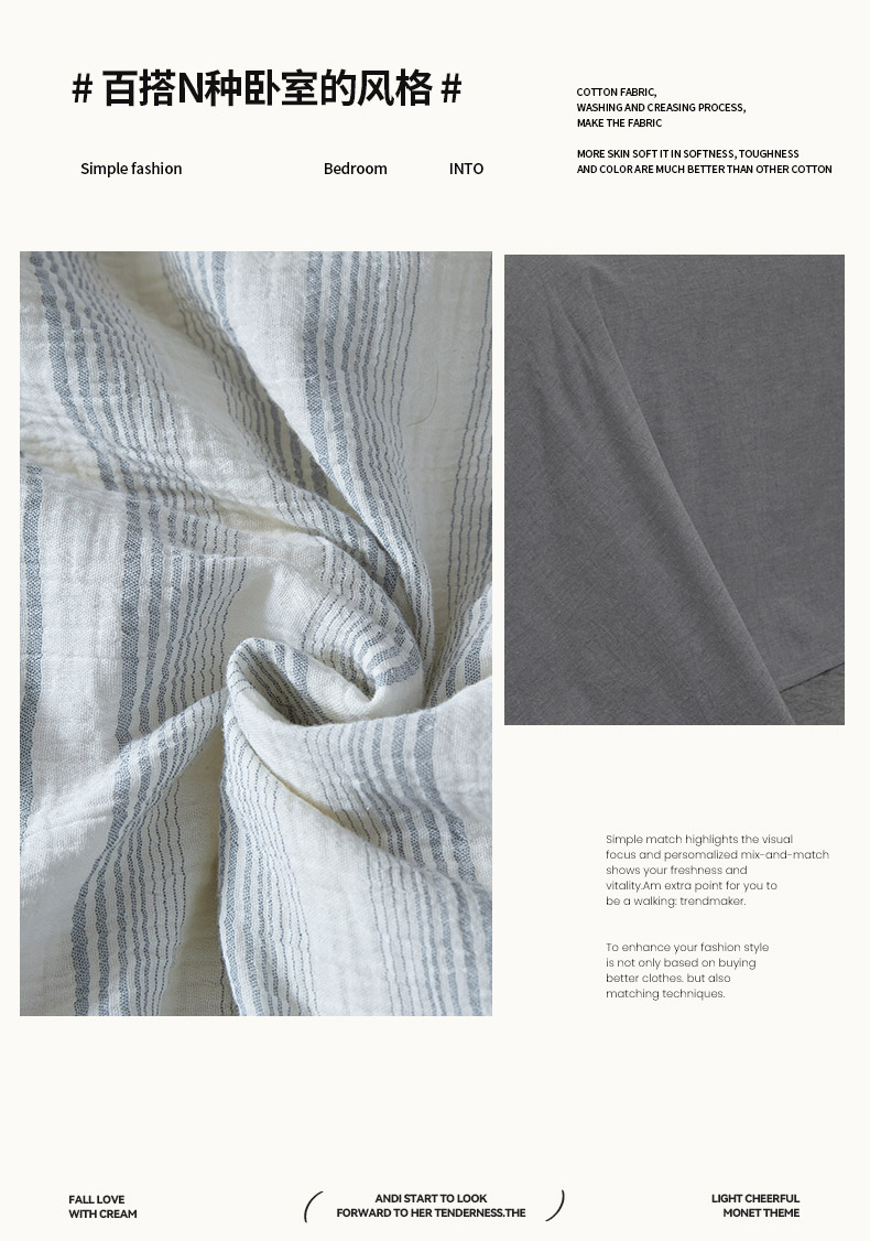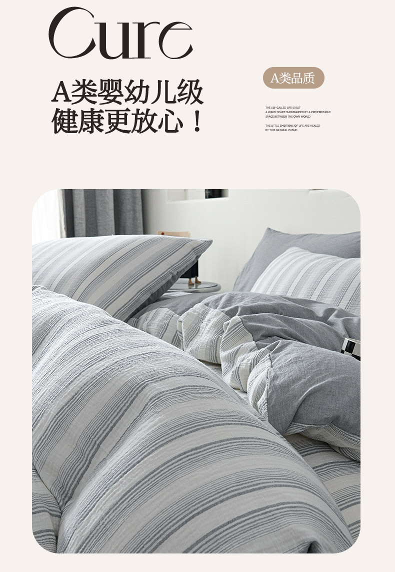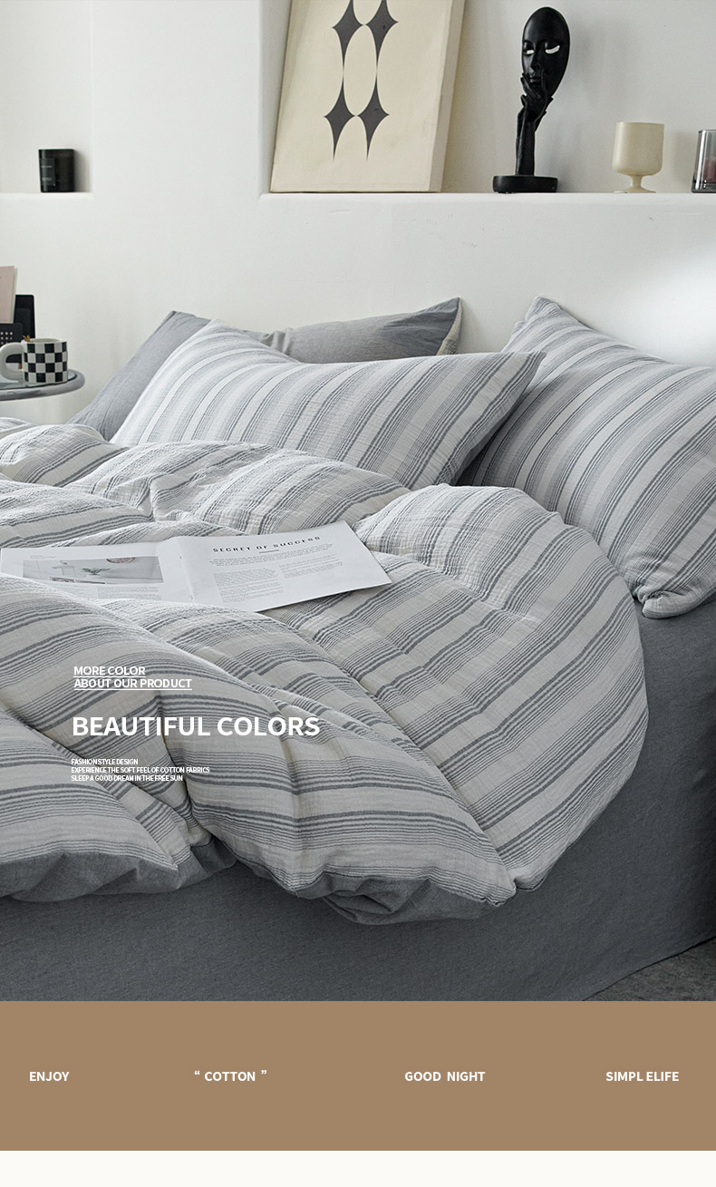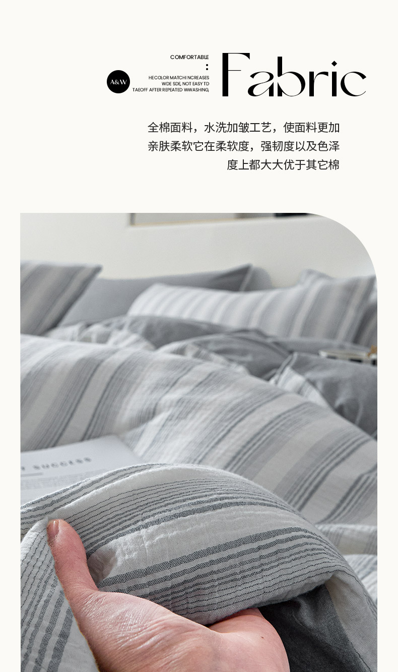 当前位置: 91家纺网 > 商品网购 > 床品套件 > 四件套 > 全棉普通四件套 > AB家纺 2025新款三层款皱皱纱条纹四件套 半夏-兰