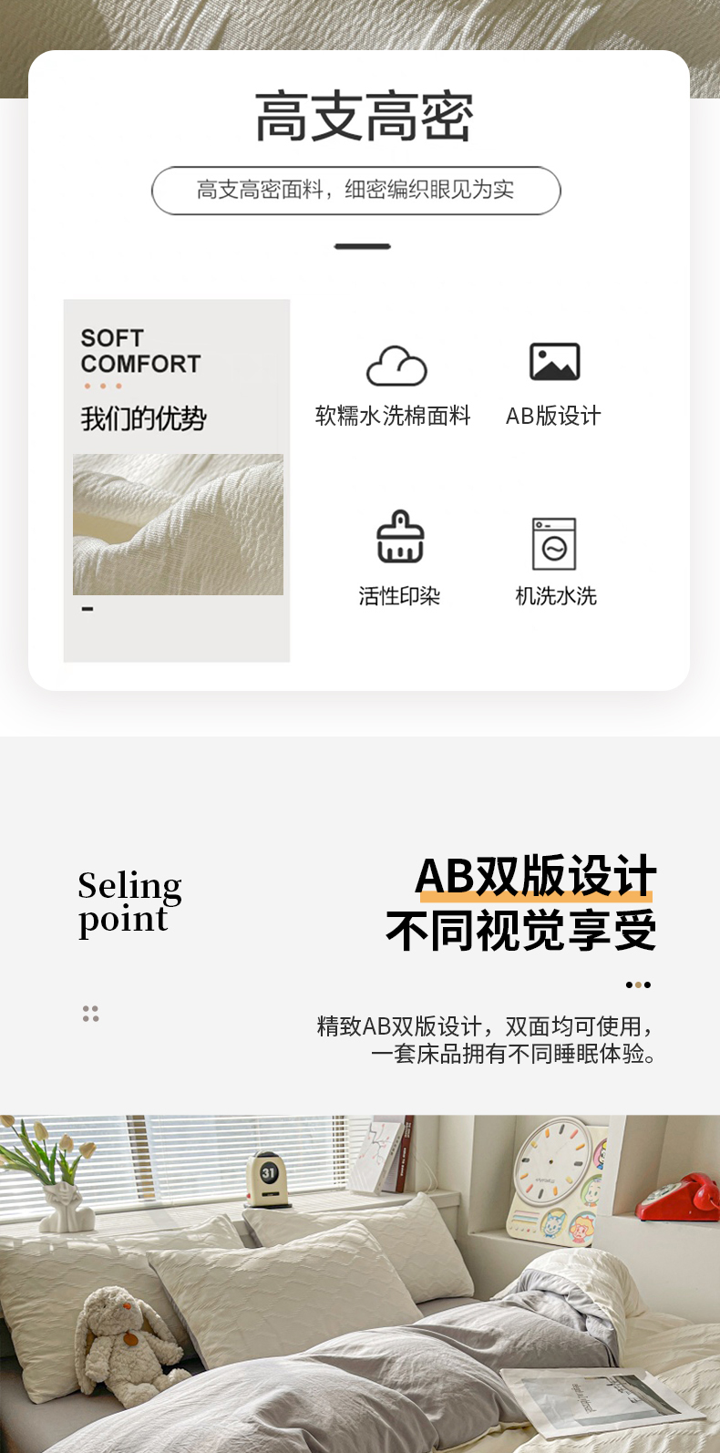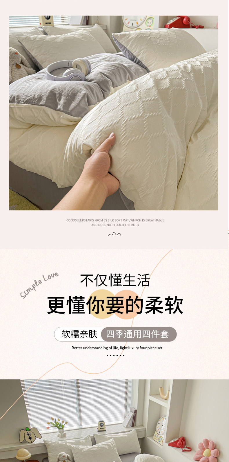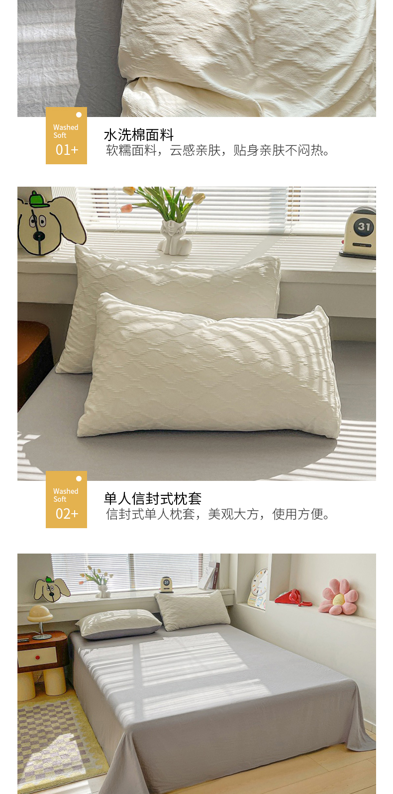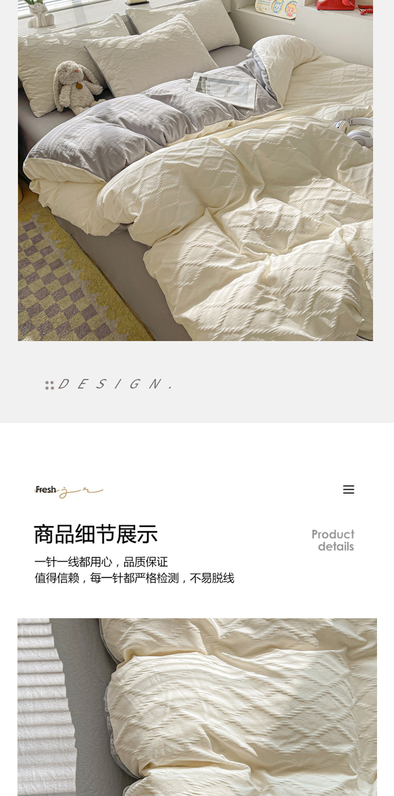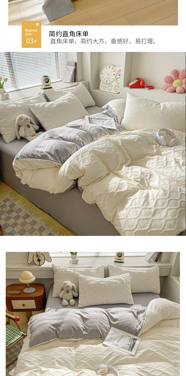 当前位置: 91家纺网 > 商品网购 > 床品套件 > 四件套 > 水洗棉四件套 > 麒东家纺 2025年新款水洗棉春夏菱形格双拼小清新高品质四件套 菱形格-白灰