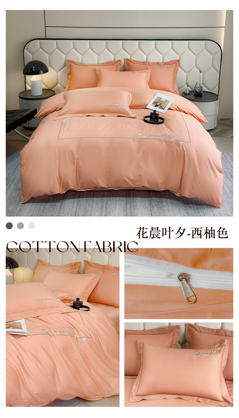 商品名称:U品汇 2025新款纯棉全棉长绒棉刺绣绣花高端礼盒四件套-叶夕 花晨叶夕-西柚色