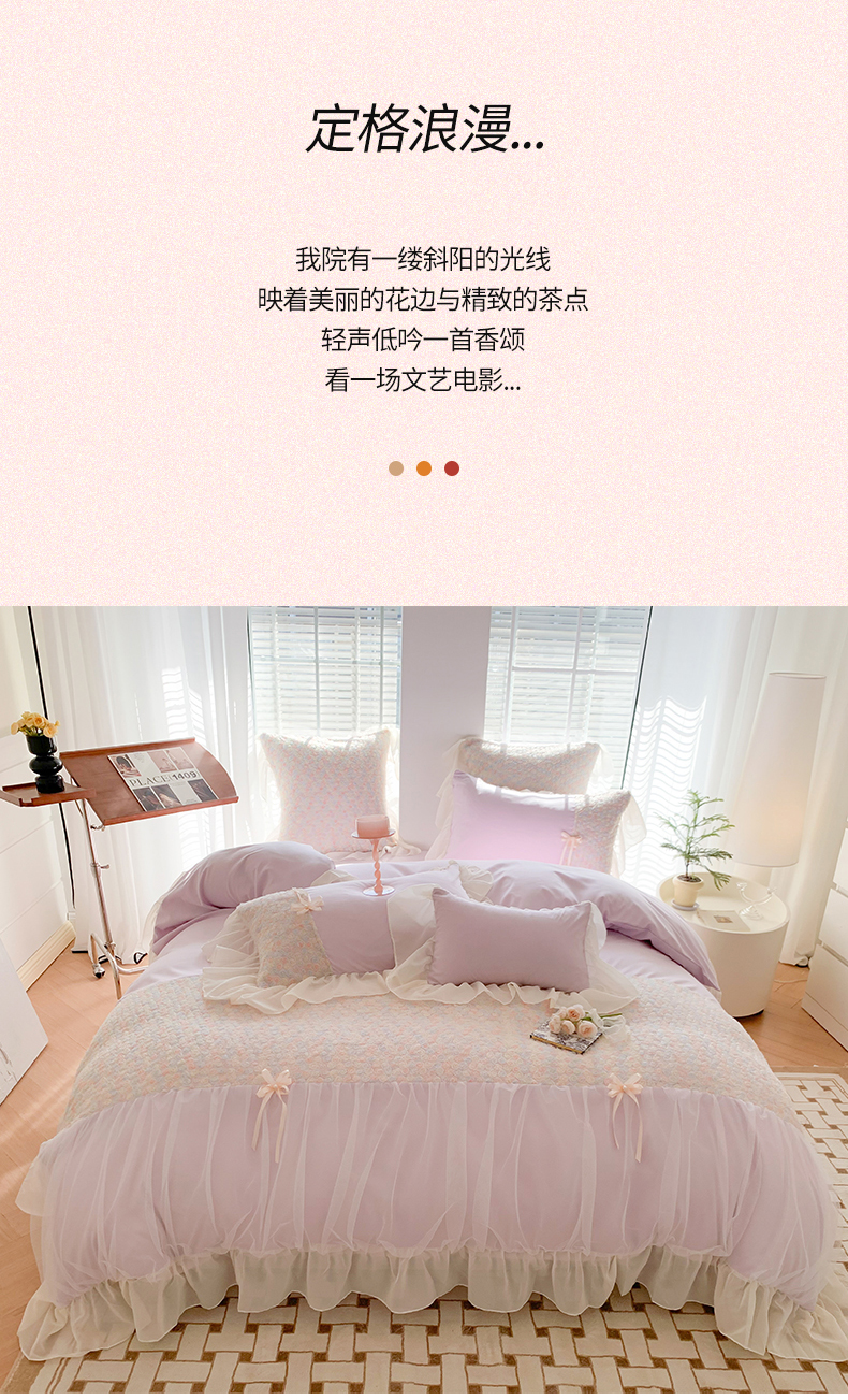 (总)吾欢心 2025秋冬新款加厚雕花绒婴儿绒安娜贝尔系列法式双层花边四件套,安娜贝尔白,安娜贝尔粉,安娜贝尔咖,安娜贝尔蓝,安娜贝尔绿,安娜贝尔紫