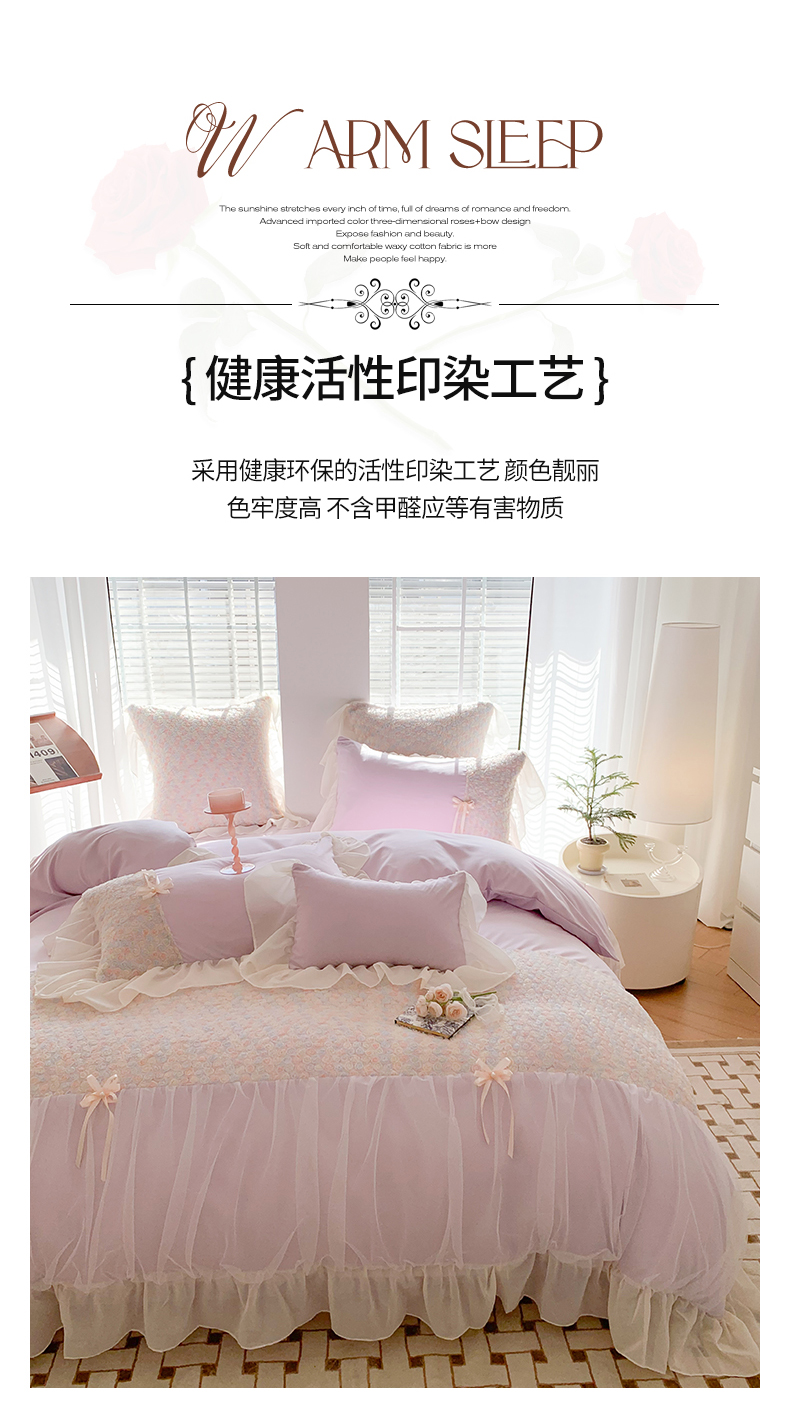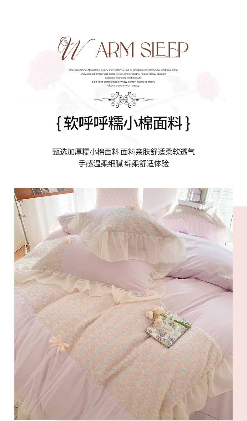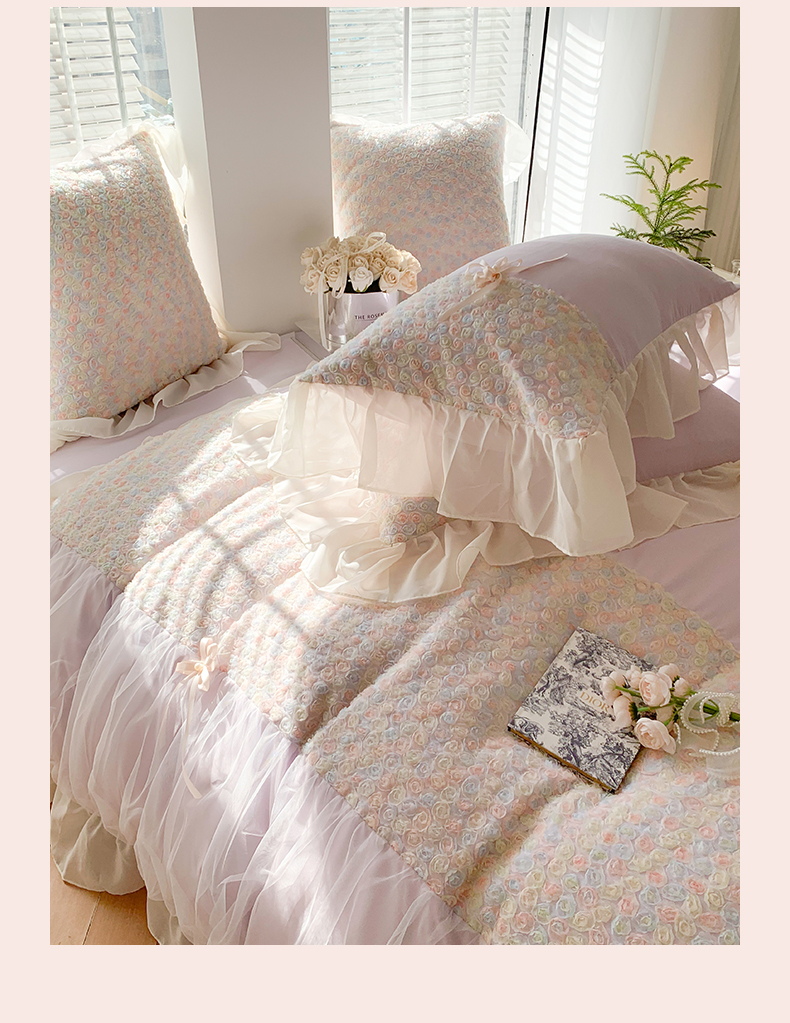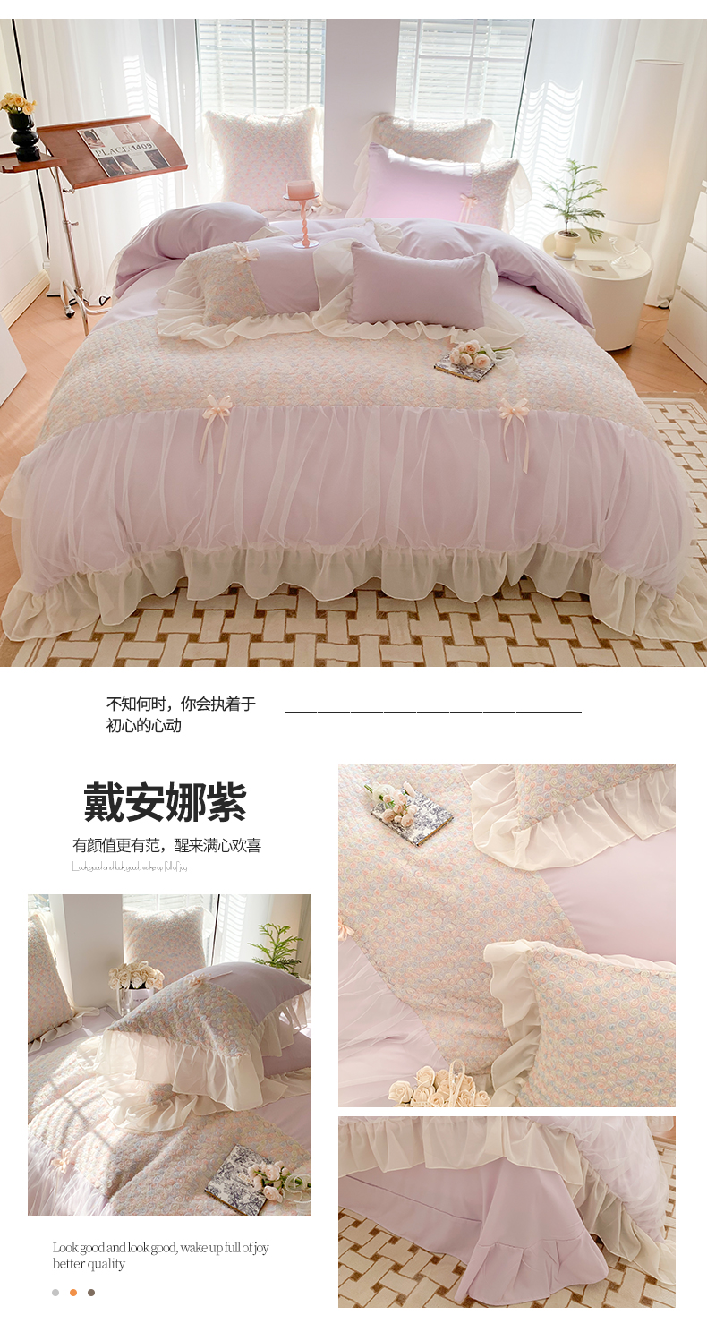 商品名称:吾欢心2025新款彩色立体玫瑰戴安娜系列四件套 戴安娜紫