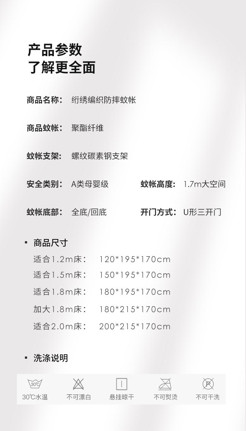 商品名称:(总)卓尔居 2025绗绣编织防摔蚊帐-夏至