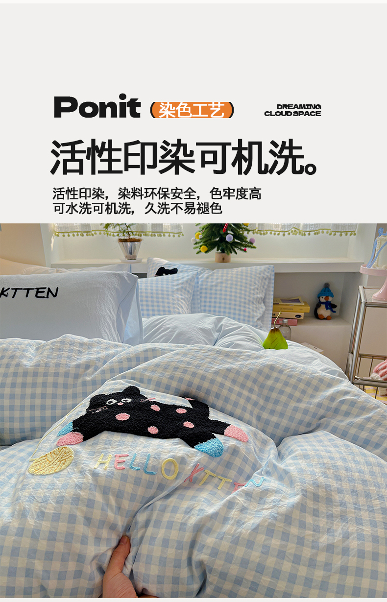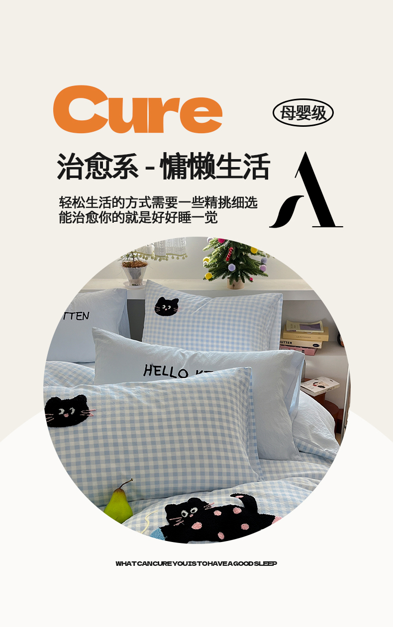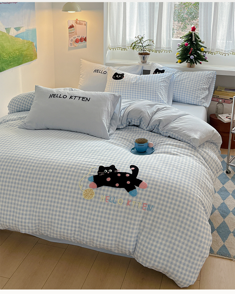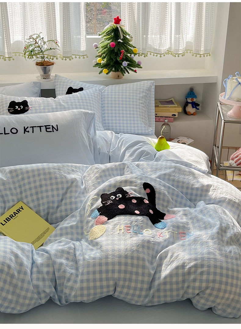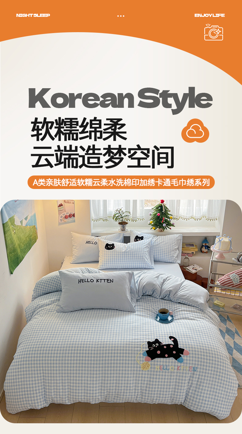 当前位置: 91家纺网 > 商品网购 > 床品套件 > 四件套 > 水洗棉四件套 > 桃心家居 2025新款A类亲肤舒适软糯云柔水洗棉印加绣卡通毛巾绣水洗棉系列 云柔水洗棉-印加绣蓝格黑小猫