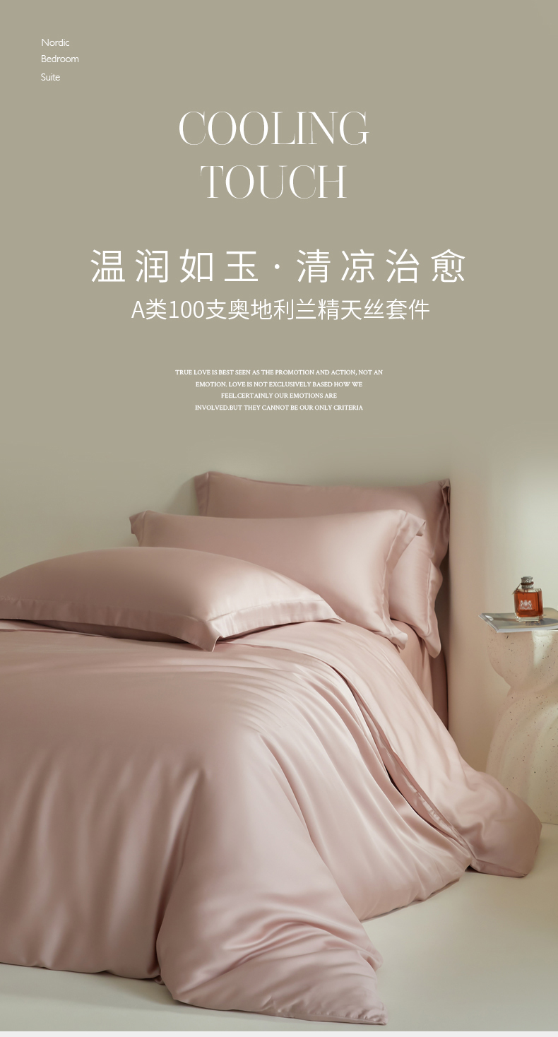 当前位置: 91家纺网 > 商品网购 > 床品套件 > 四件套 > 莱赛尔四件套 > 618家纺 2025新款60SA类100支纯色系列进口兰精天丝四件套 樱花粉