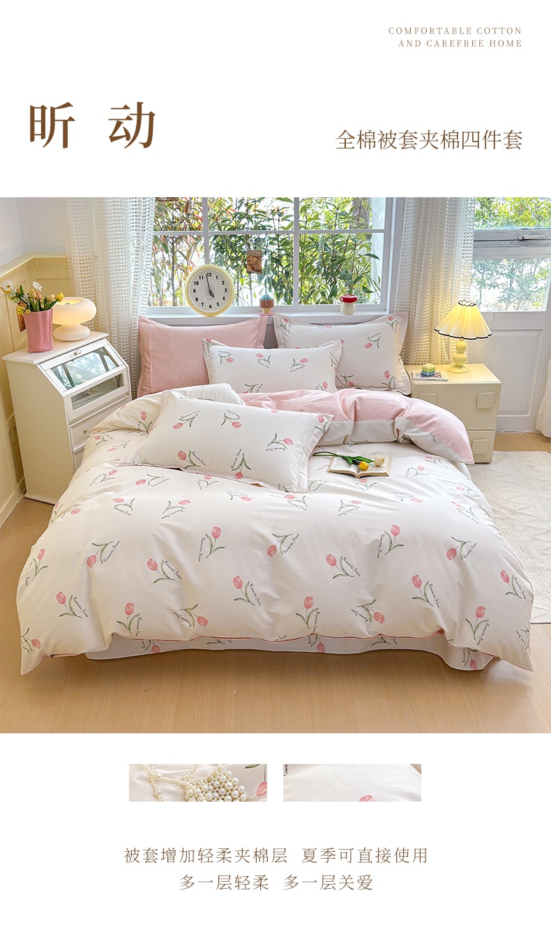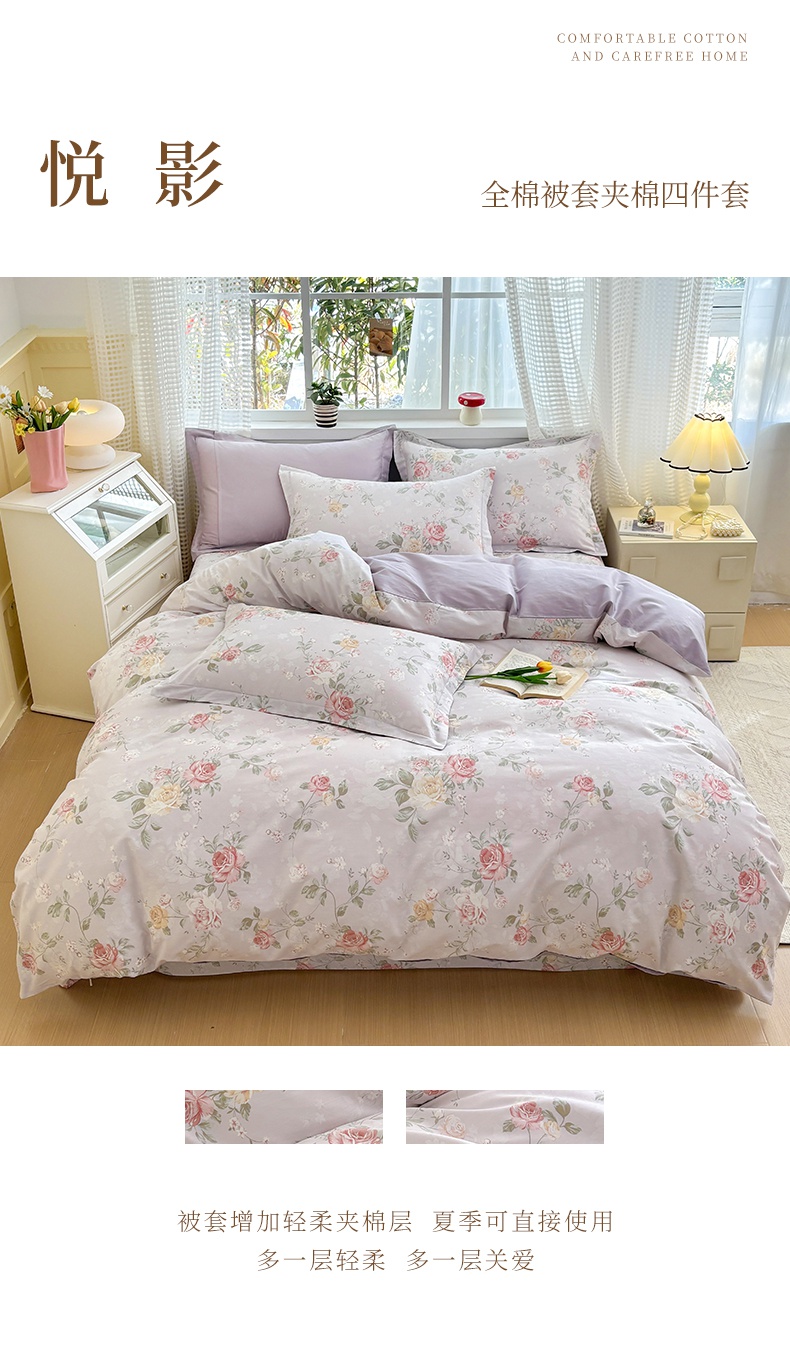 当前位置: 91家纺网 > 商品网购 > 床品套件 > 四件套 > 全棉普通四件套 > 元元被芯 2025新款40支13372全棉印花全棉被套夹棉四件套 花舞