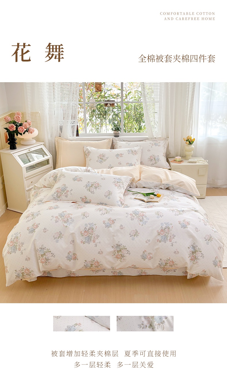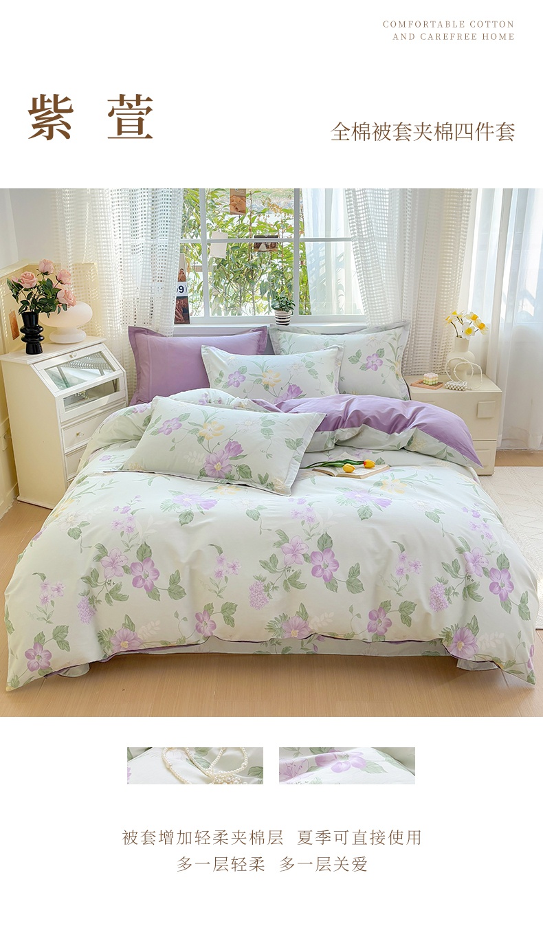 当前位置: 91家纺网 > 商品网购 > 床品套件 > 四件套 > 全棉普通四件套 > 元元被芯 2025新款40支13372全棉印花全棉被套夹棉四件套 颂雅
