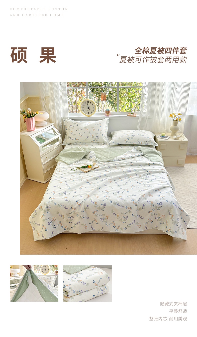 • 91家纺网 家纺一手货源 找家纺 元元被芯 2025新款40支13372全棉印花夏被四件套 悠然