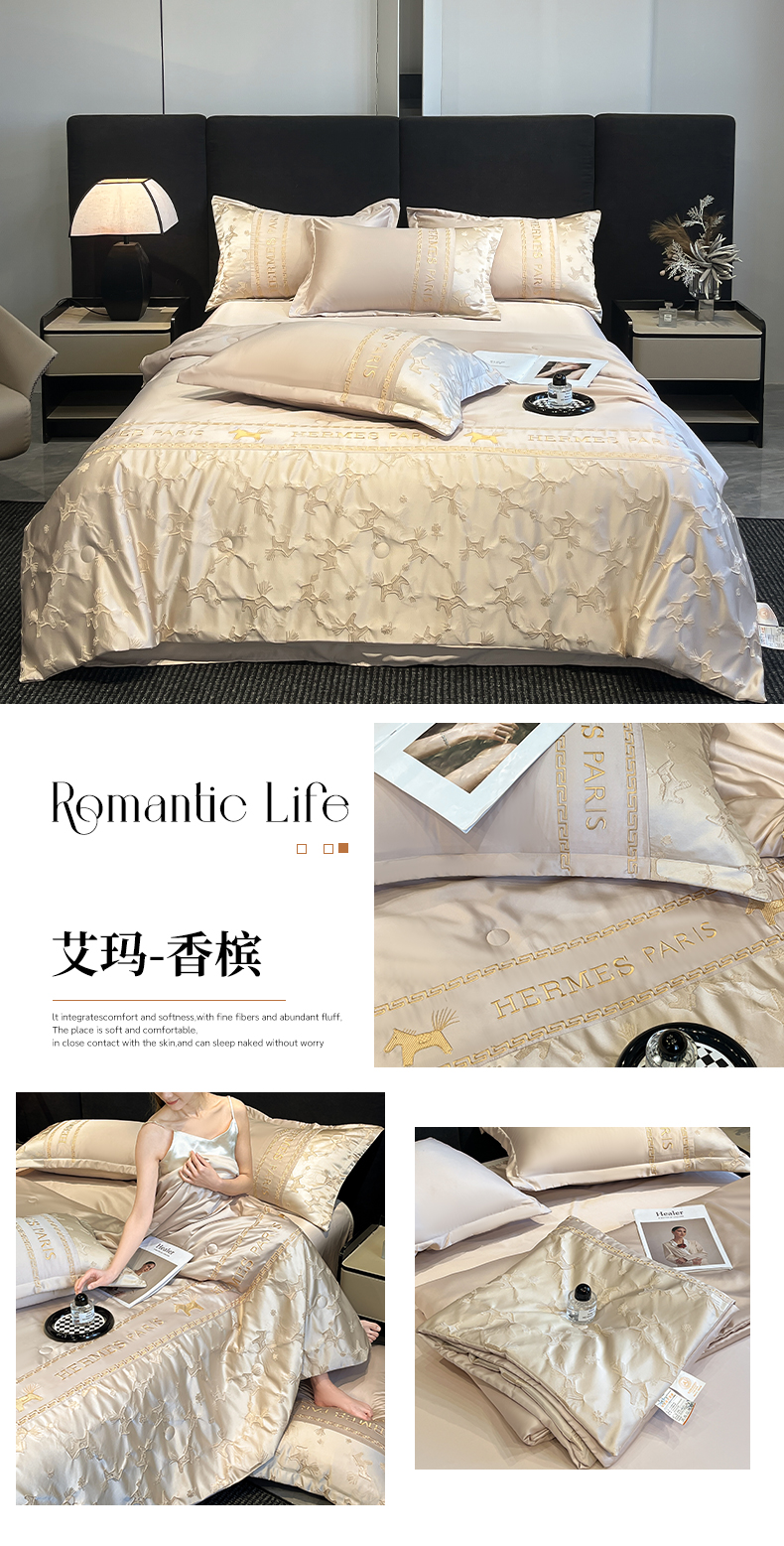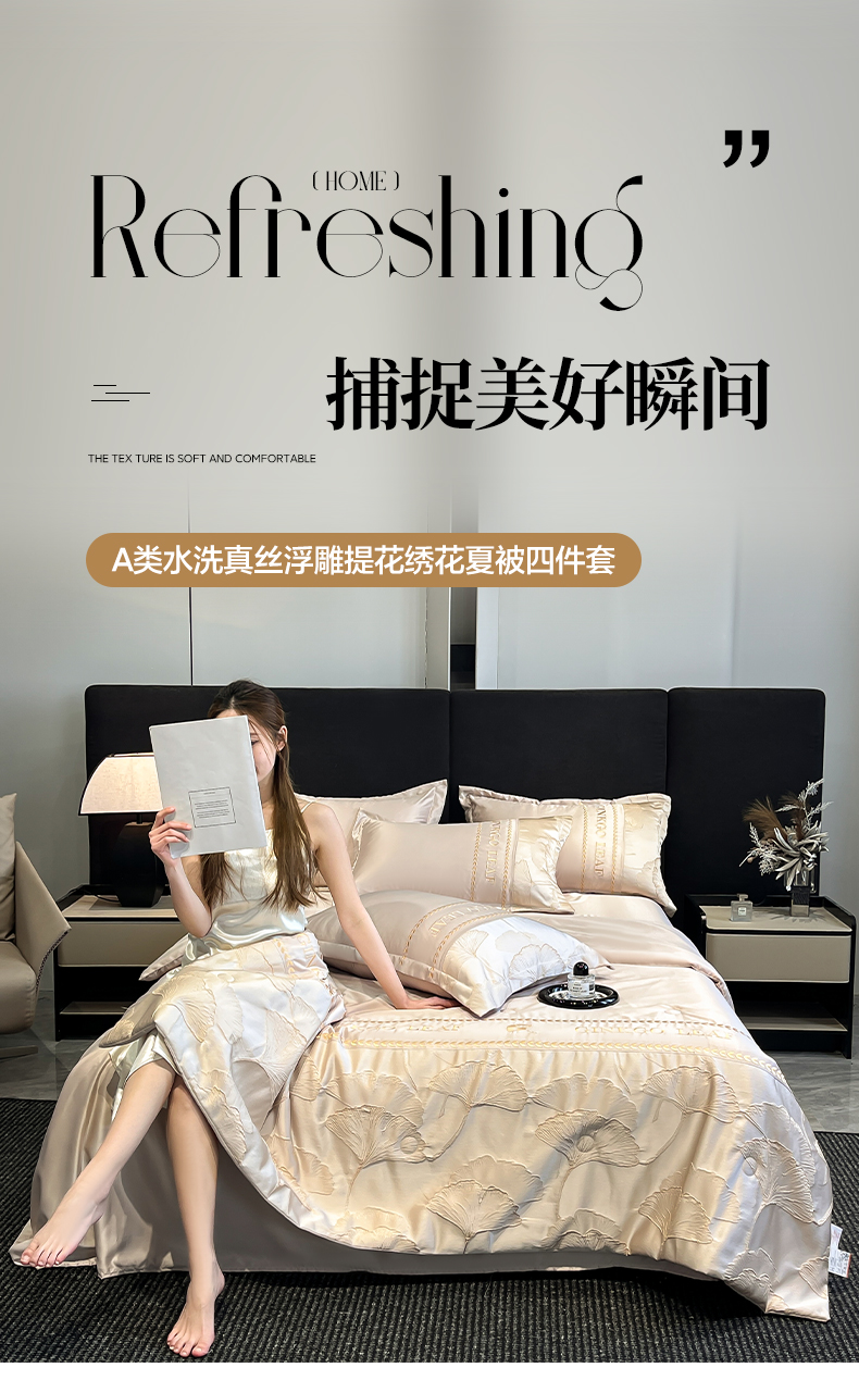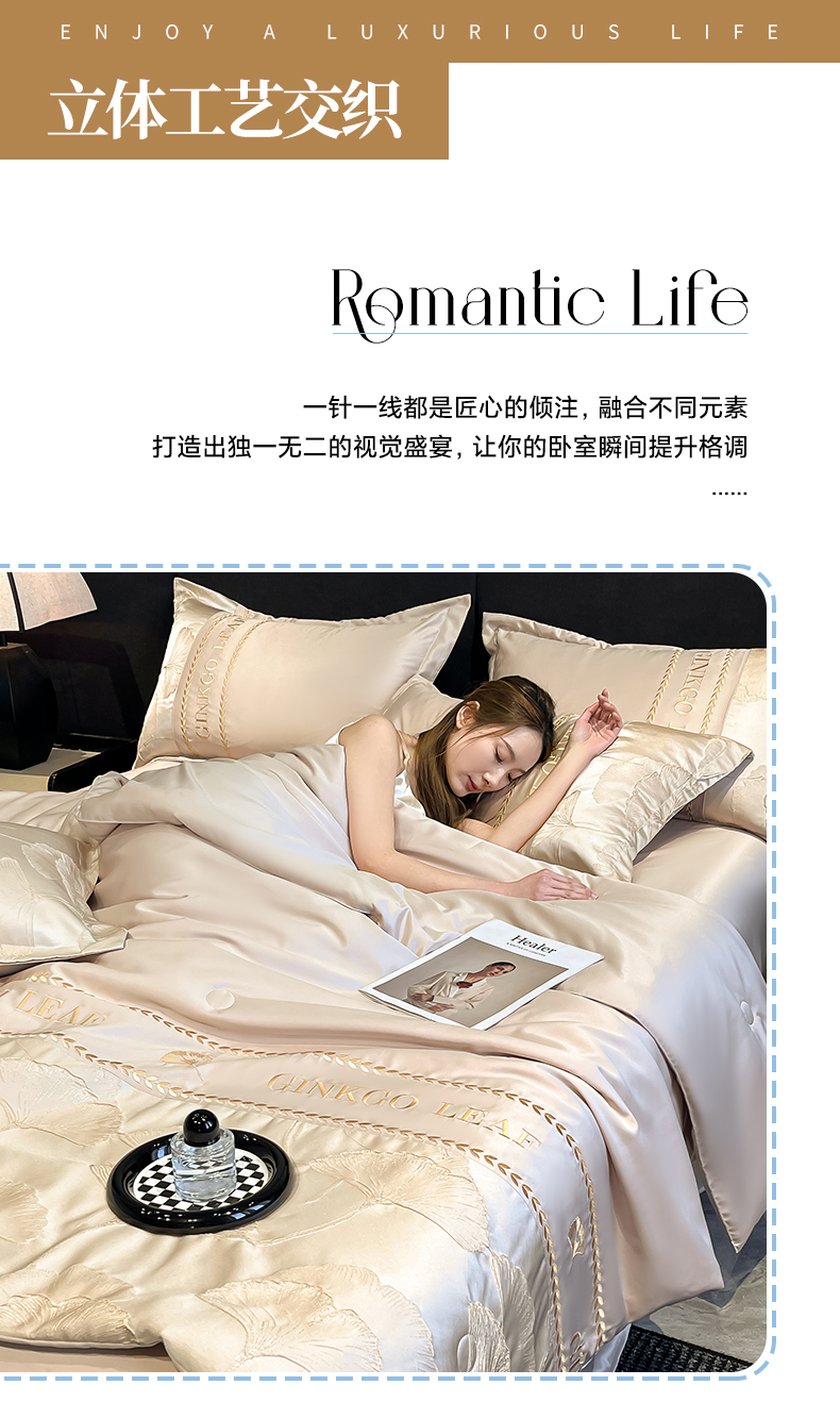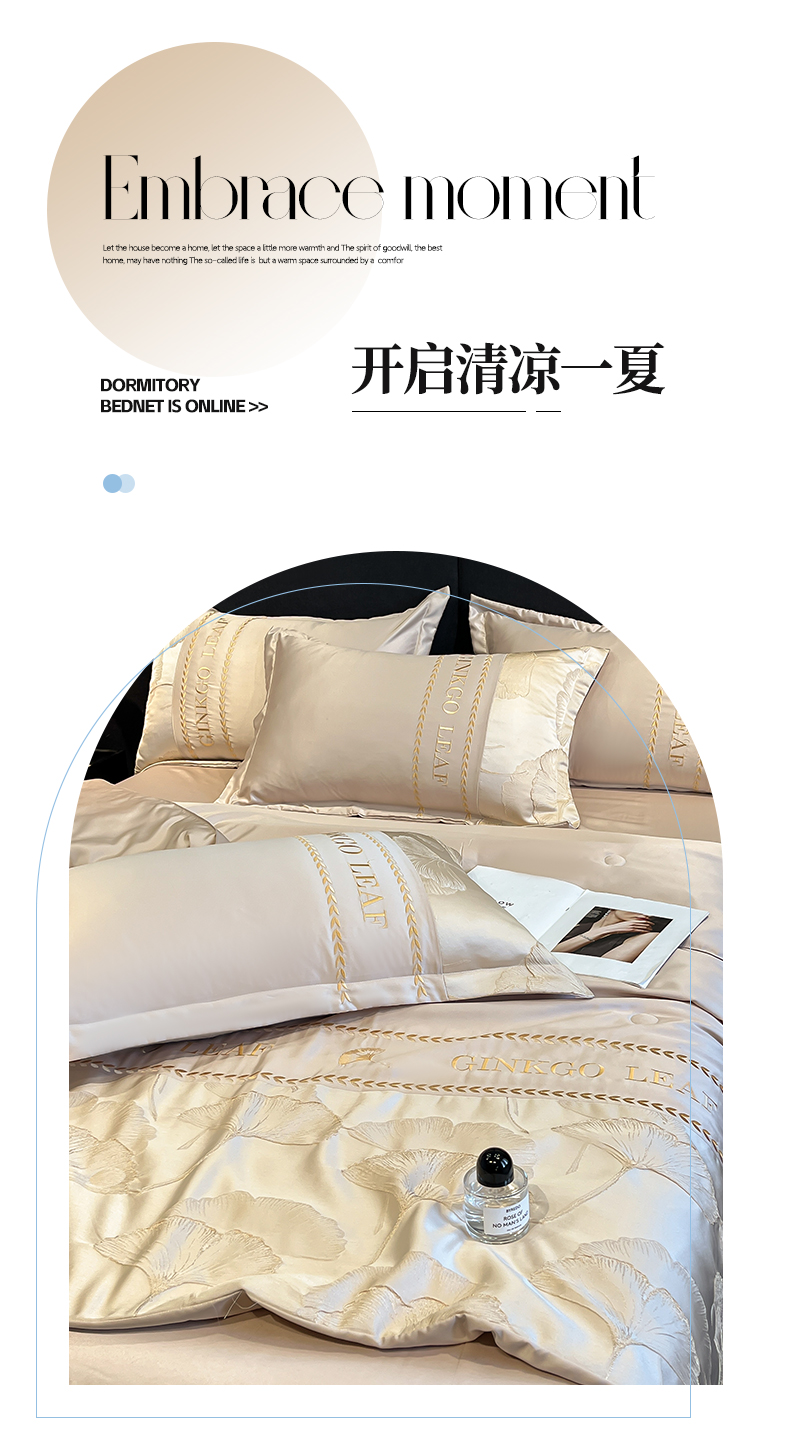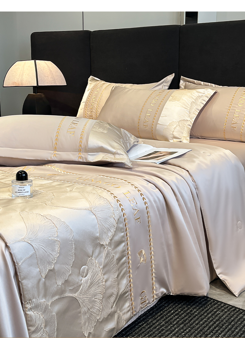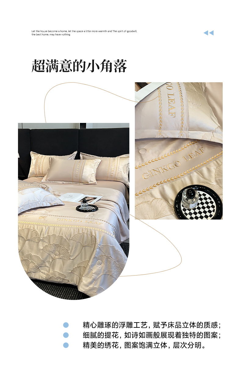 当前位置: 91家纺网 > 商品网购 > 床品套件 > 四件套 > 夏被四件套 > 宇航家纺 2025新款水洗真丝浮雕提花绣花夏被四件套 银杏叶-浅香槟