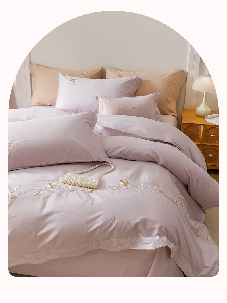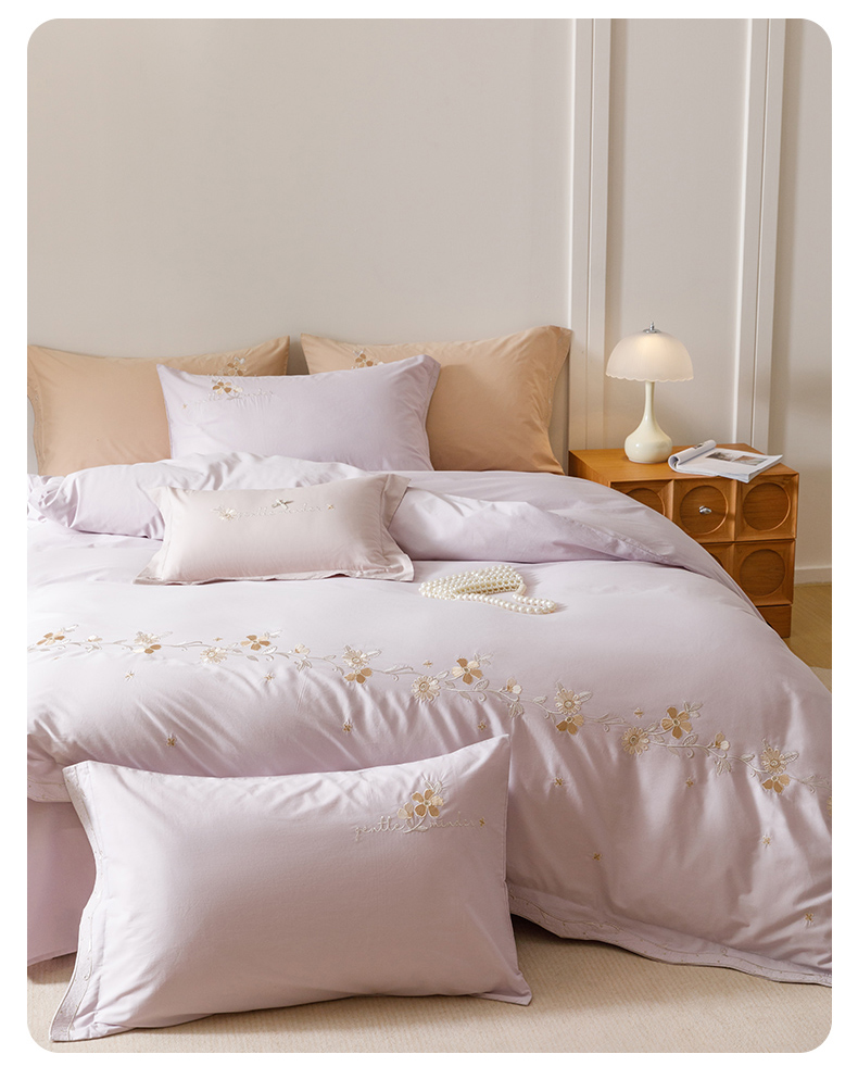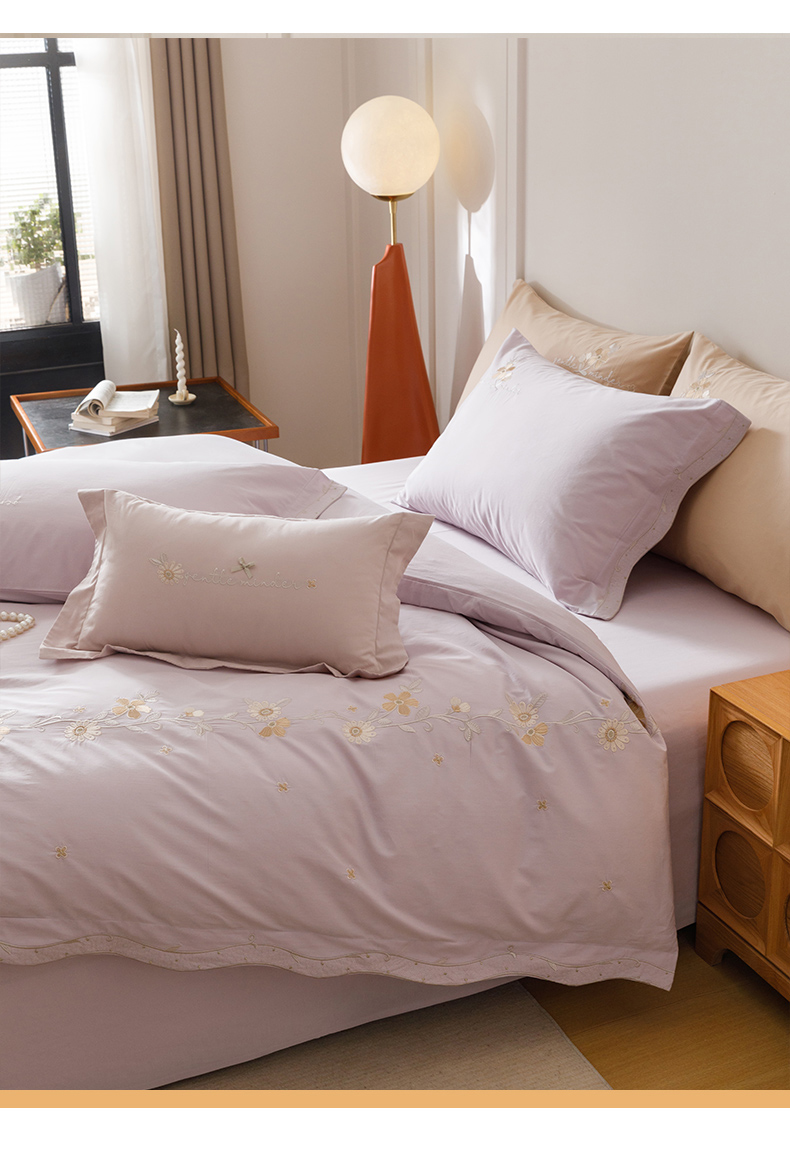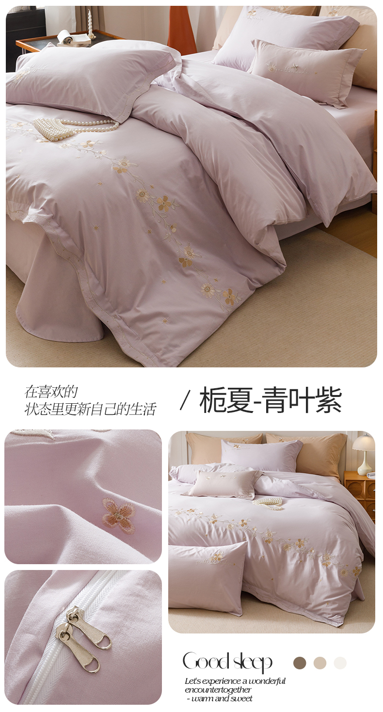 艾莱家纺 2025新款A类水洗棉加厚绣花四件套-栀夏 栀夏-青叶紫