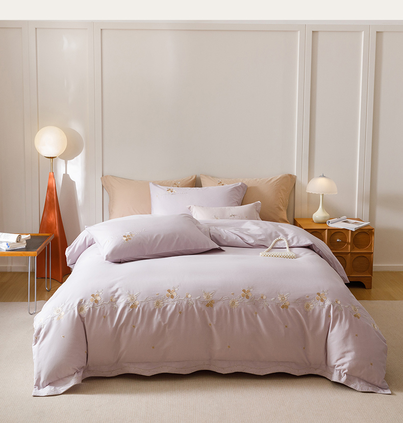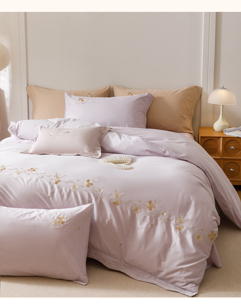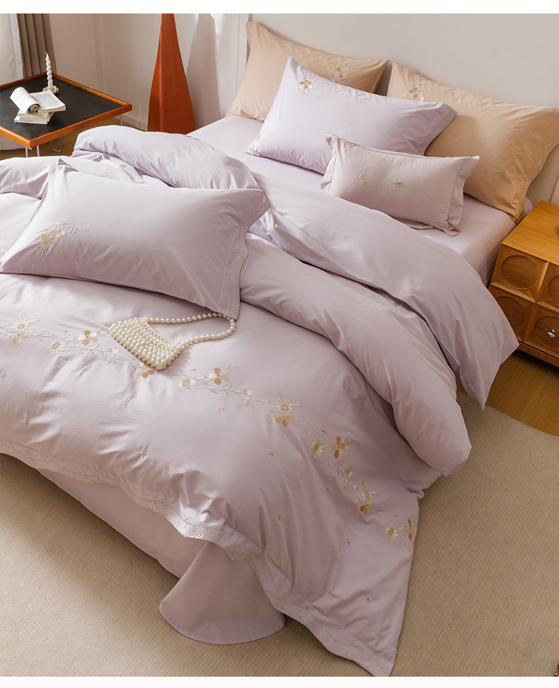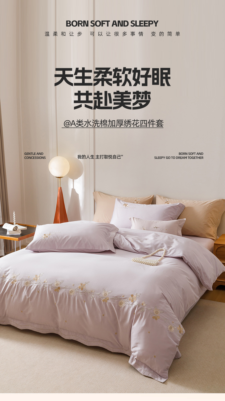 艾莱家纺 2025新款A类水洗棉加厚绣花四件套-栀夏 栀夏-青叶紫