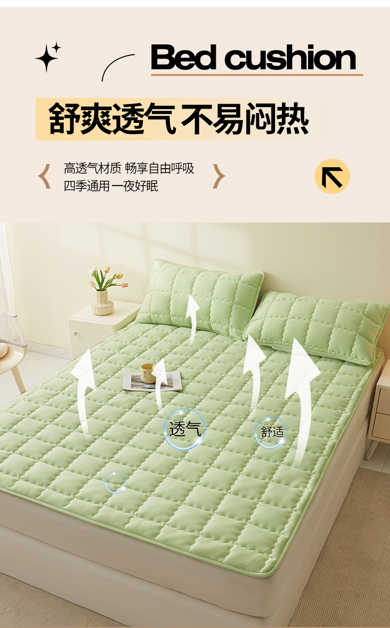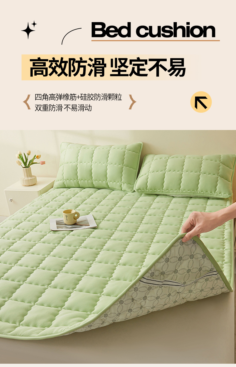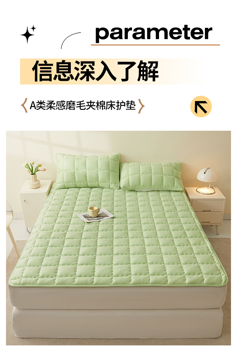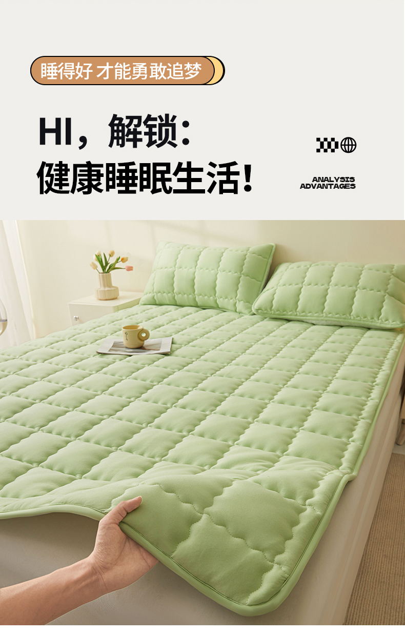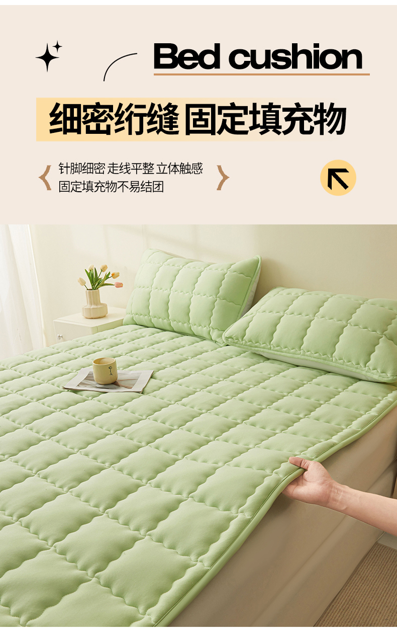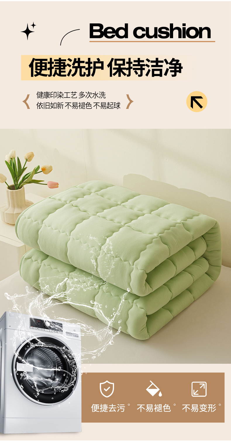 商品名称:迪梦思家纺 2025新款A类亲肤磨毛床垫床护垫铺床褥子夹棉床垫 青果绿