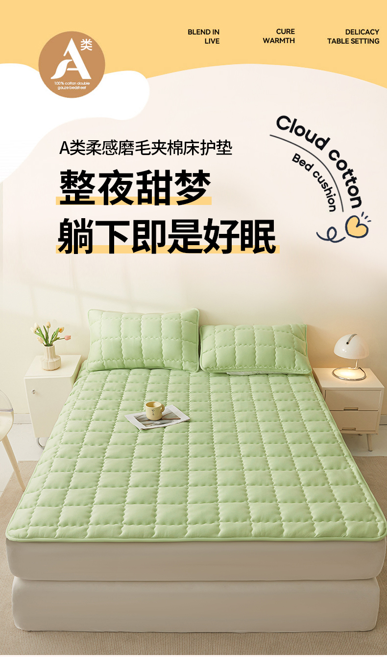 迪梦思家纺 2025新款A类亲肤磨毛床垫床护垫铺床褥子夹棉床垫 青果绿