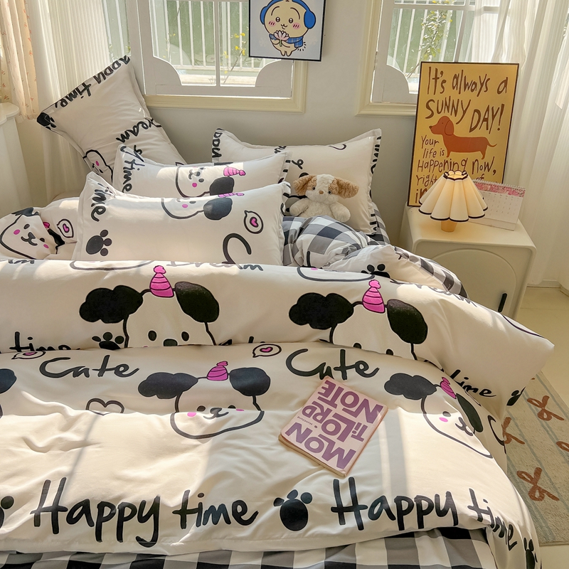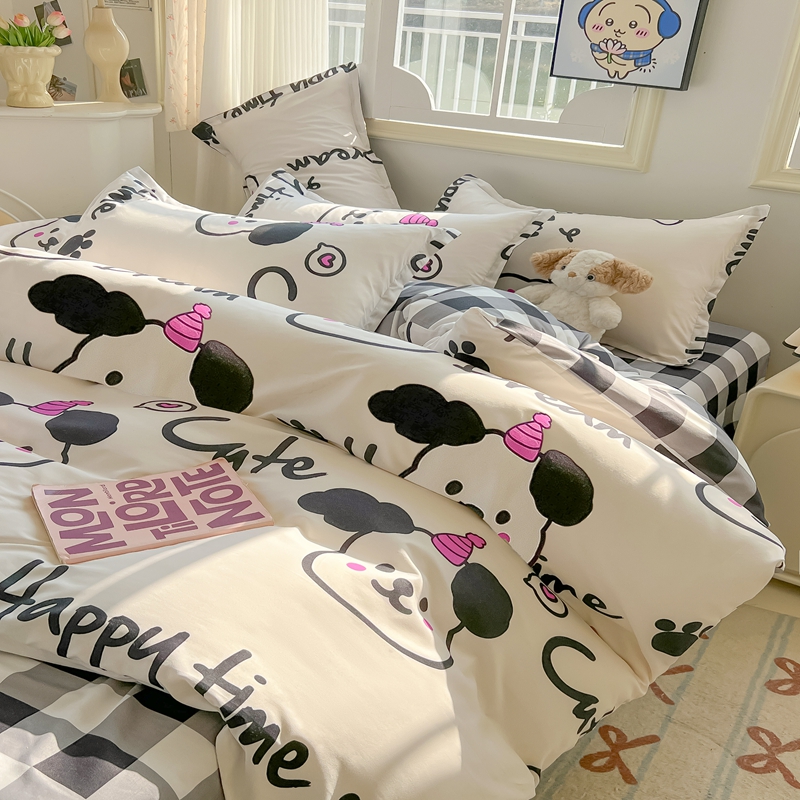 (总)梦卓家纺 2025新款超柔水洗棉印花双层纱卡通小清新四件套,奶萌小狗,豹纹KT,草莓凯蒂,动物乐园,格子樱桃,滑板KT,黄油小奶熊,卡哇伊,蓝格汪,木马小布,碎花兔兔,糖果甜品屋,甜心美乐蒂,宇宙太空人,招财猫,珍珠小熊,紫色蝴蝶结,字母小狗