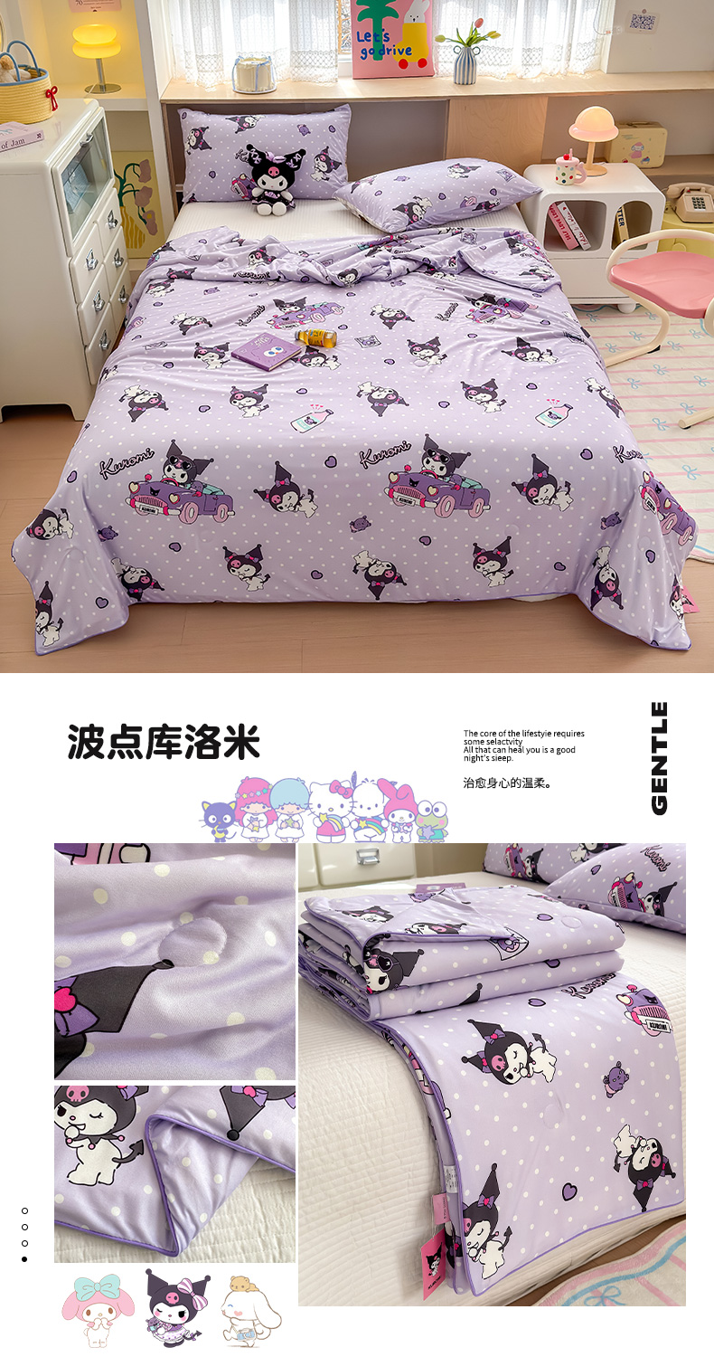 (总)木堇家居 2025春夏三丽鸥云柔棉毛巾绣夏被四件套,毛巾绣-粉色美乐蒂,毛巾绣-粉色kt猫,毛巾绣-蓝色帕恰狗,毛巾绣-小马大耳狗,毛巾绣-紫色库洛米