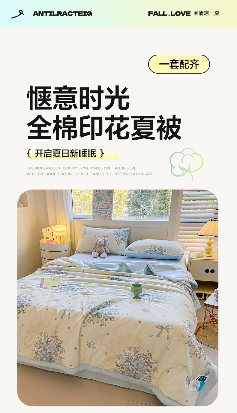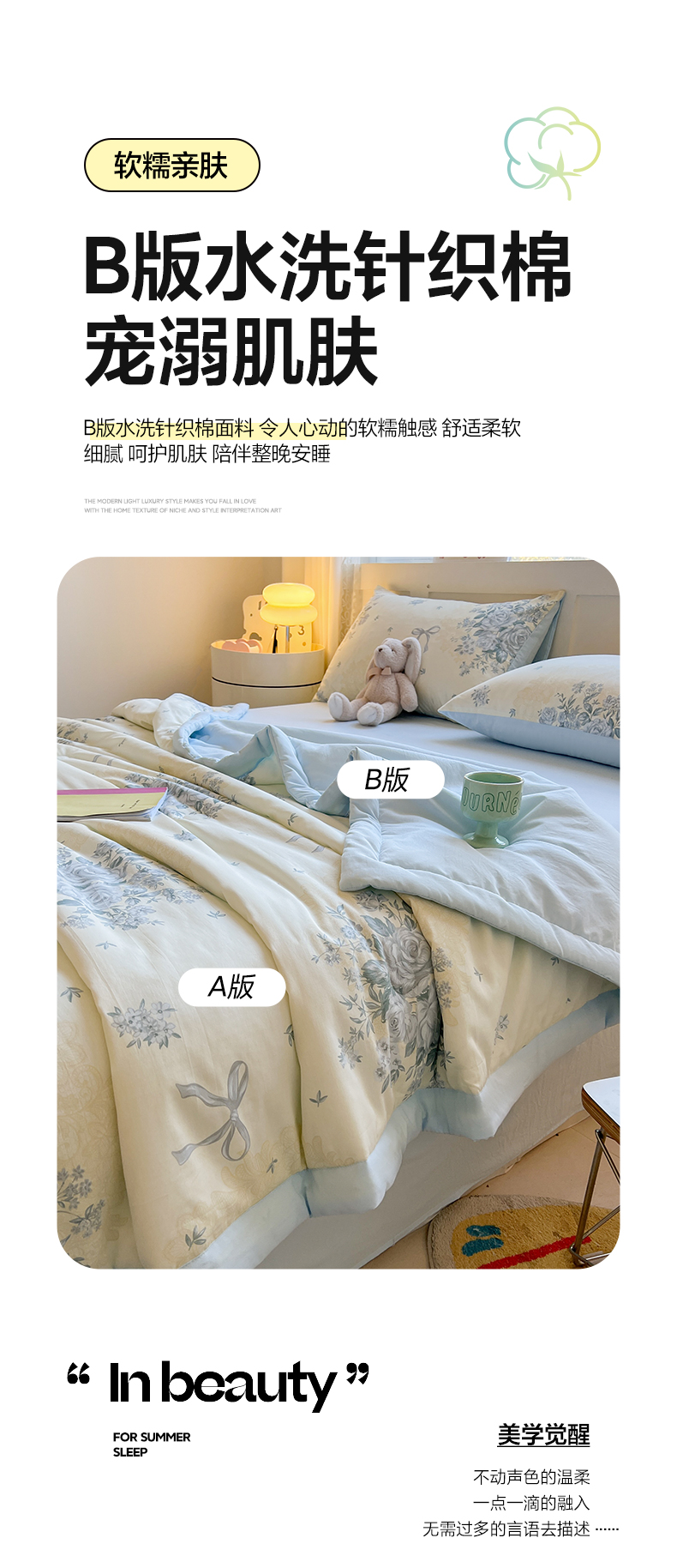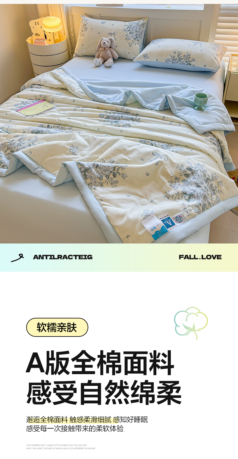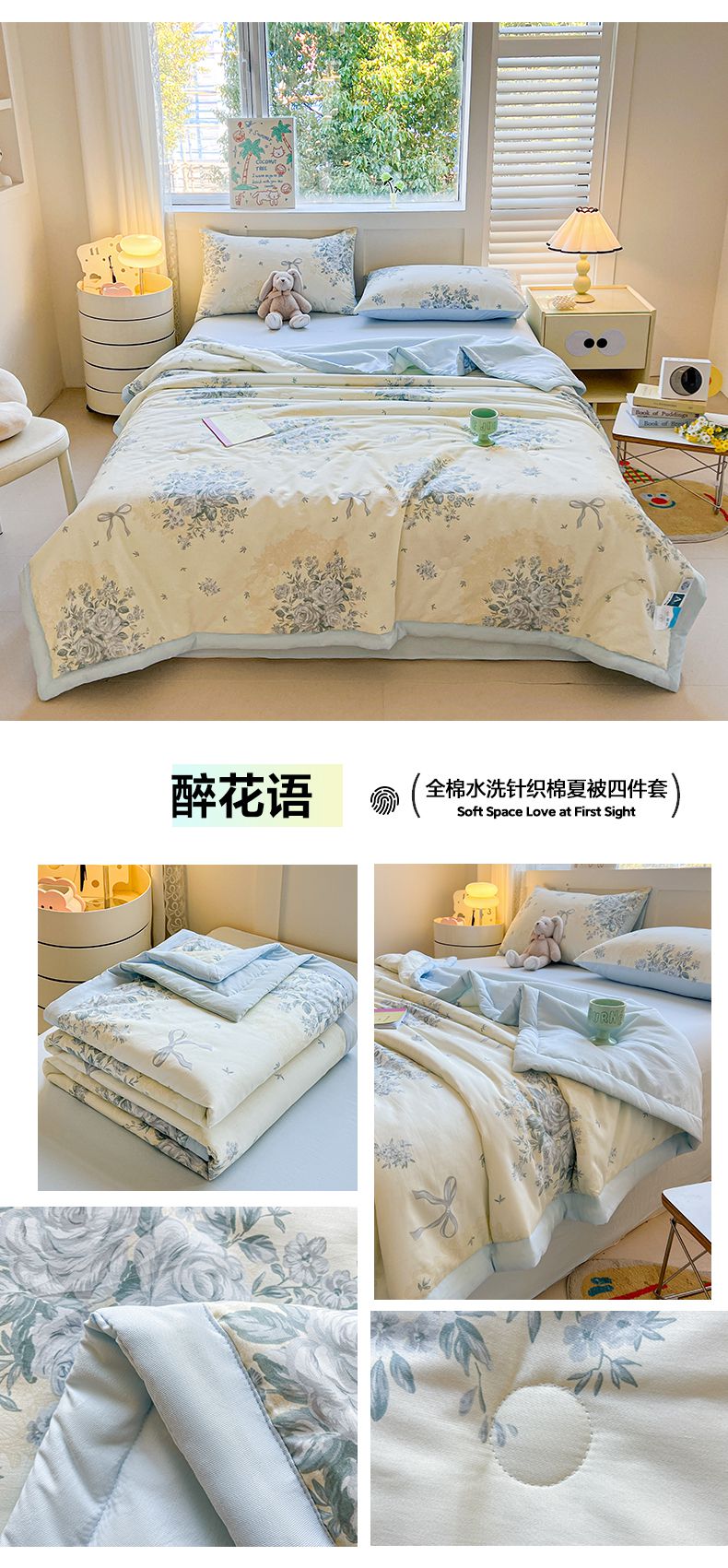 当前位置: 91家纺网 > 商品网购 > 床品套件 > 四件套 > 全棉普通四件套 > 典冠 2025新款全棉印花夏凉被夏被四件套 醉花语