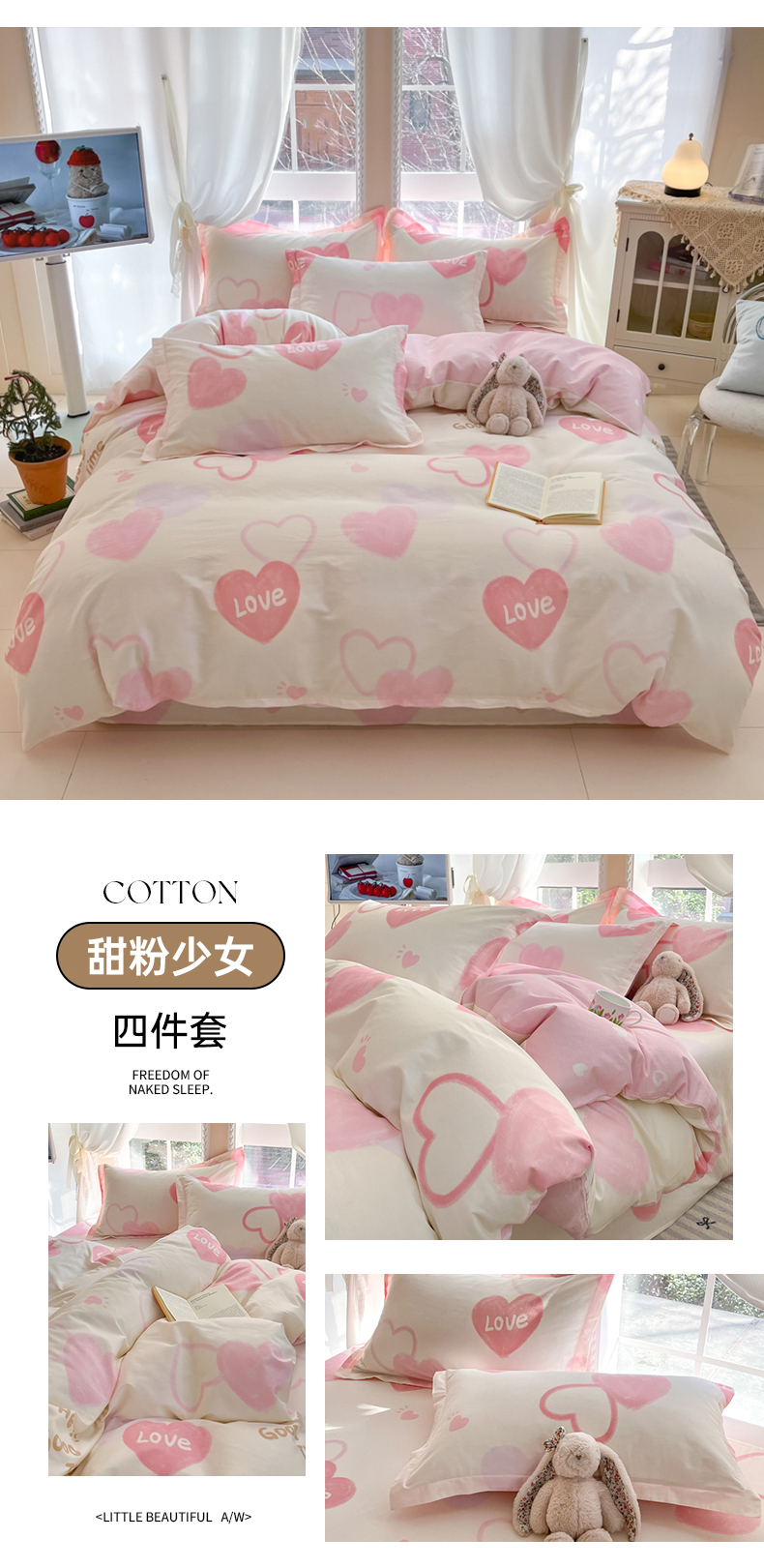 当前位置: 91家纺网 > 商品网购 > 床品套件 > 四件套 > 全棉普通四件套 > 莱通家纺 2025春夏新款12868印花四件套 甜粉少女