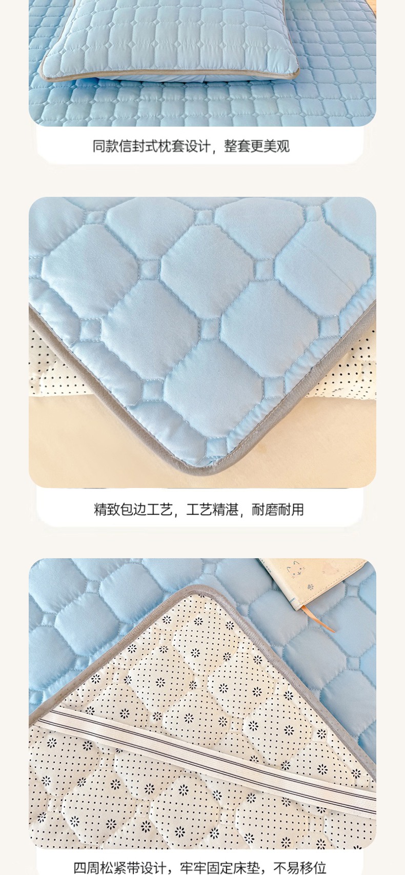 (总)麒东家纺 2025新款泡泡绒纯色夹棉床垫,绿色,深灰,本白,粉色,咖色,浅灰,天蓝,雾蓝,紫色