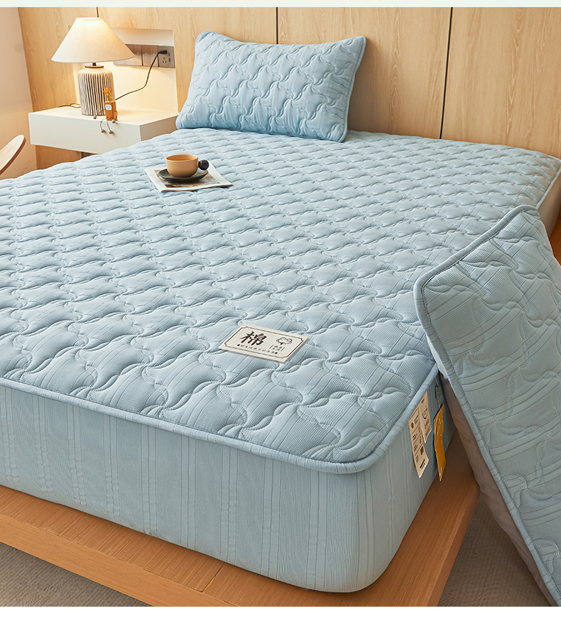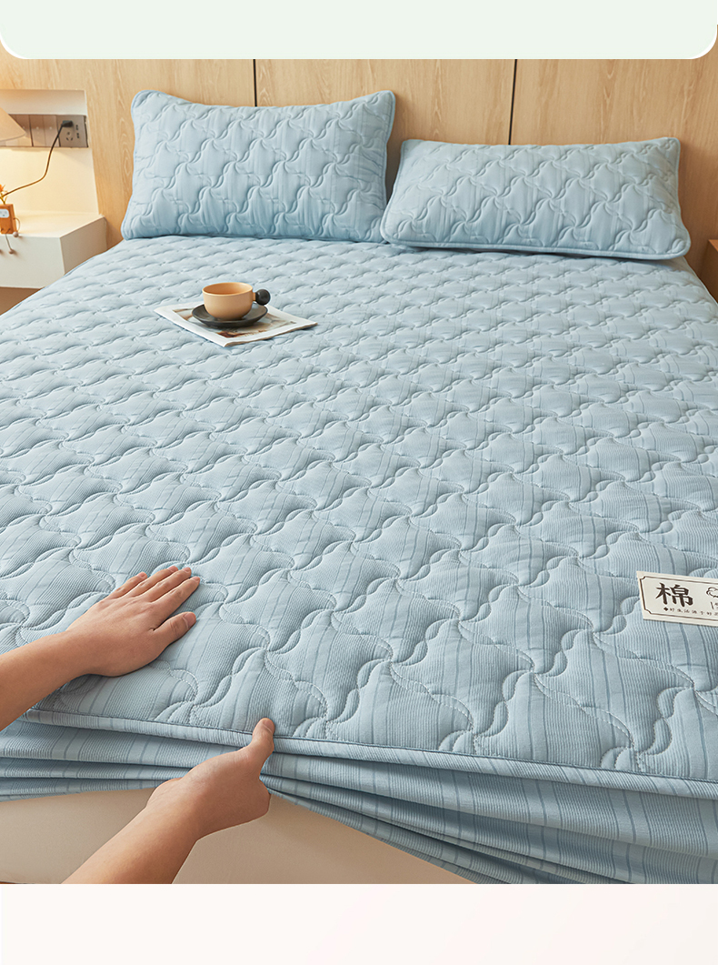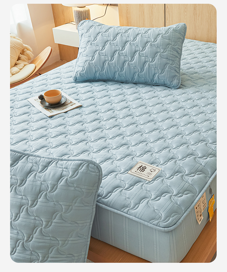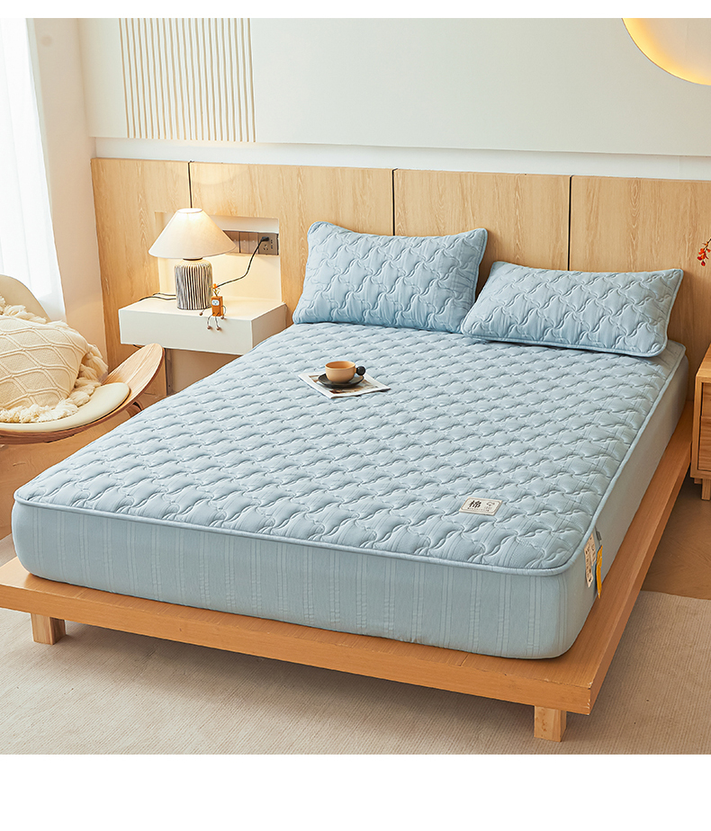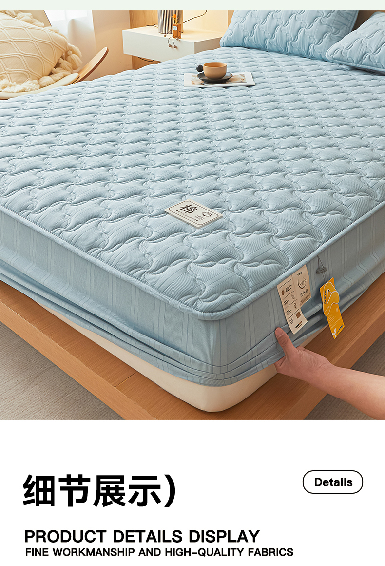 • 91家纺网 家纺一手货源 找家纺 布卢姆床垫 2025新款A类亲肤提花100%新疆棉花床笠雅岚系列 雅岚-天蓝