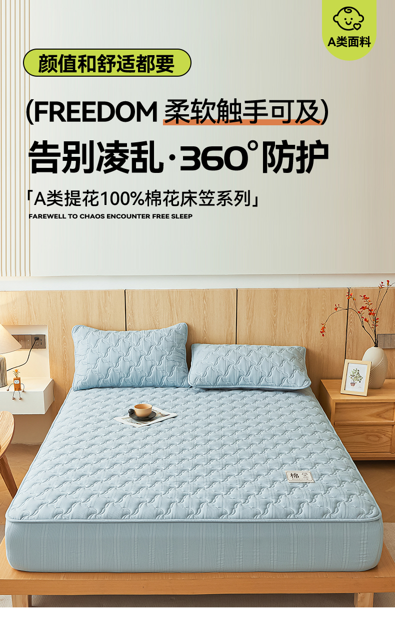 布卢姆床垫 2025新款A类亲肤提花100%新疆棉花床笠雅岚系列 雅岚-天蓝