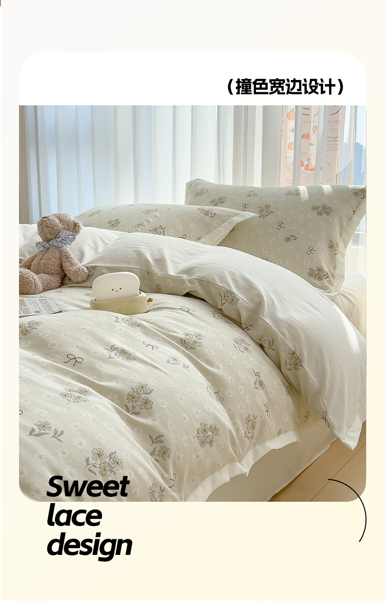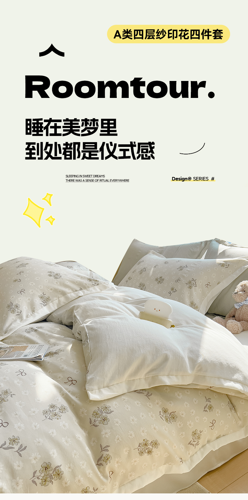 当前位置: 91家纺网 > 商品网购 > 床品套件 > 四件套 > 双层纱四件套 > 兄弟坊 2025新款小清新四层纱印花四件套 春华