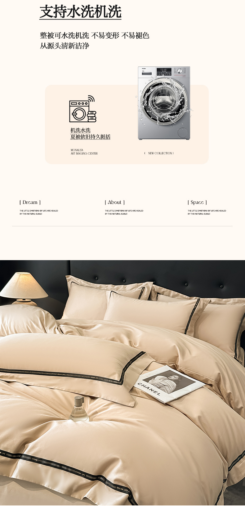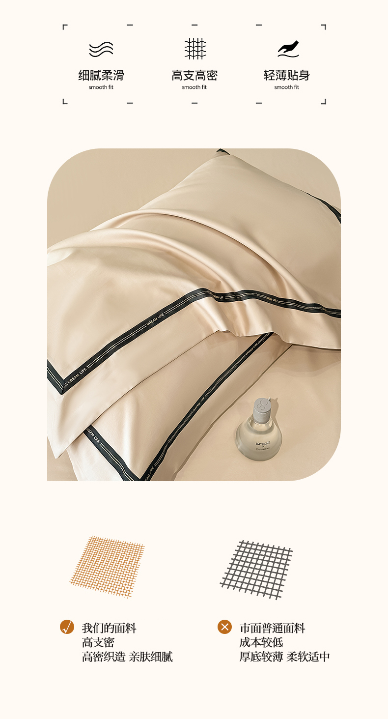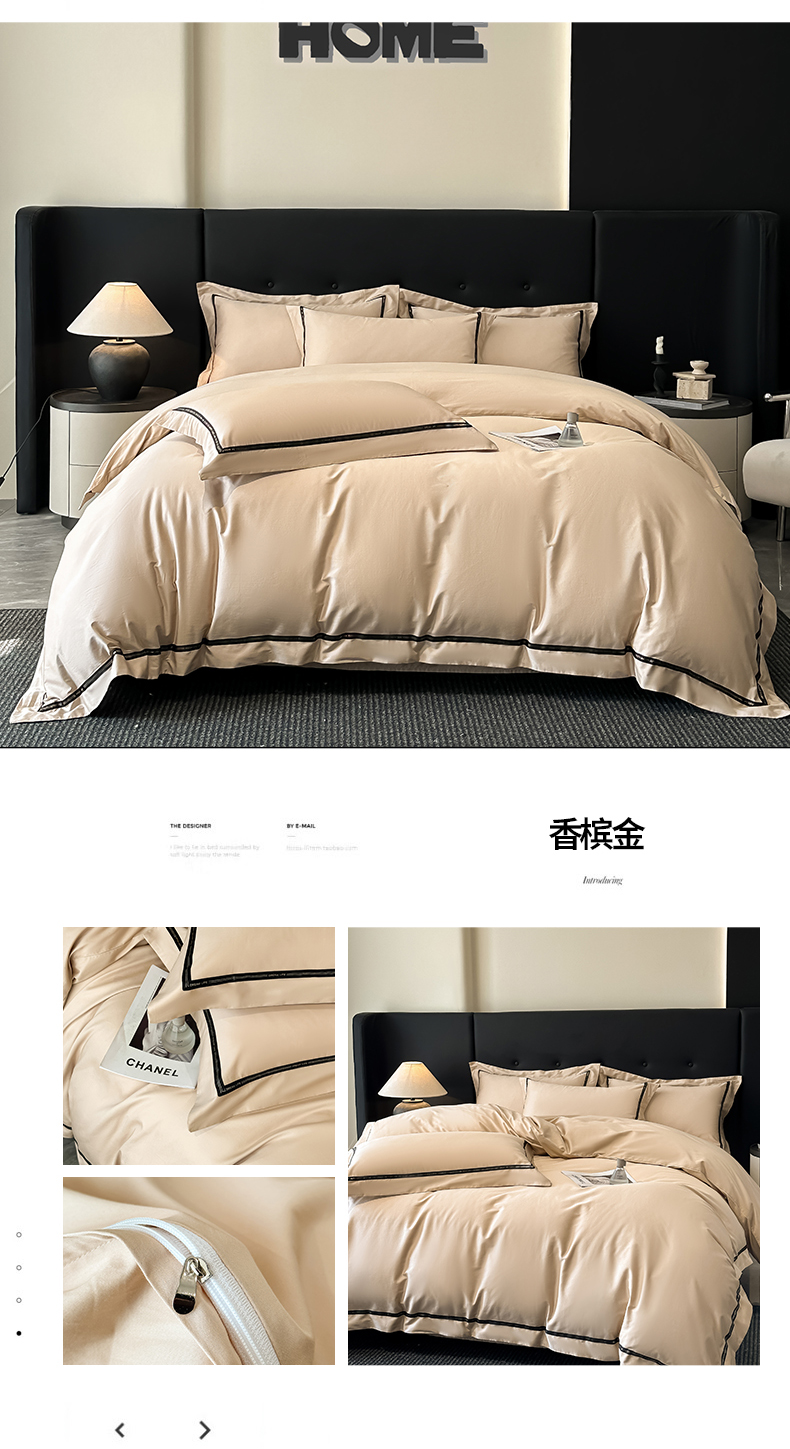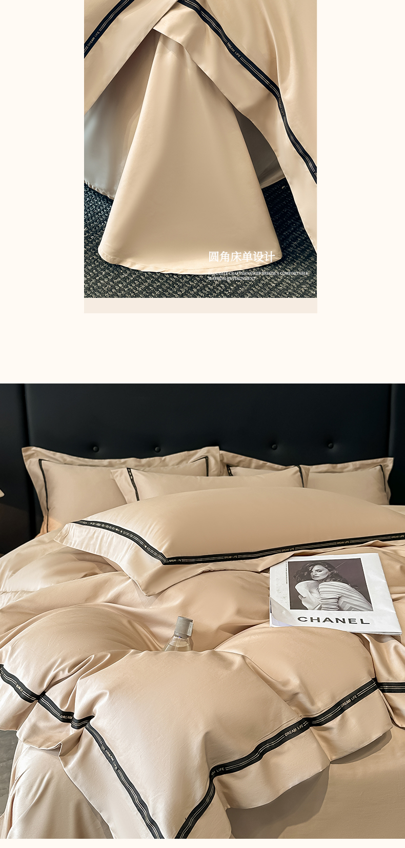 商品名称:魅都 2025新款100支长绒棉简约织带轻奢风四件套-罗伊 香槟金