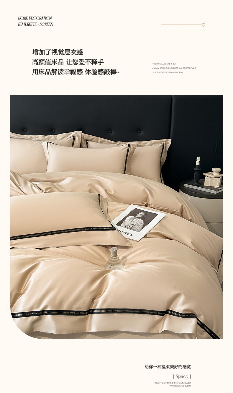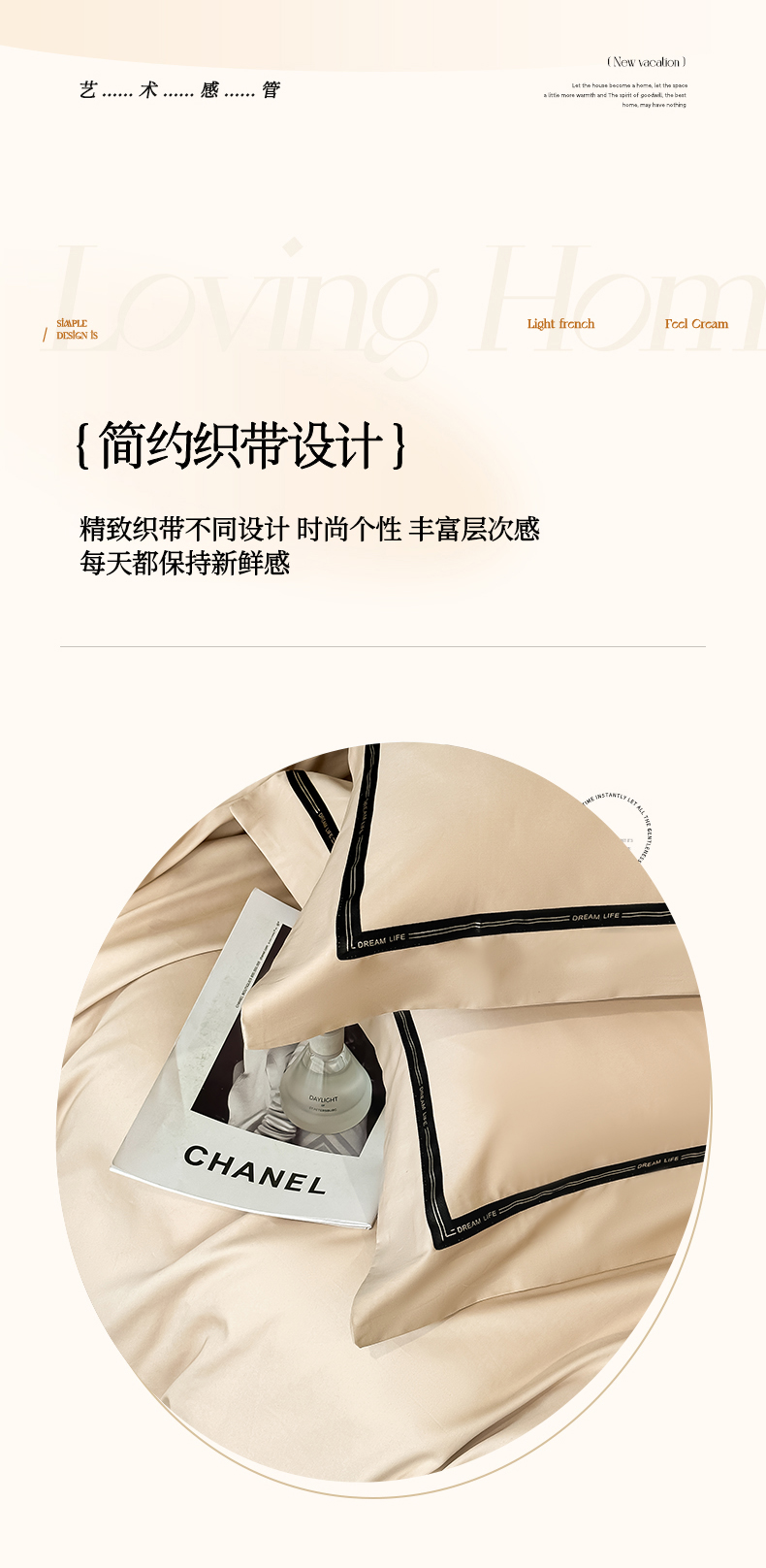 (总)魅都 2025新款100s长绒棉简约织带轻奢风四件套-罗伊,爱马橙,亮粉,浅灰,香槟金,香芋紫