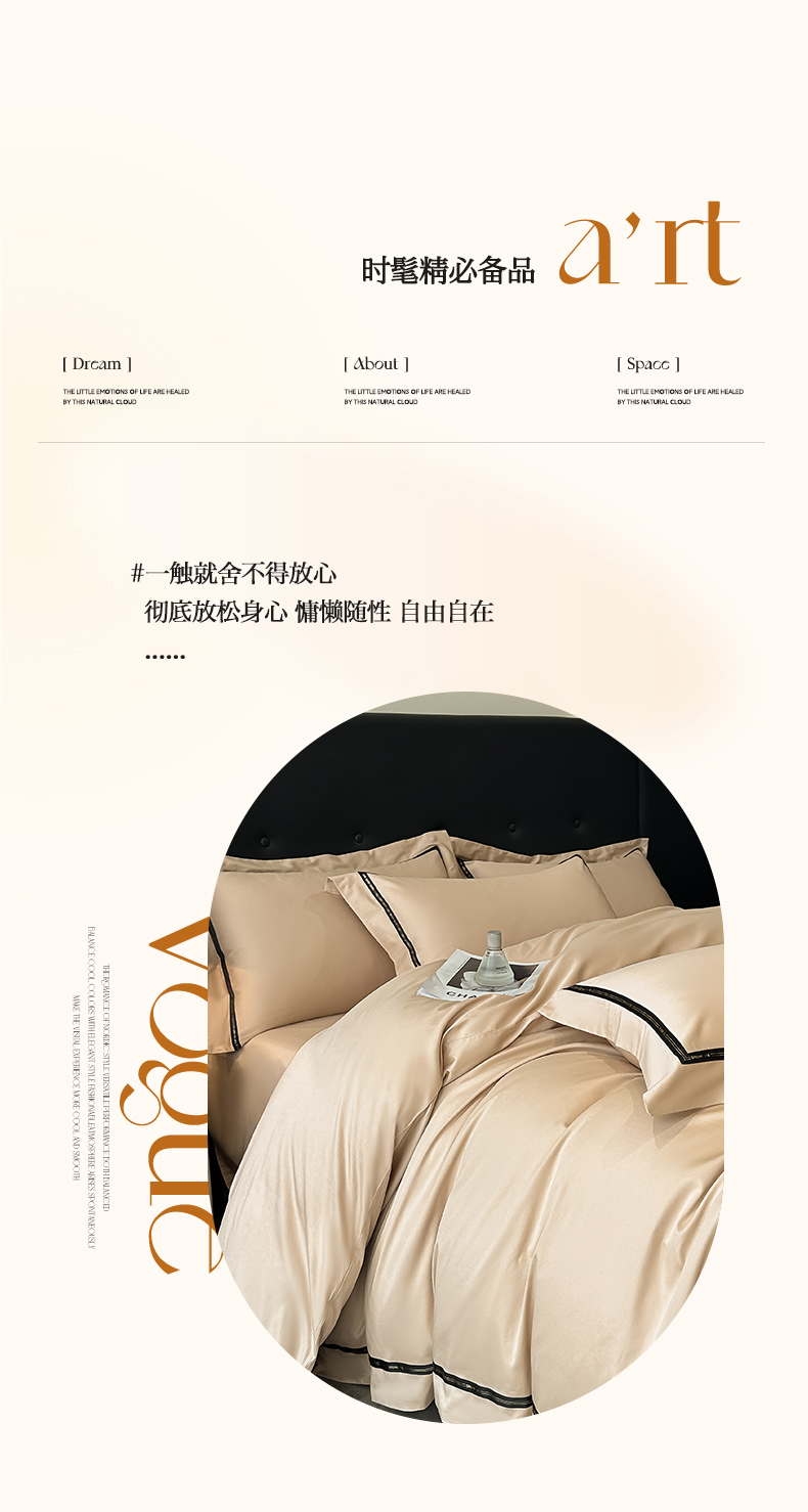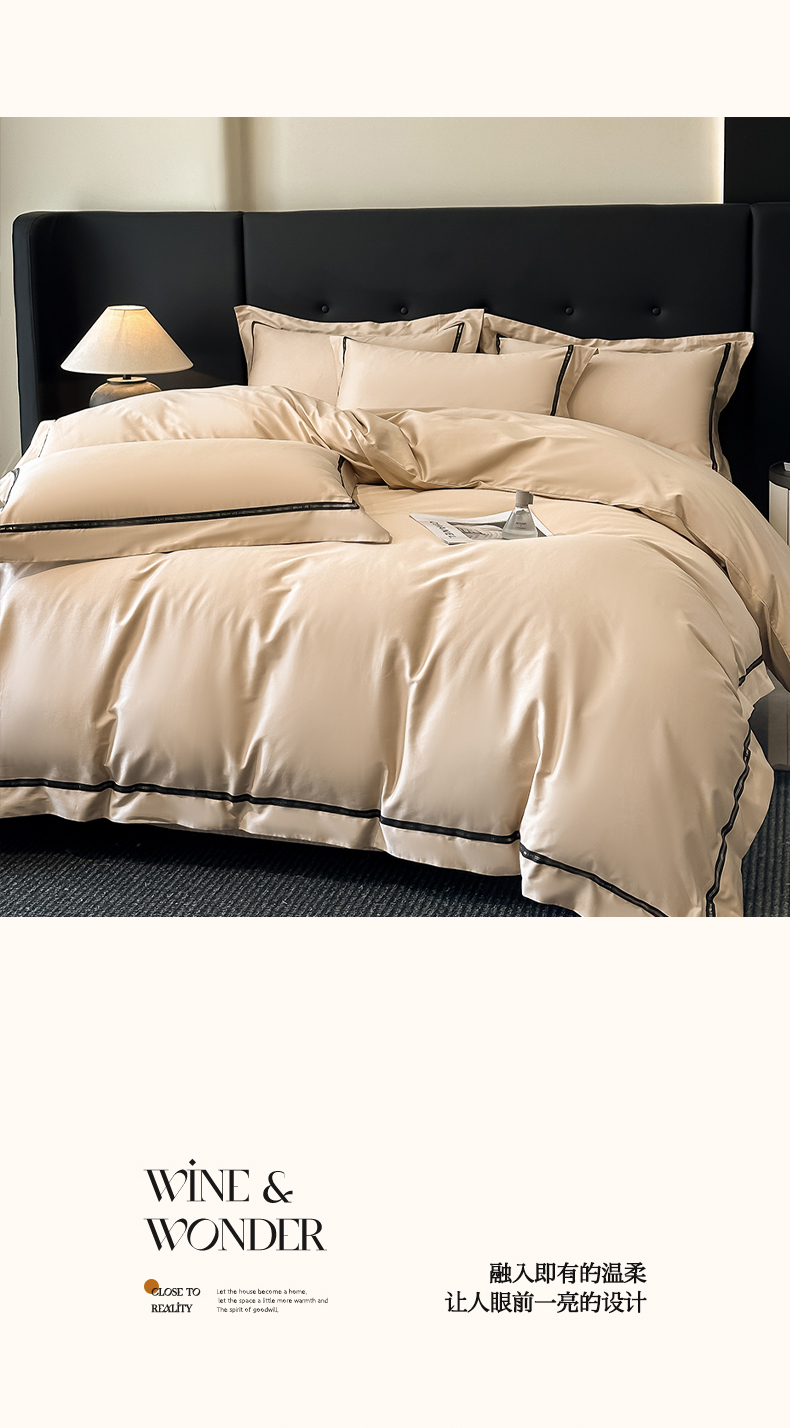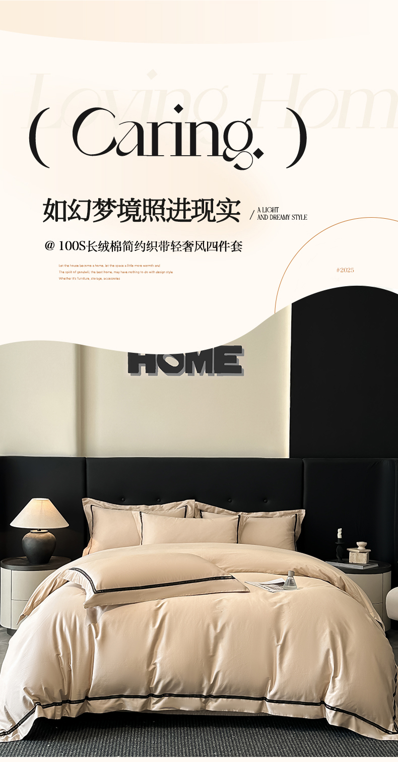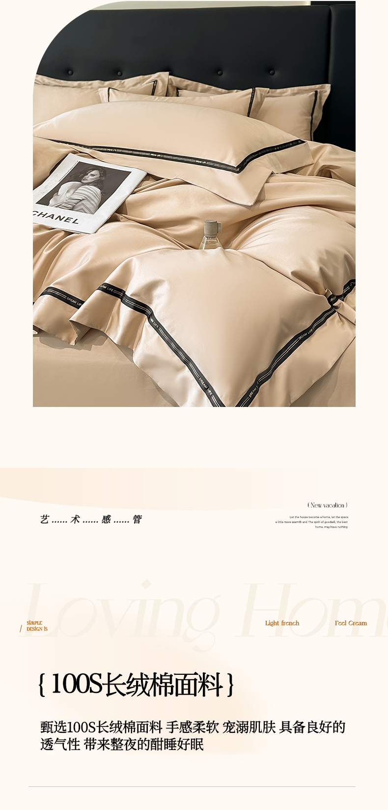 魅都 2025新款100支长绒棉简约织带轻奢风四件套-罗伊 香槟金
