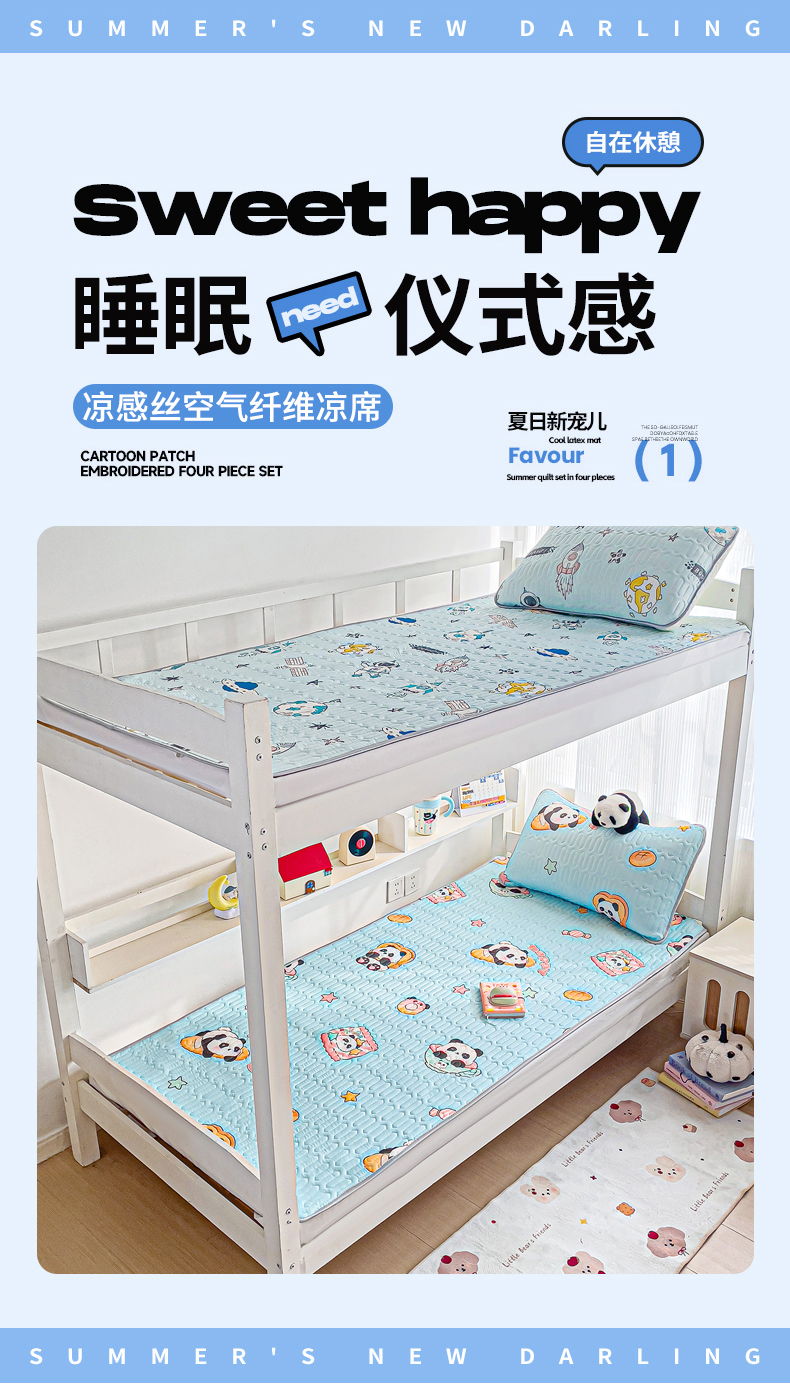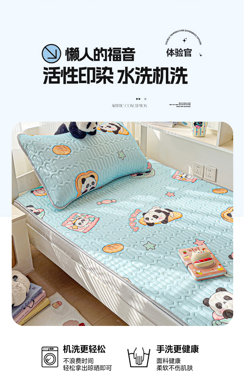 • 91家纺网 家纺一手货源 找家纺 富馨莱 2025新款A类凉感丝空气纤维凉席学生款 熊猫宝宝