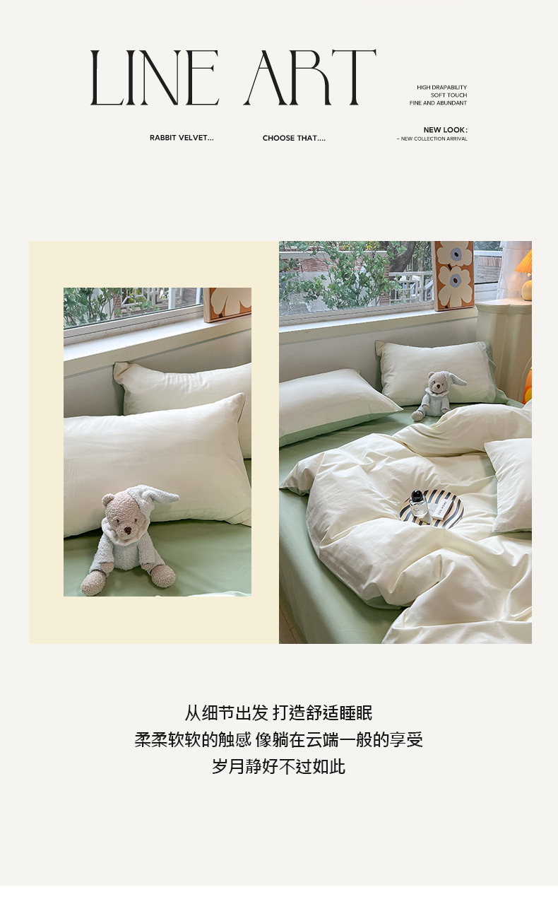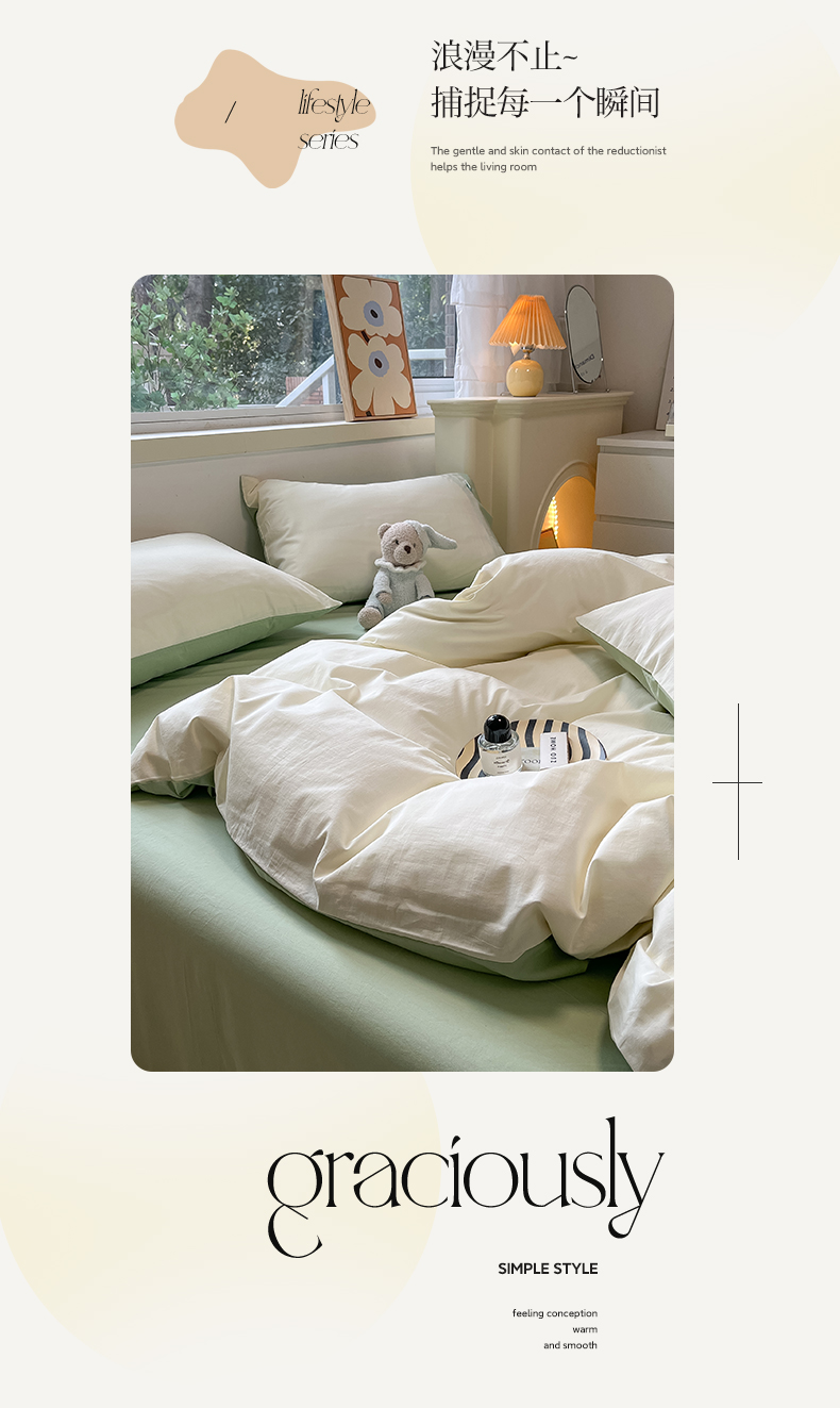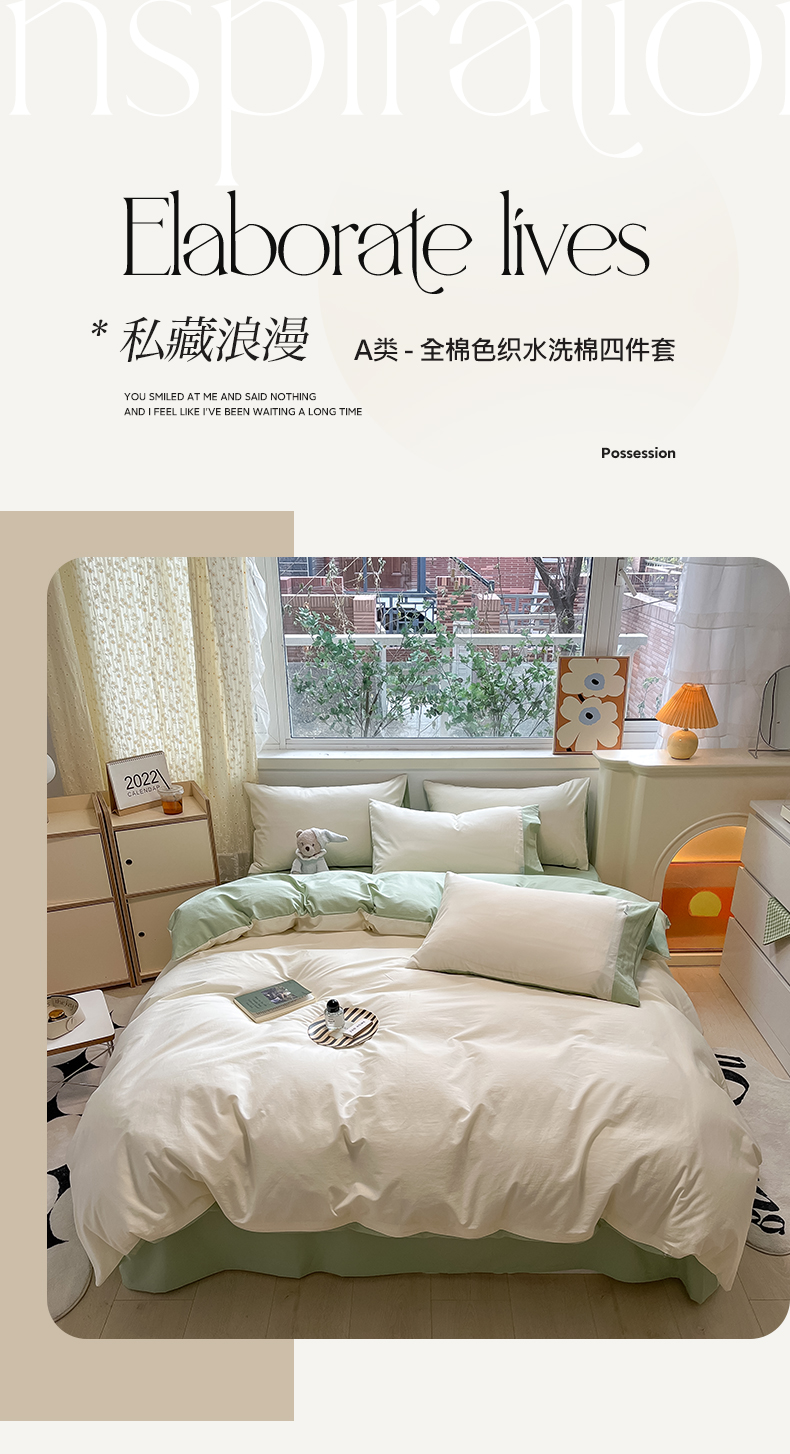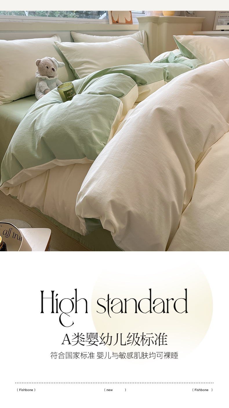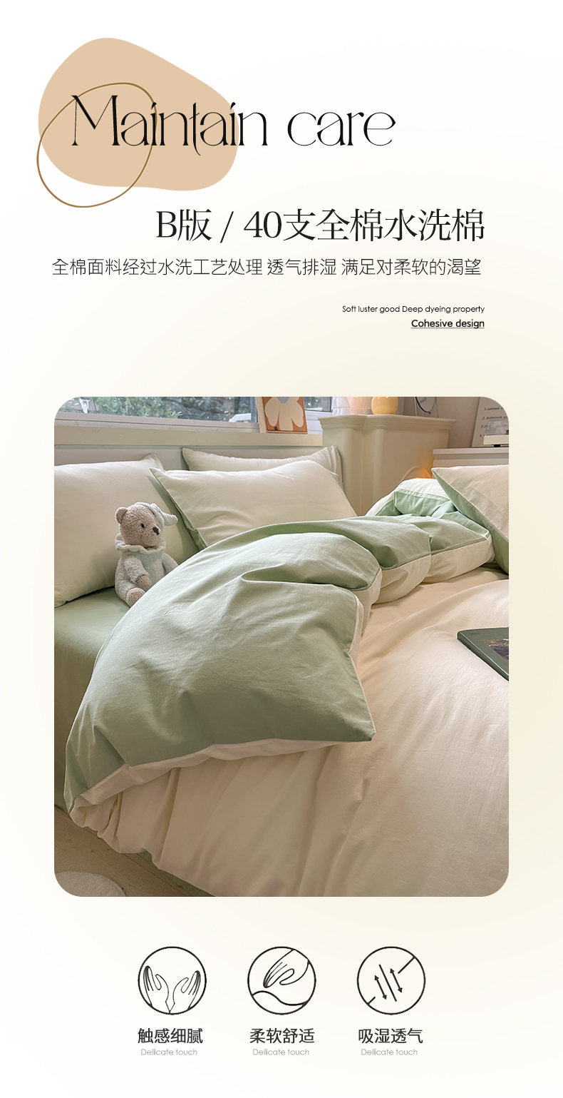 卡巴伦家纺 2025新款40支纯棉A类水洗棉四件套风格2 奶昔-月白绿