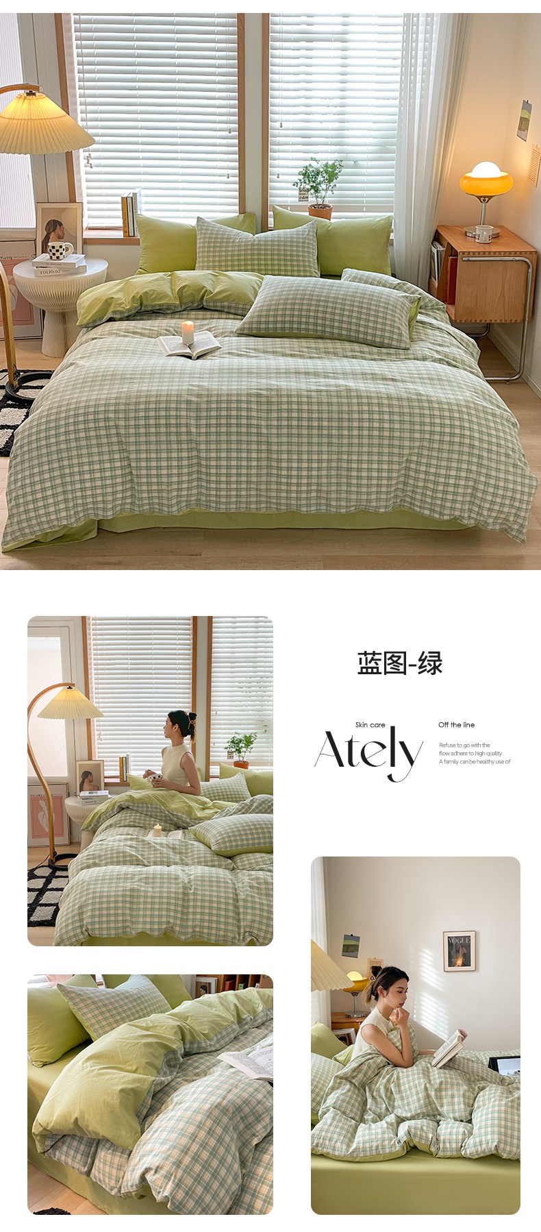商品名称:卡巴伦家纺 2025新款40支纯棉A类水洗棉四件套风格2 奶昔-月白绿