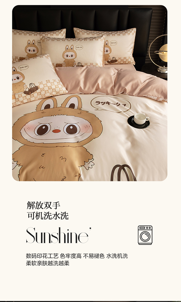(总)摩卡(乐趣) 2025秋冬新品网红款水洗棉四季款四件套,豹纹熊-粉,豹纹熊-绿,彩虹兔,公仔蓝,梦幻粉,梦幻蓝,棋盘格公仔,太阳花粉,天使熊-粉,天使熊-咖,小熊头,熊头白,熊头橙,熊头咖,熊仔白