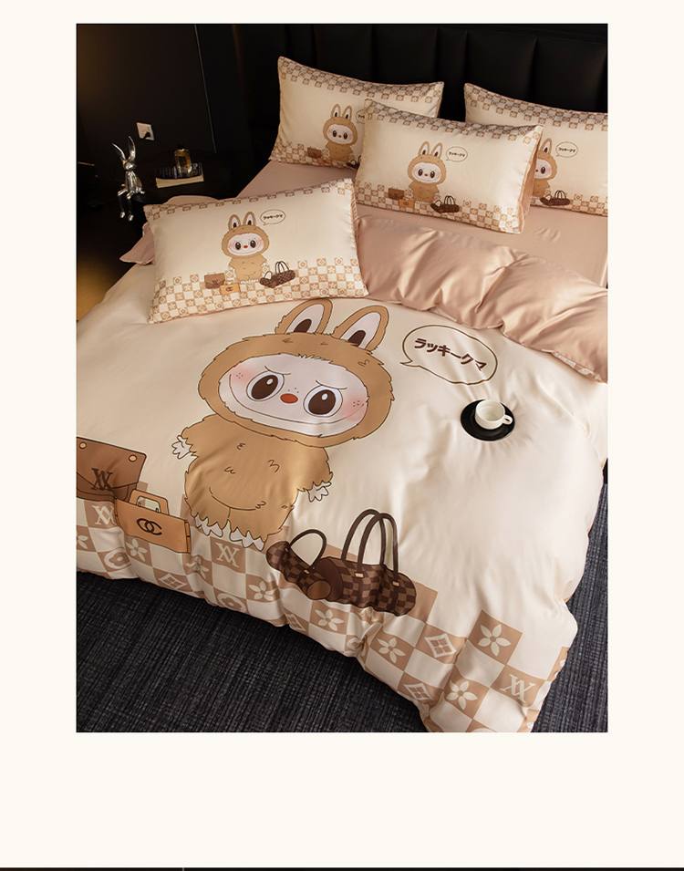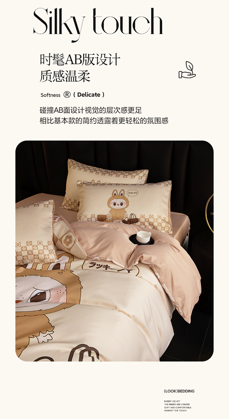 (总)摩卡(乐趣) 2025新款水洗真丝数码印花卡通兔系列四件套,布丁兔,啾咪兔,咖啡兔,菱形兔,奶糕兔,薯饼兔,兔奶糖,兔小懒