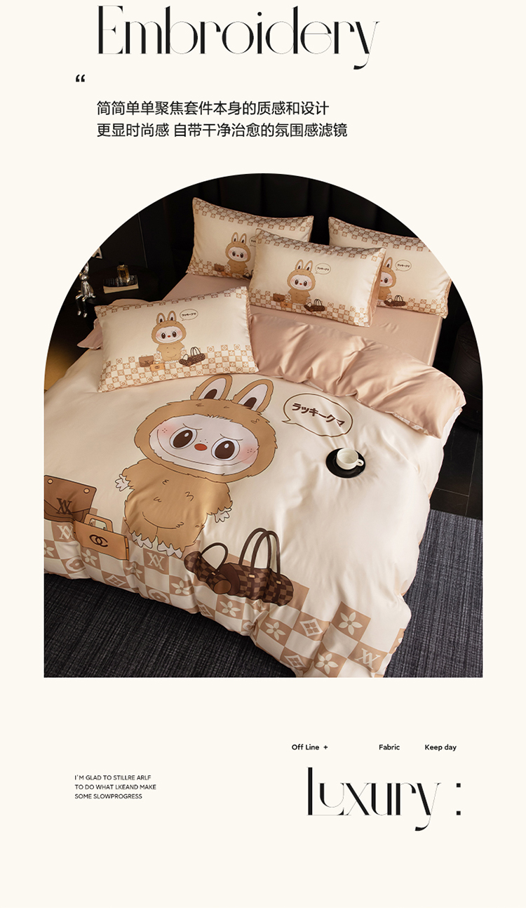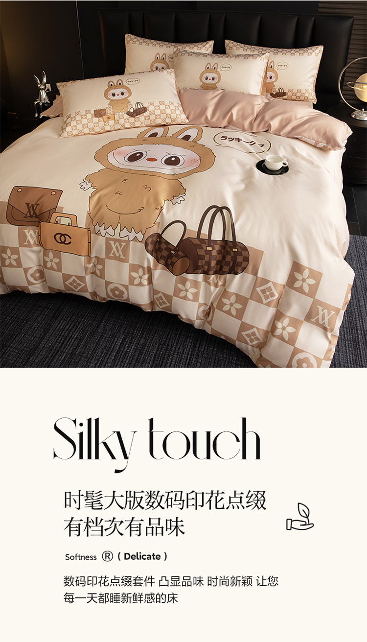 商品名称:2025新款水洗真丝数码印花四件套 卡夫兔