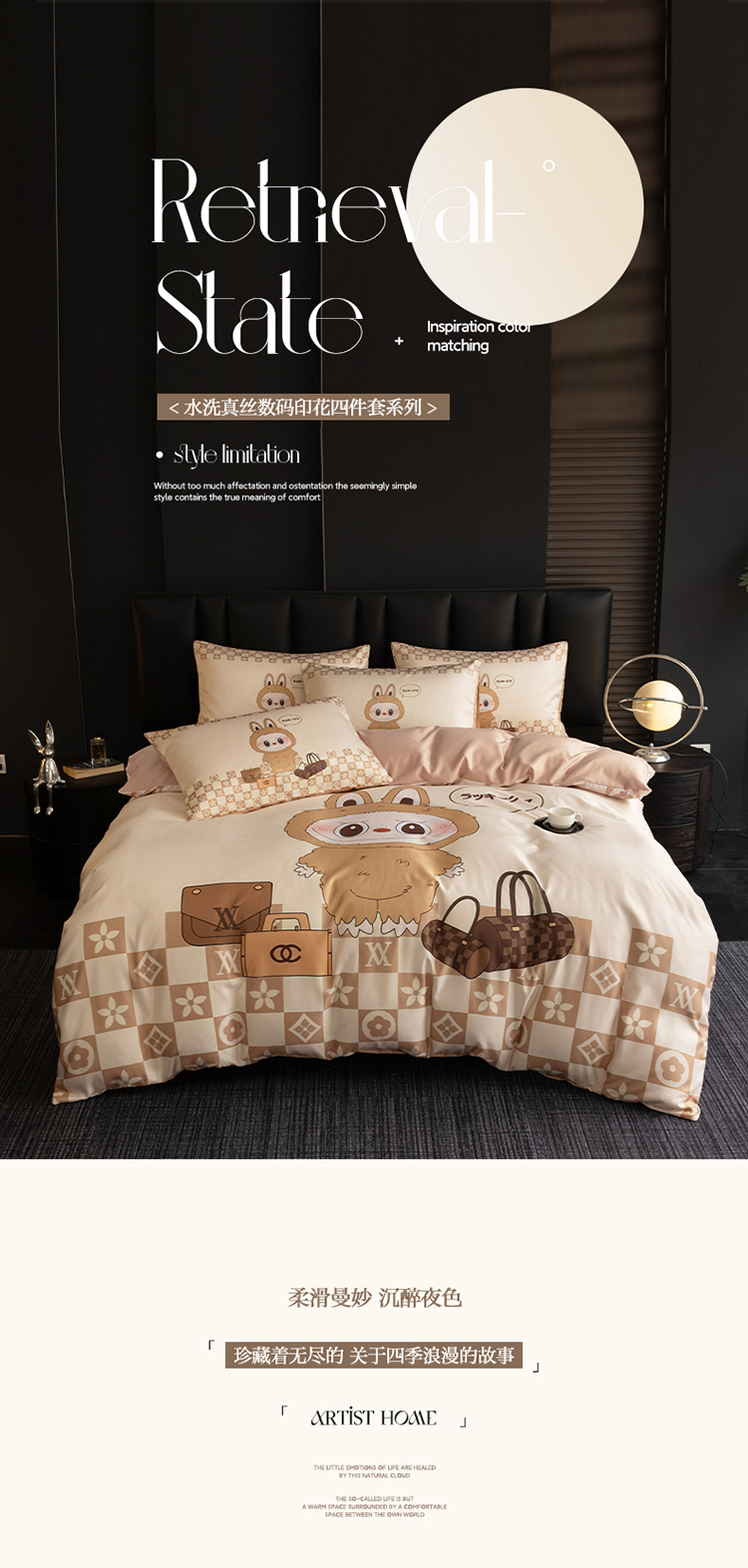 2025新款水洗真丝数码印花四件套 卡夫兔